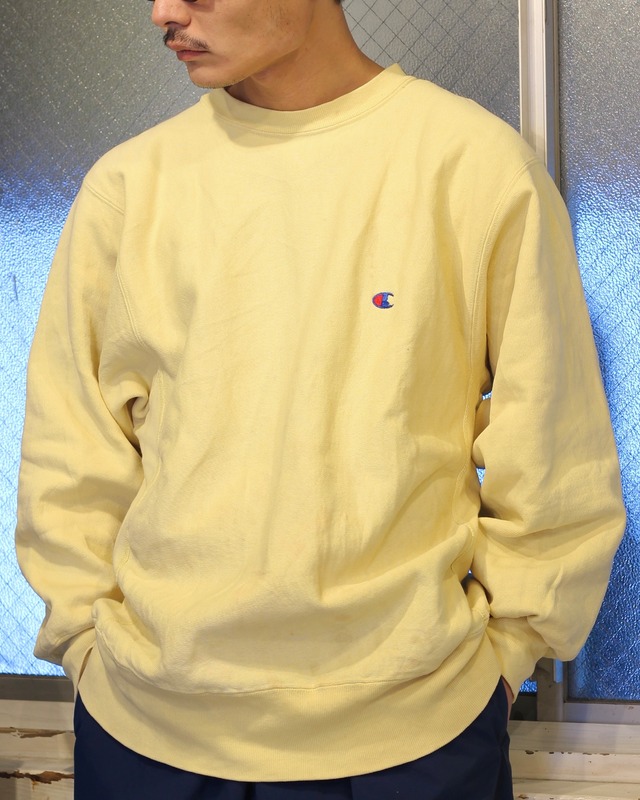古着のスウェットとといえば間違いなく名前の上がるchampionリバースウィーブ 通称"目付き"と呼ばれる刺繍ワンポイントデザインの入る1着 トリコのプリントタグのしっかりアメリカ製薄い黄色の珍しカラーの個体です。 80年代ならではなの身幅もゆったりなナイスシルエットもポイントの一つです。 size LARGE 生産国 USA 素材 cotton 90% acrylic 10% 肩幅 49cm 袖丈 59cm 身幅 61cm 着丈 66cm 状態 着用により、全体的にシミ汚れのダメージが見られます。 7.8.9枚目の画像をご参照ください。 ※ダメージ気になる方は、ご購入をお控え下さい。 ※写真と実際の色味が若干異なる場合がございます。 事前にご了承ください