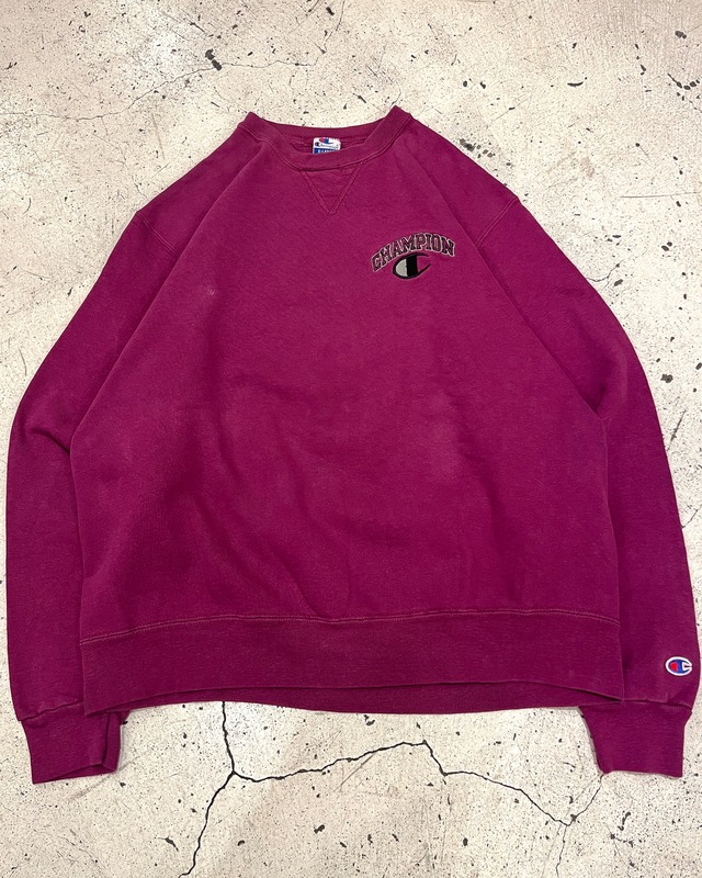 マゼンタパープルの発色の良い色味がナイスカラーな90年代のchampion 少しデザインの効いたワンポイントもさりげなくも主張のある一着です。 size X-Large 生産国 USA 素材 cotton 95% polyester 5% 肩幅 51cm 袖丈 65cm 身幅 62cm 着丈 66cm 状態 目立たない程度のシミ汚れなどの細かなダメージがございます。 古着らしい表情の一着ではございますが、詳細を画像でご確認した上でご購入をご検討下さい。 ※ダメージ気になる方は、ご購入をお控え下さい。 ※写真と実際の色味が若干異なる場合がございます。 事前にご了承ください