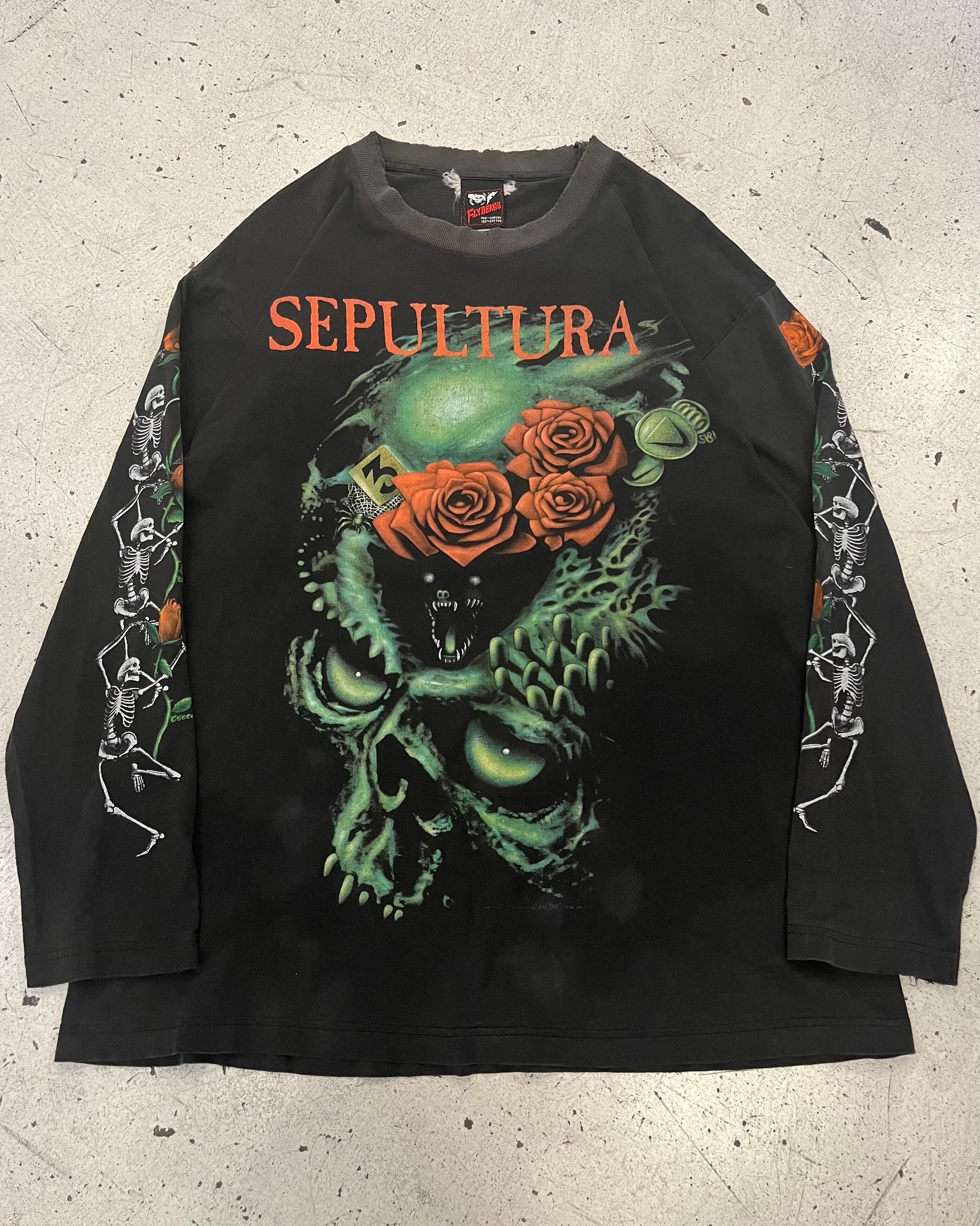 ブラジル初のメタルバンドSEPULTURAのグラフィック良しな長袖tee