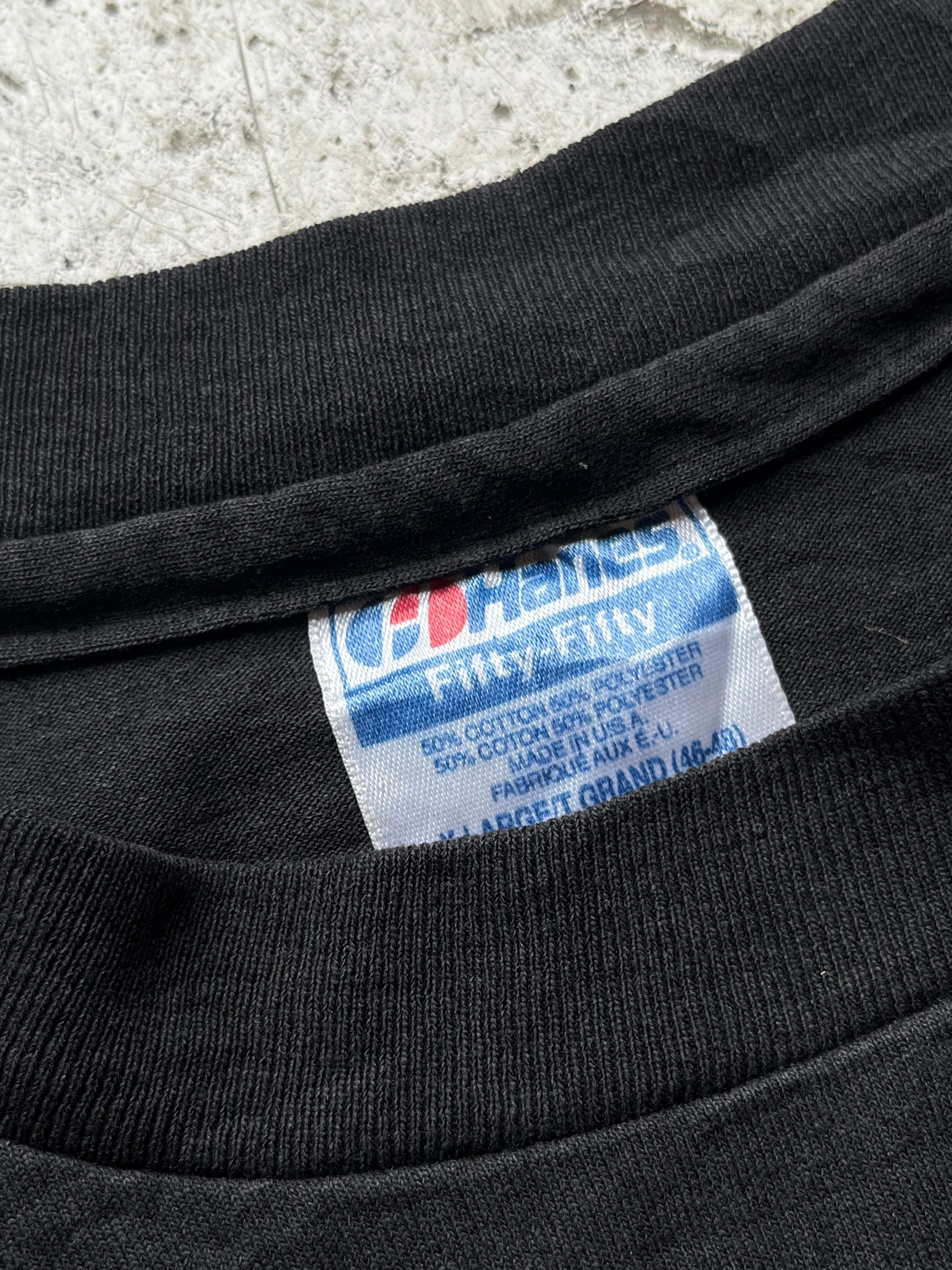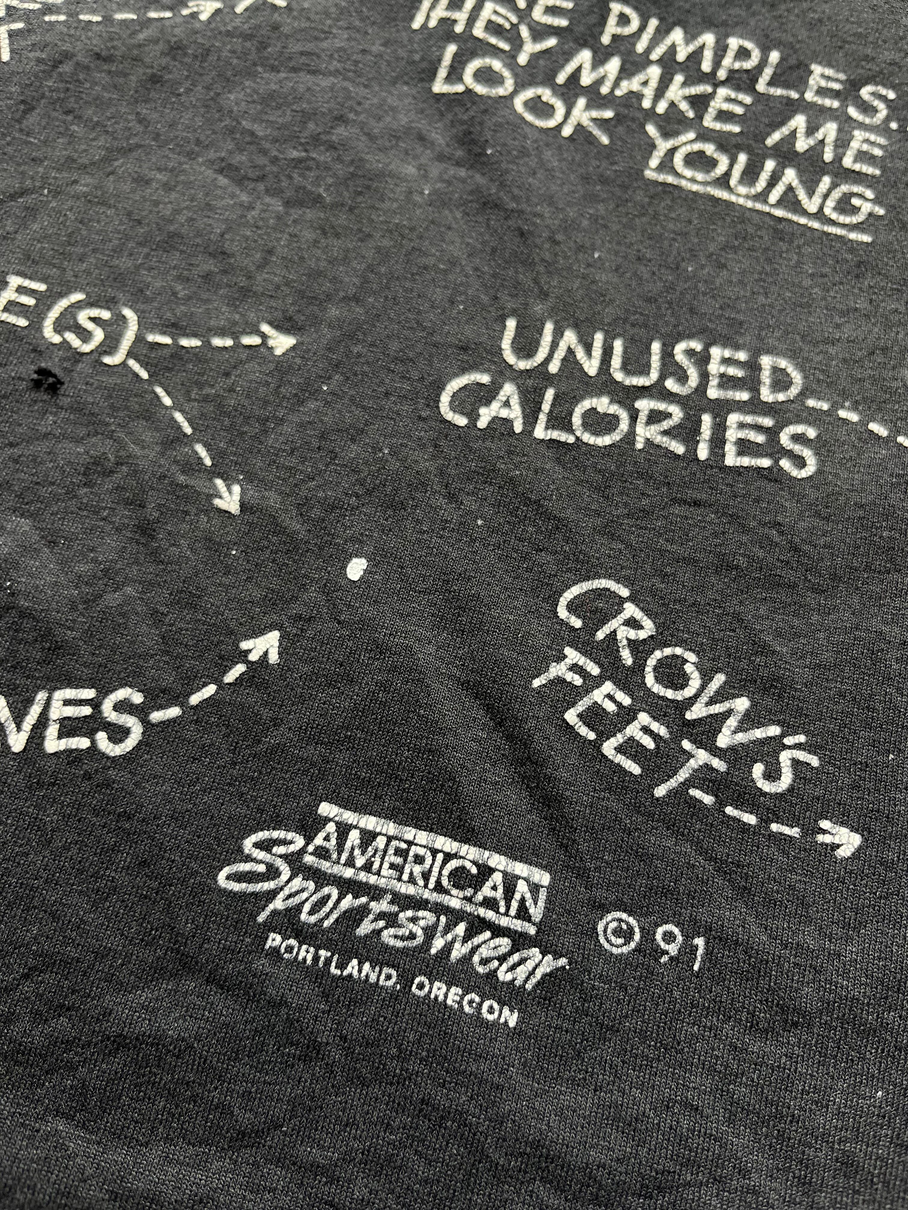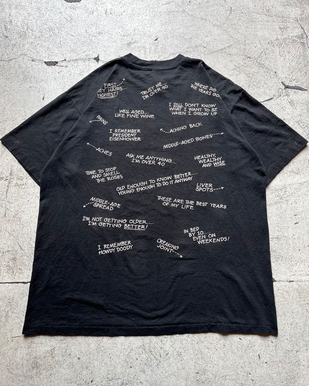 ©︎91's Hanes "POSILIVELY OVER 40" message print tee