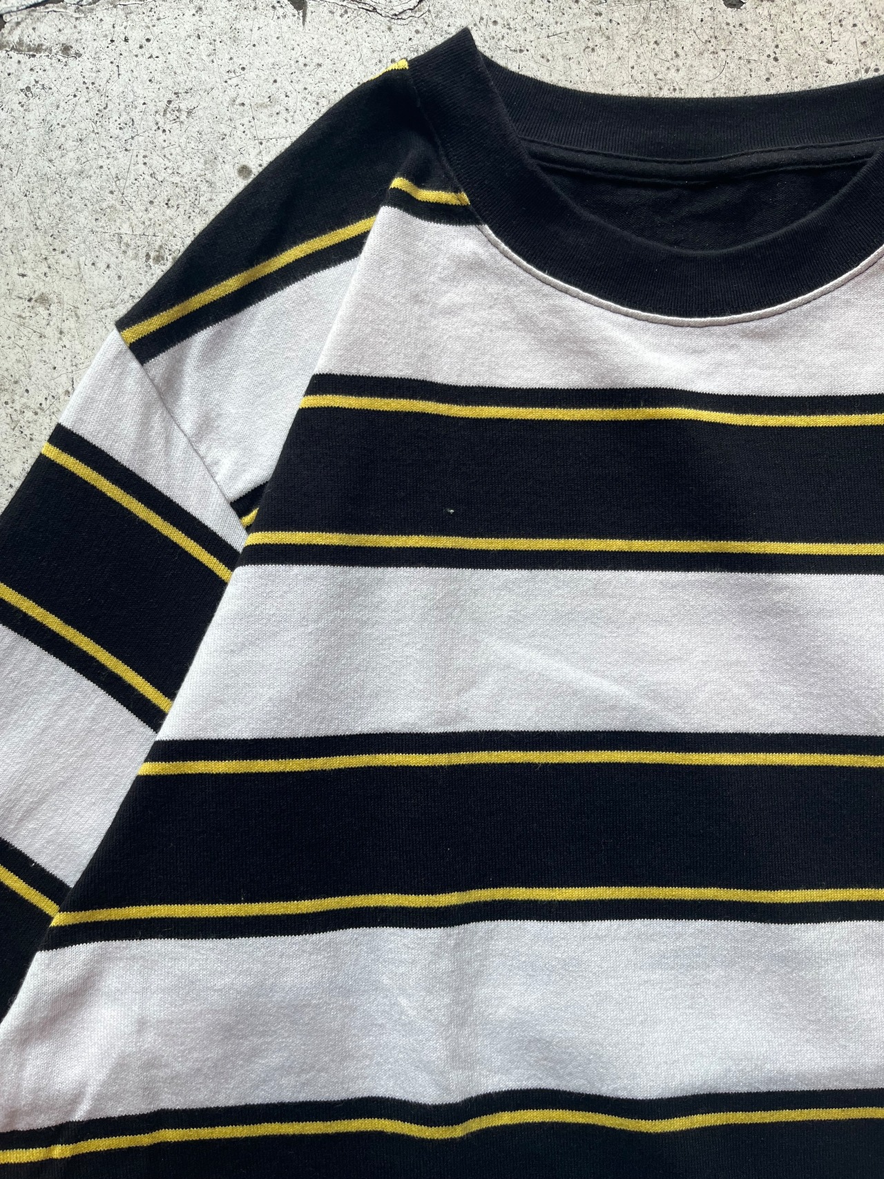黒、白ベースに黄色の差し色のマルチカラーのボーダーデザイン