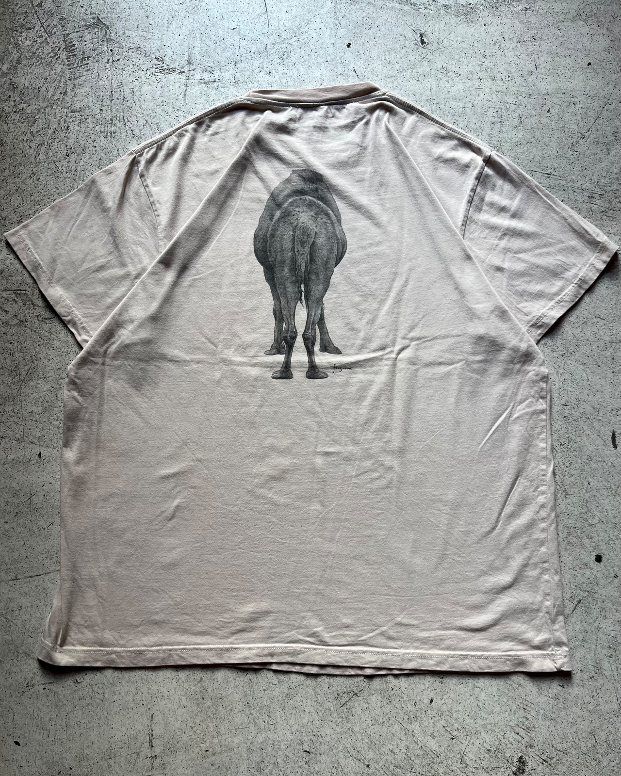 フロント、バックのデザインの繋がりも気持ちの良くラフに楽しむアニマルteeとして癖がなさそうで癖ある面白い1着です。