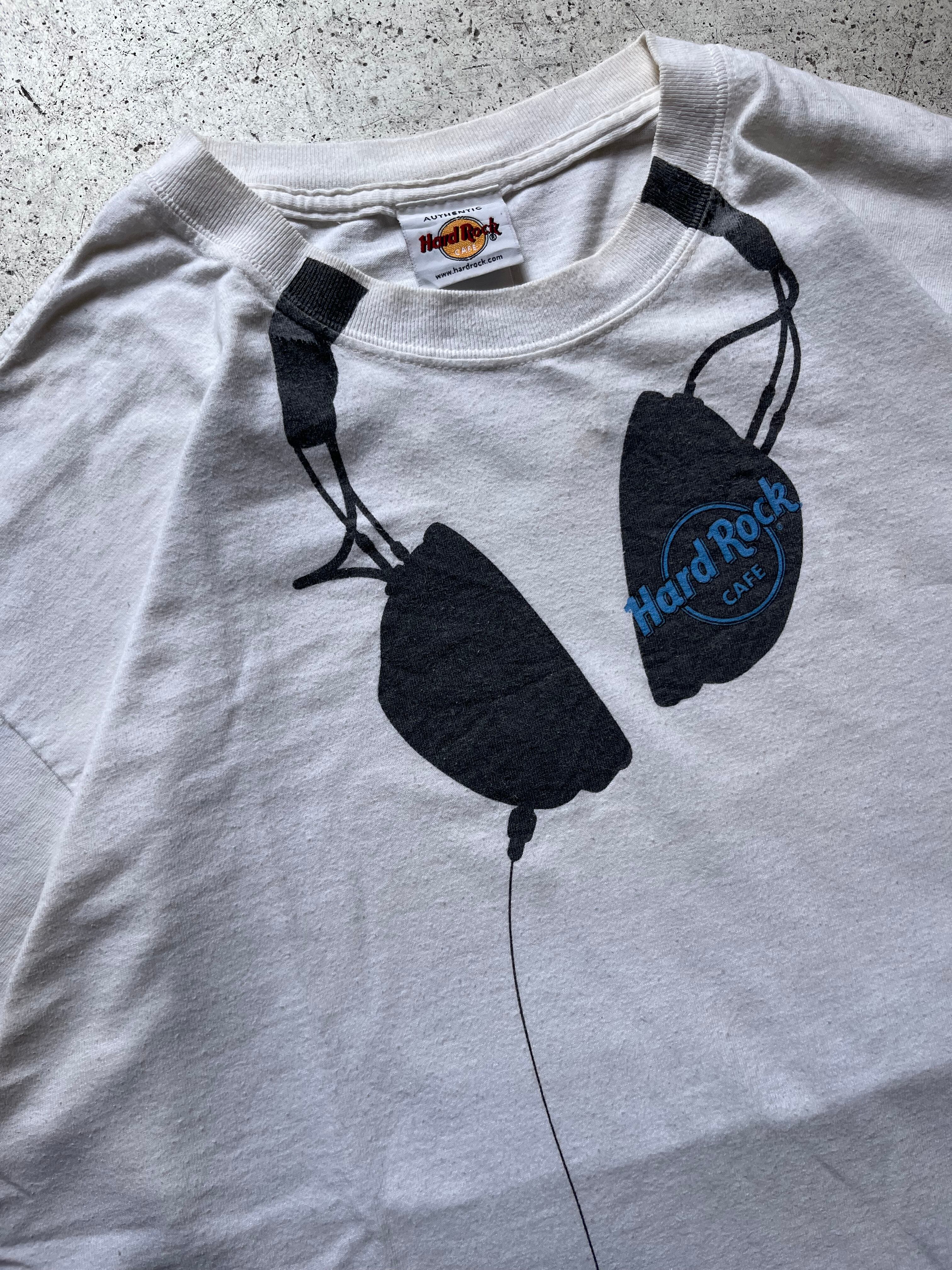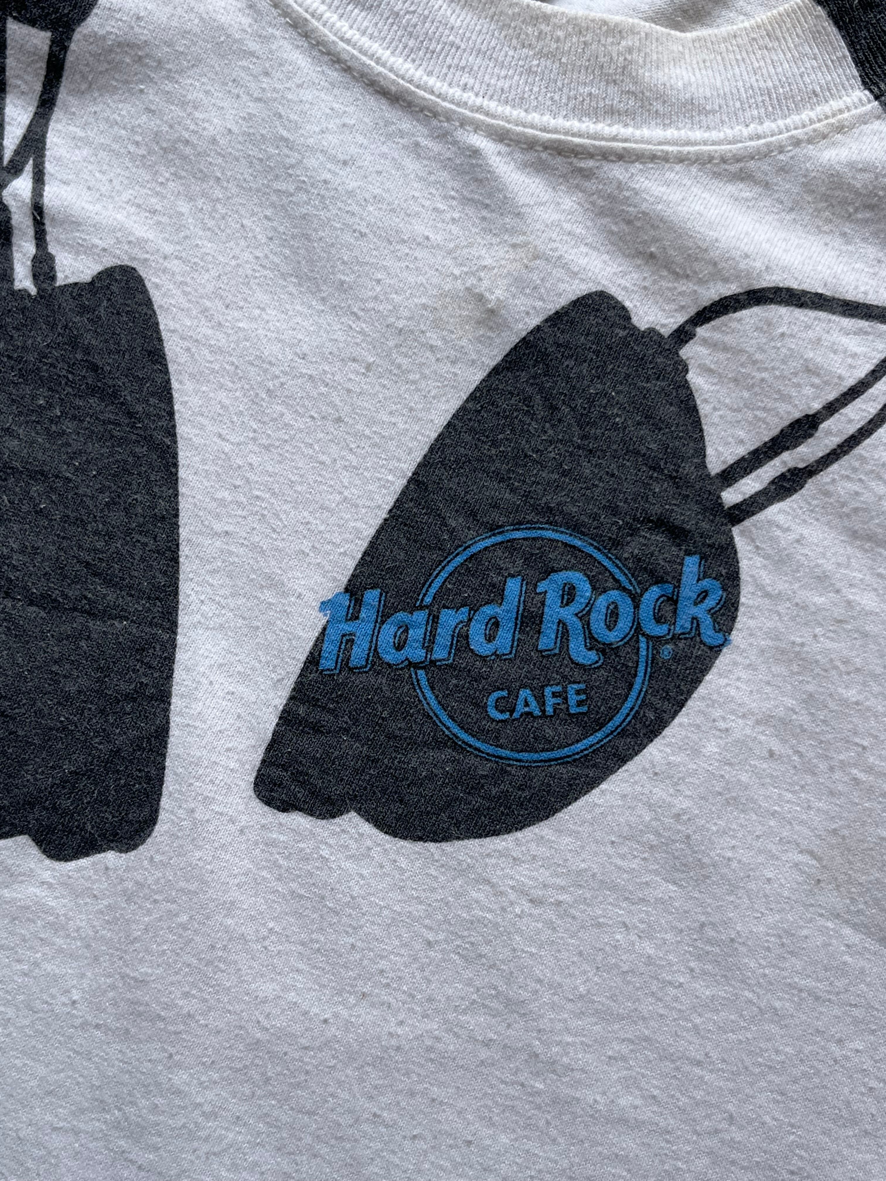 通常のロゴドンタイプのプリントではなく、肩下げジョーダンならぬ肩下げヘッドホンのグッドデザインなハードロックカフェのtee