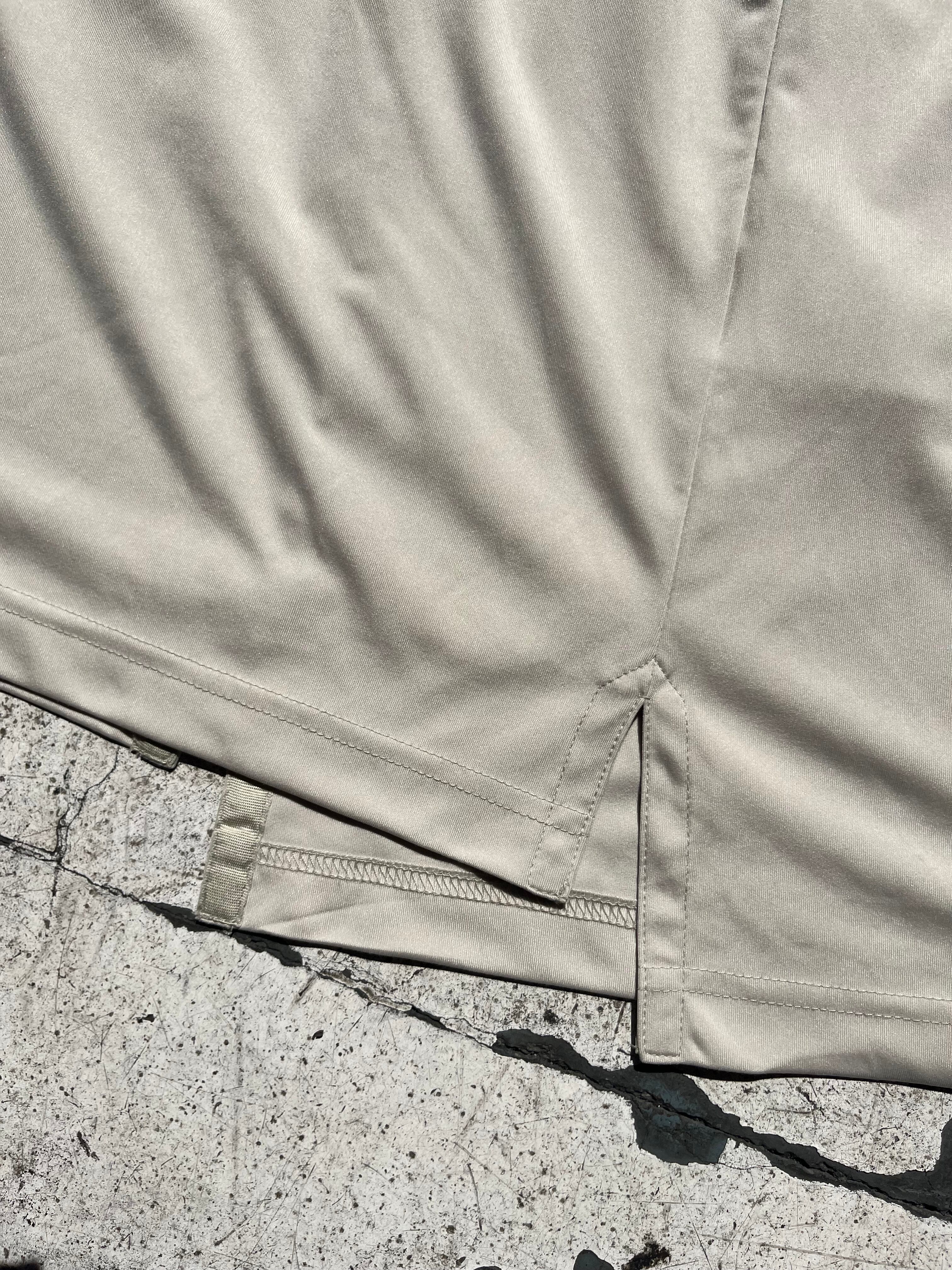 ポリ素材で軽い質感スポーツテックや色々な落とし込みで使えそうなシンプルなアイテムです。