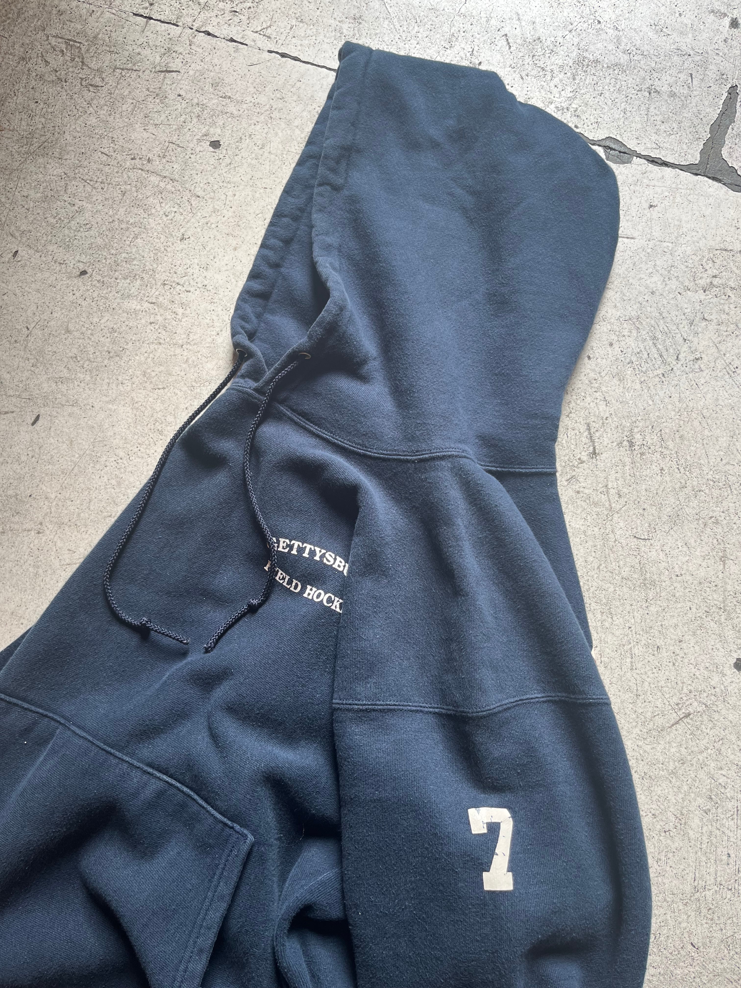 紺色ボディに左胸ワンポイントとアルファベットの"G"のバックプリントのグッドデザインです。