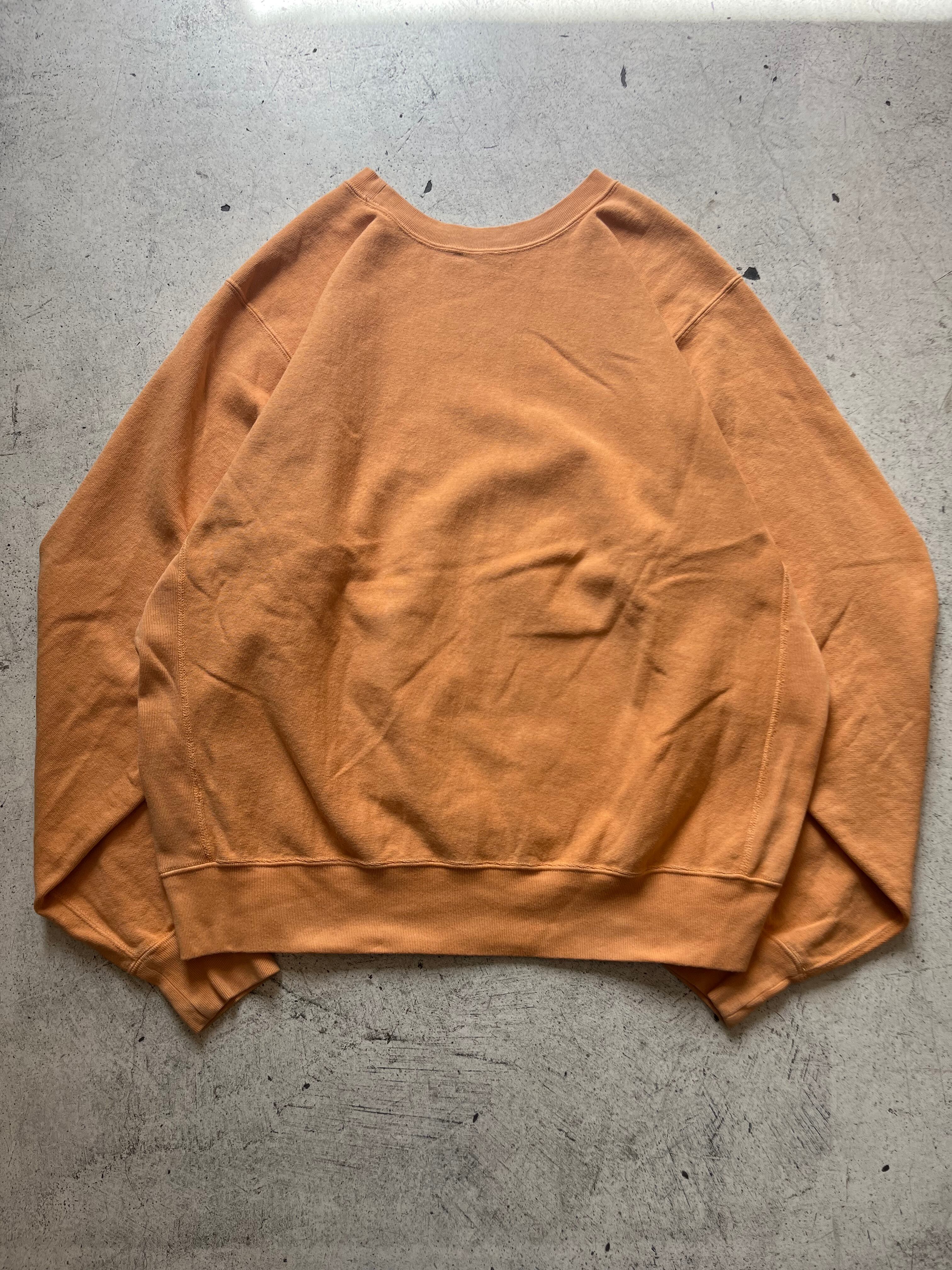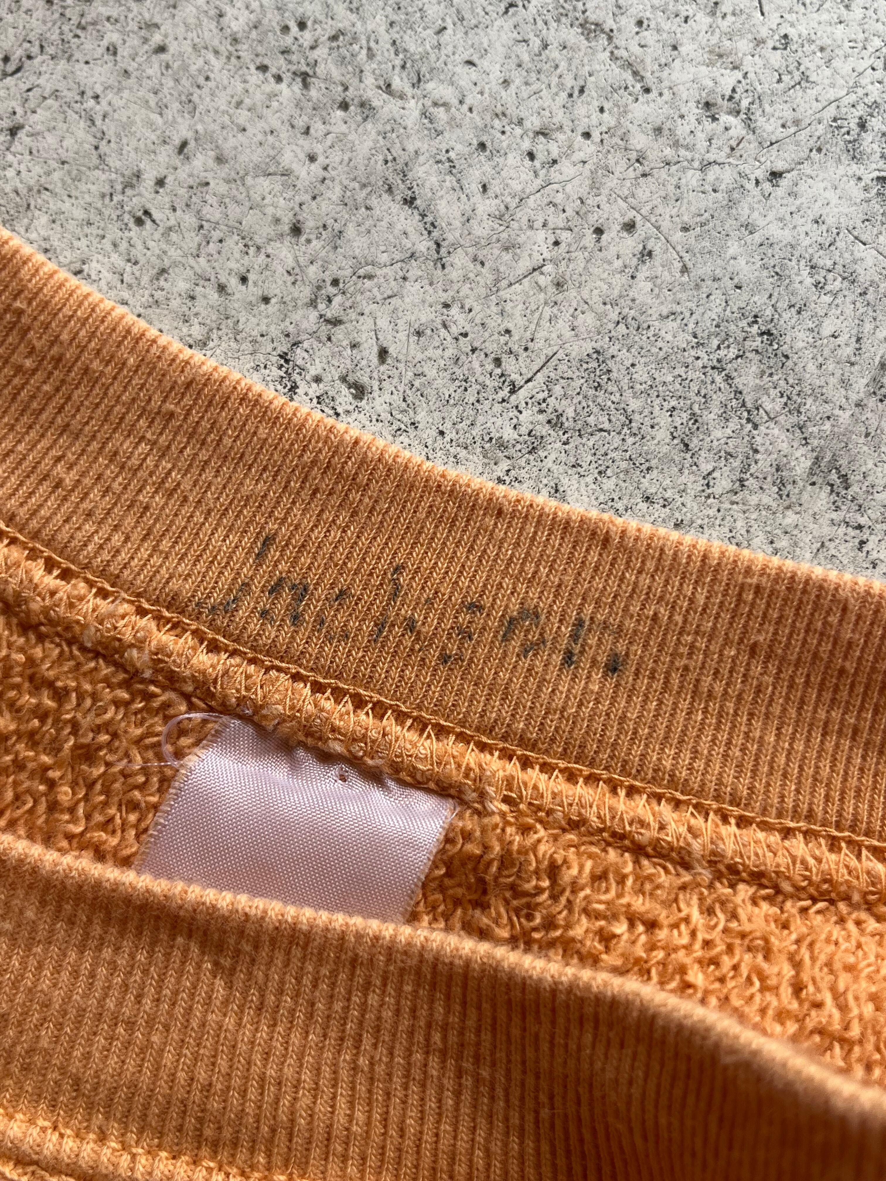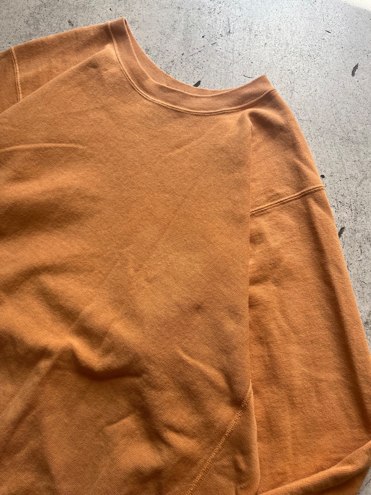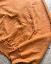 どこのブランドかもわからない、前所有者“jackson"のサイン付きの褪せたオレンジの真無地のリバース型スウェット