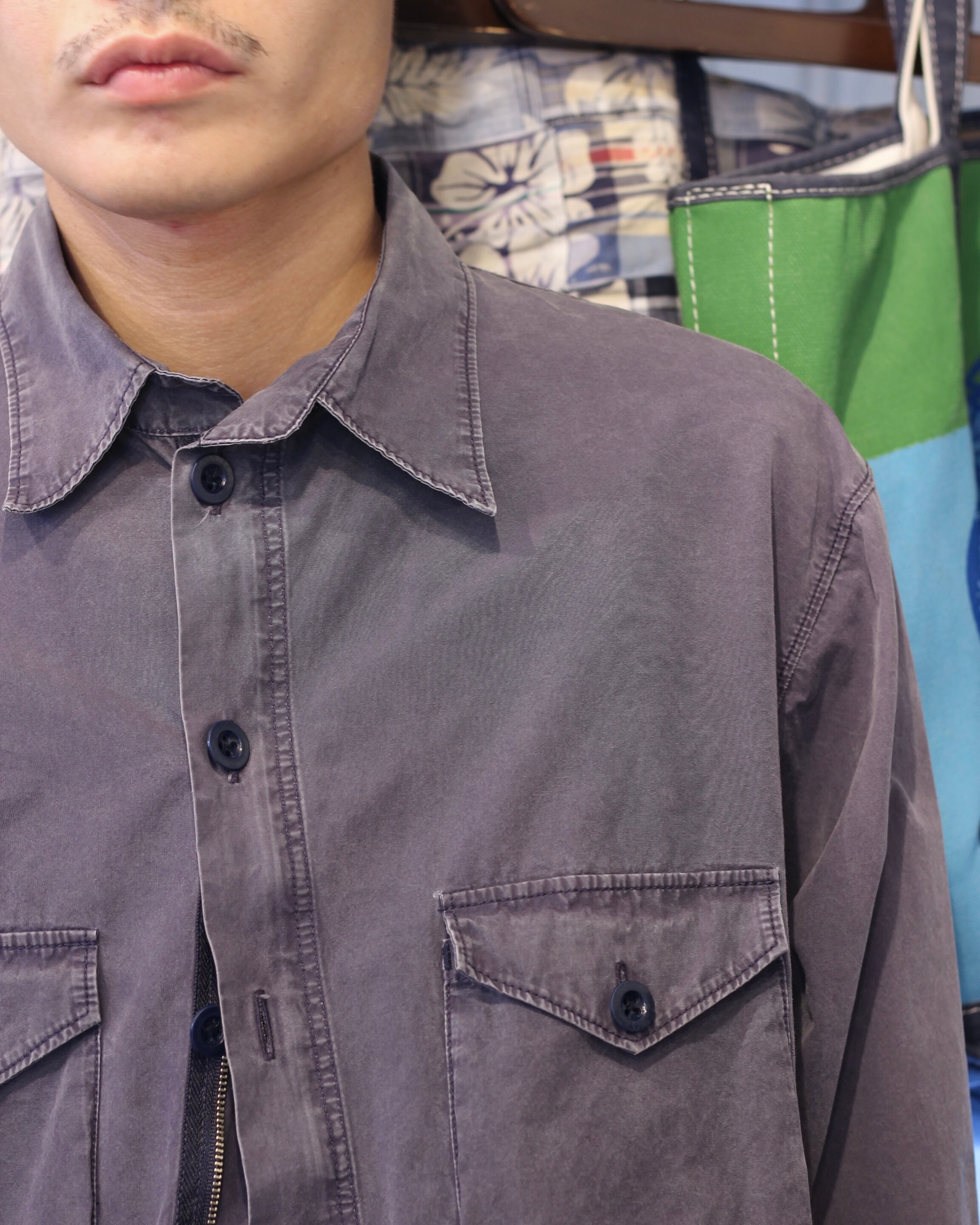 ソリッドされたシンプルな見た目にシャツとアウターのちょうど中間のような使い勝手の良い一着です。