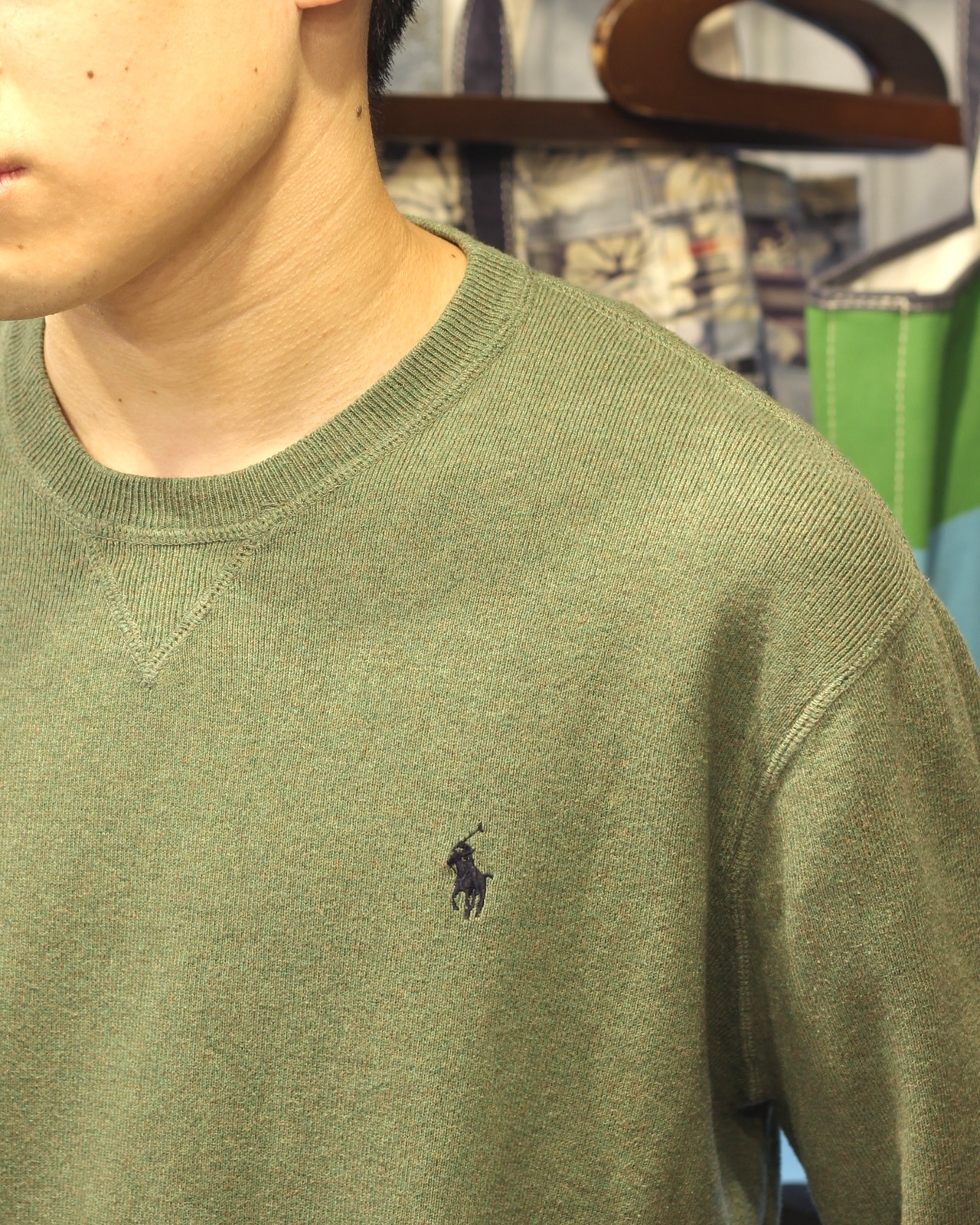安定感あるワンポイントとよく見ると混色の絶妙な色味のラルフらしいスタンダードな秋トップスです。