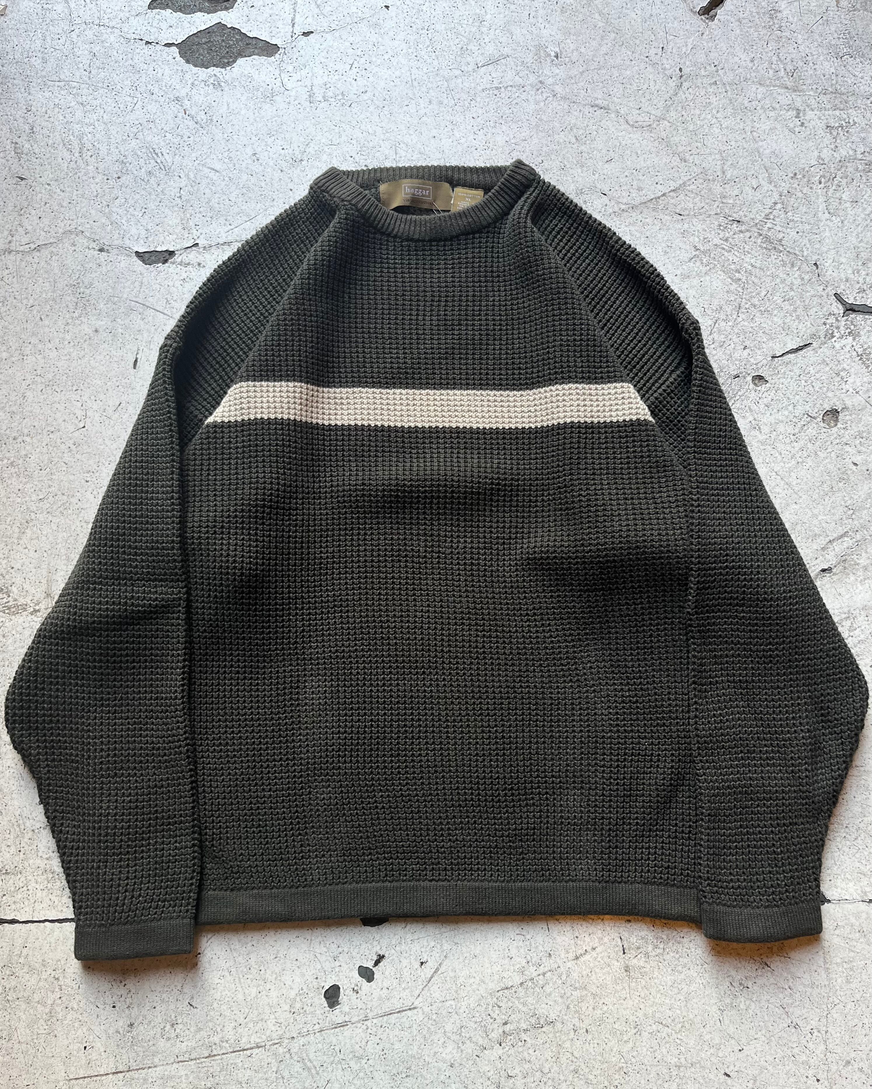 シンプルな横線が一本通ったラインのデザインで程よいデザインニットです。