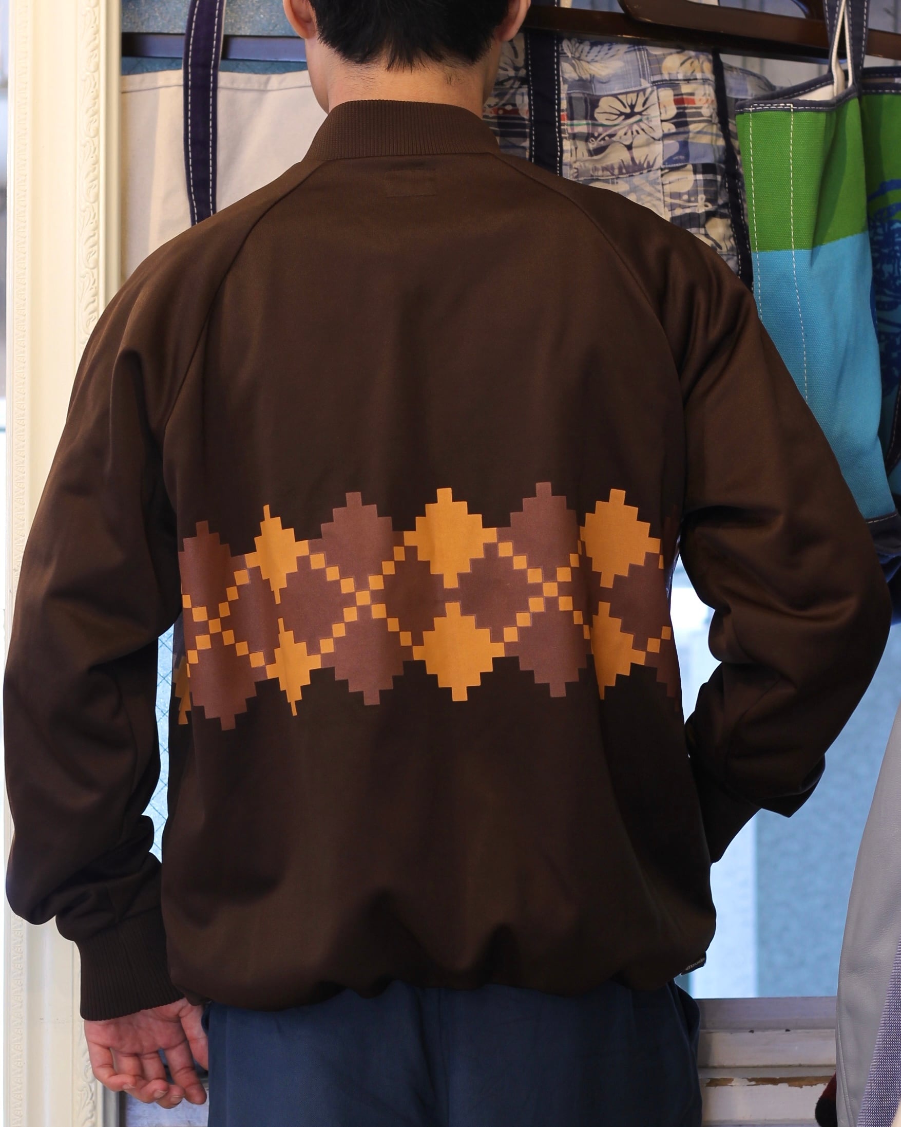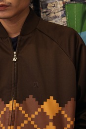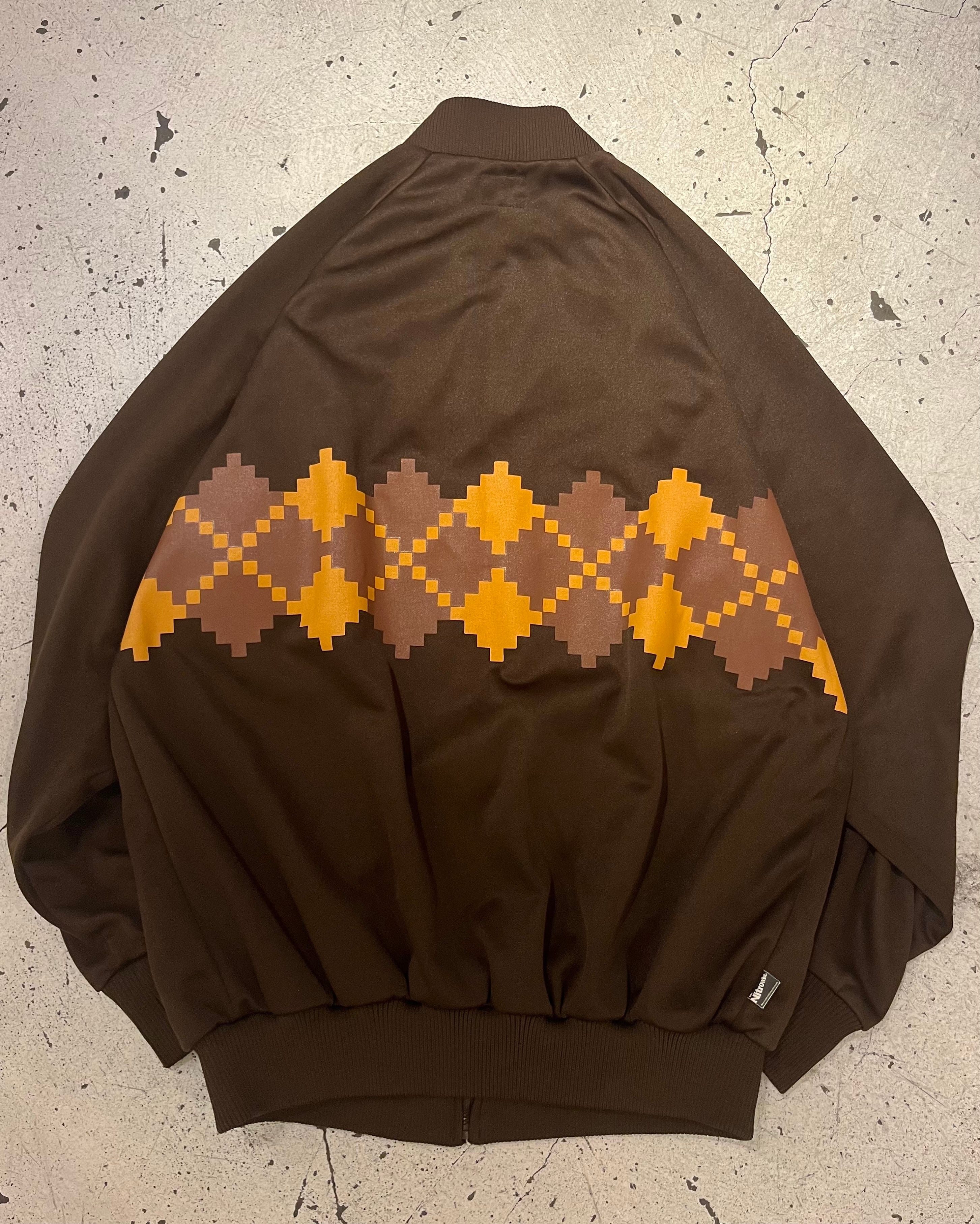 角ばったピクセルデザインの様なアーガイルのデザインが目を引くトラックジャケット