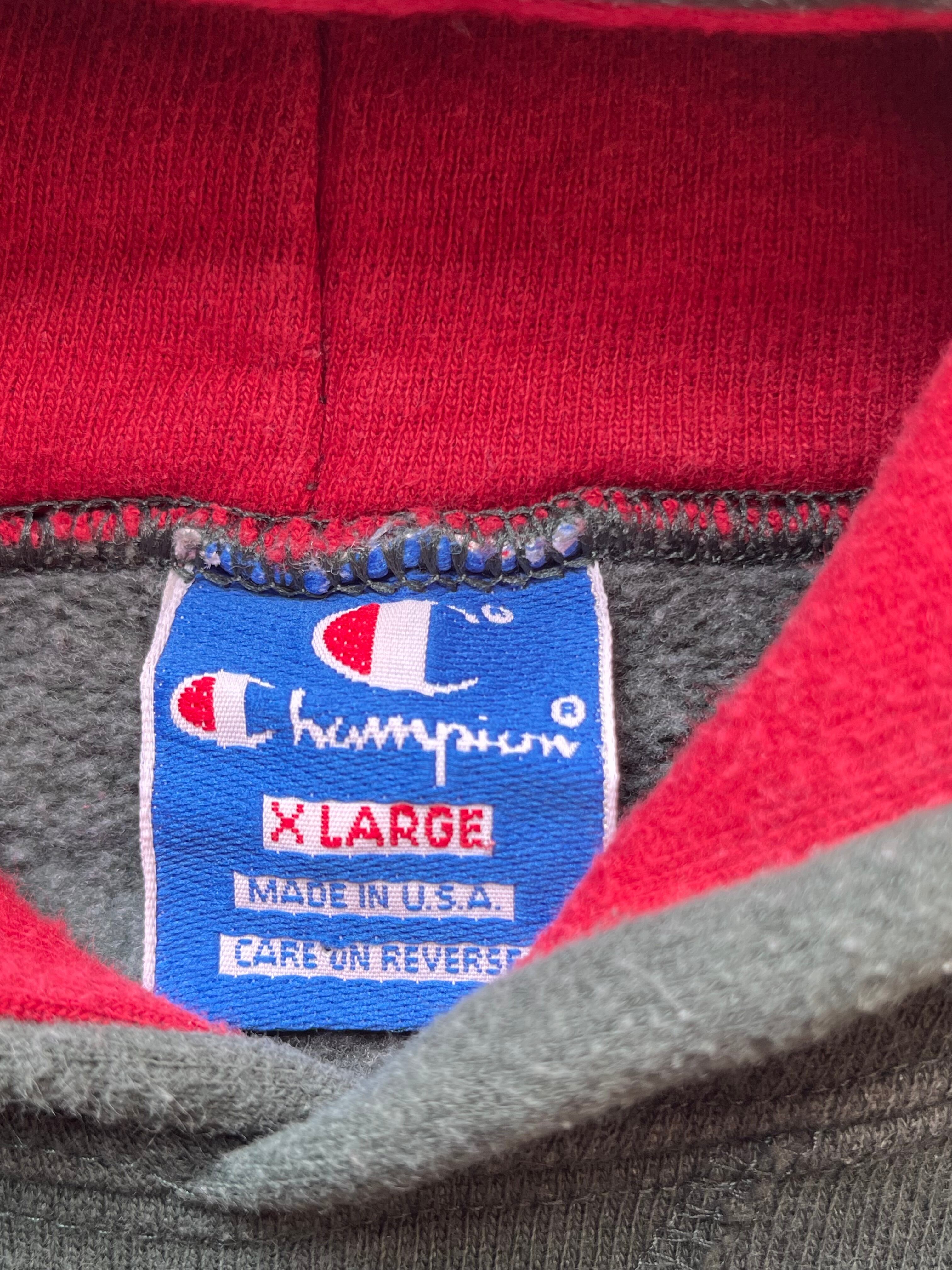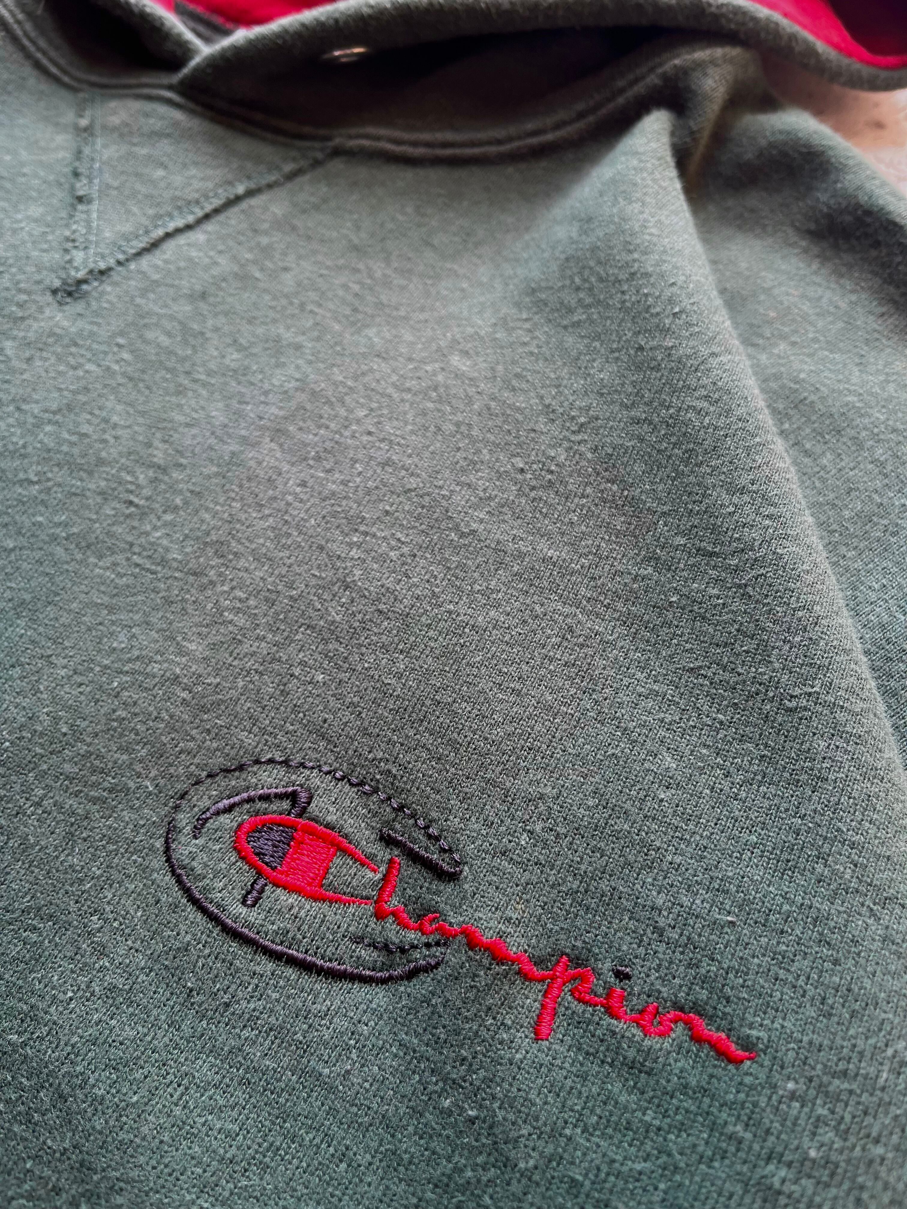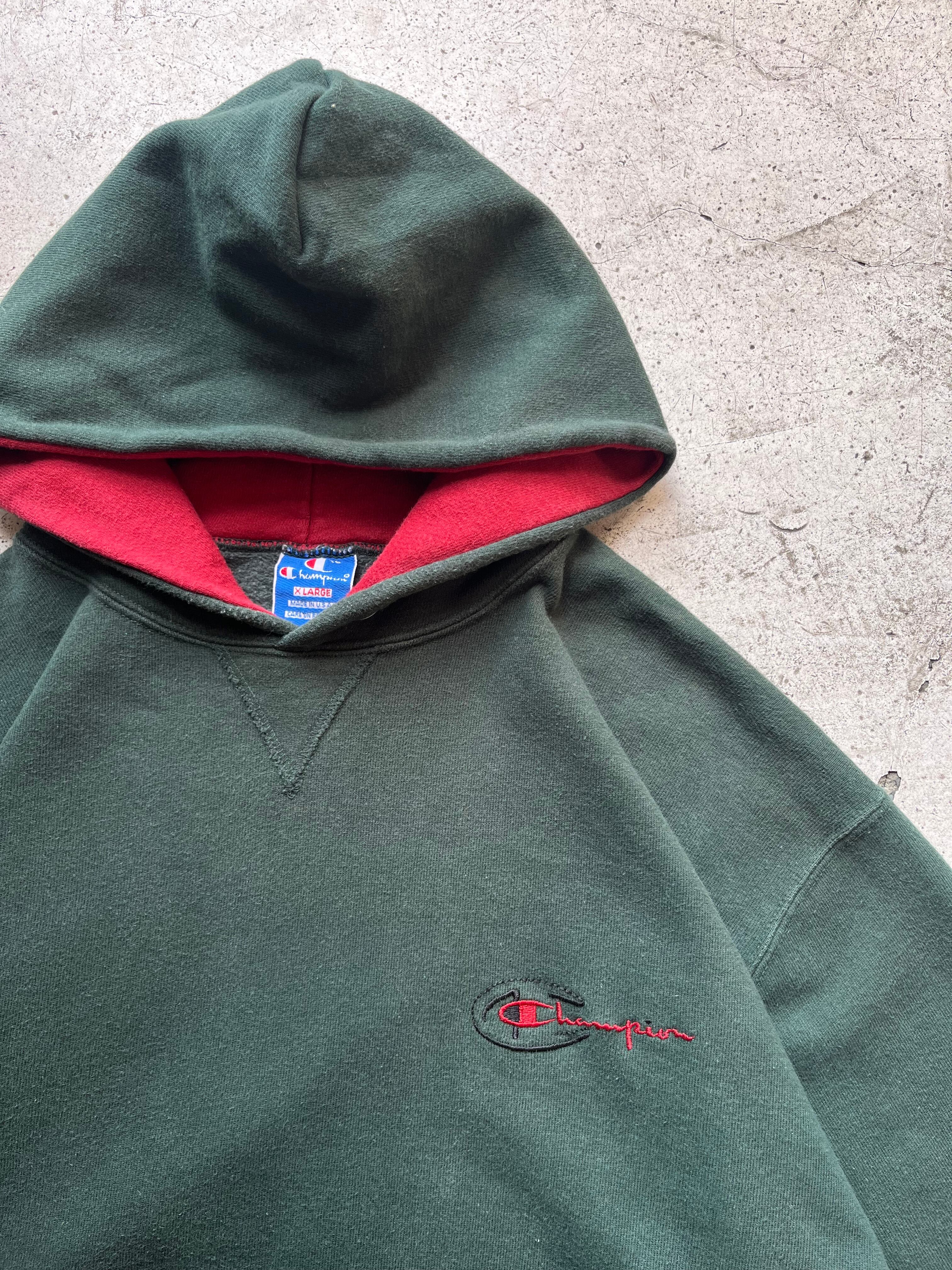 フード裏の赤やワンポイントの赤、補色合わせの配色グッドなちょい古いchampion