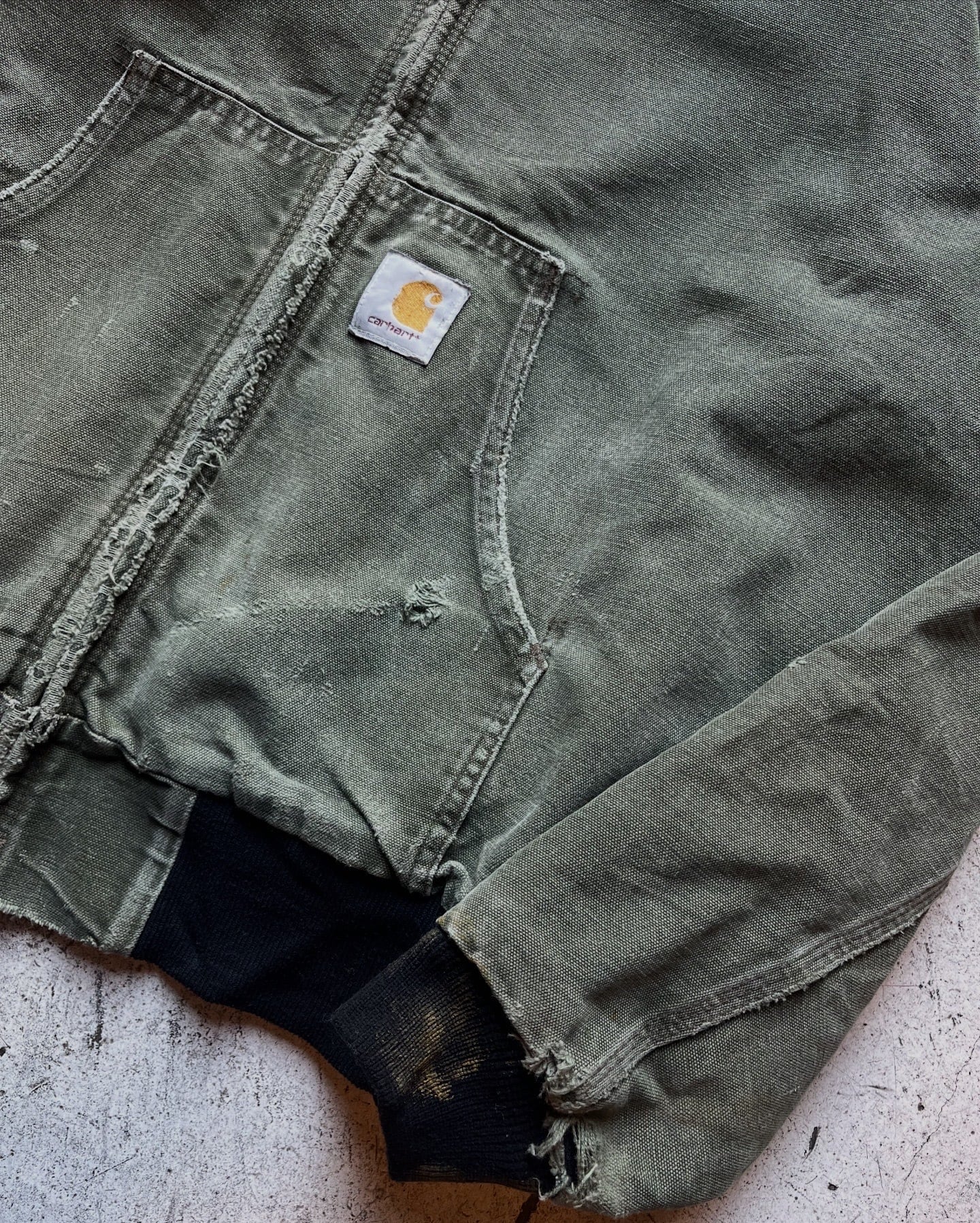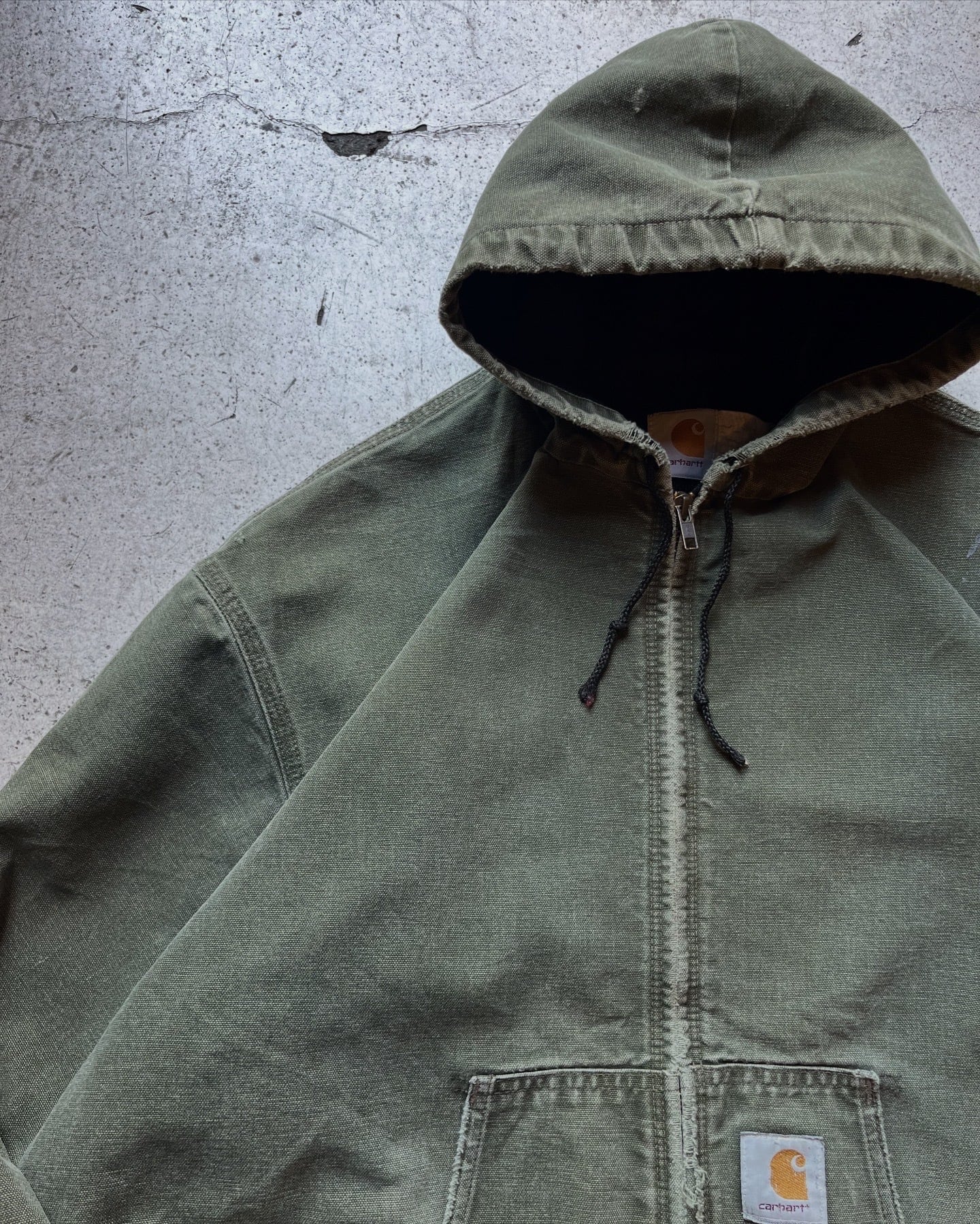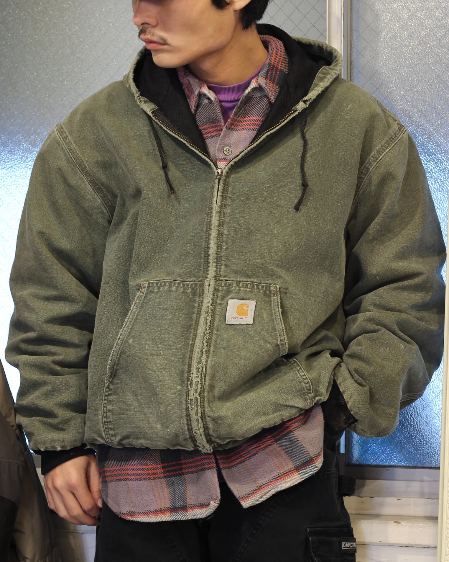 カーハートと言えばな言わずと知れたアイテムですが、激しい退廃感とフェードカラー(カーキ)が雰囲気抜群な1着です。