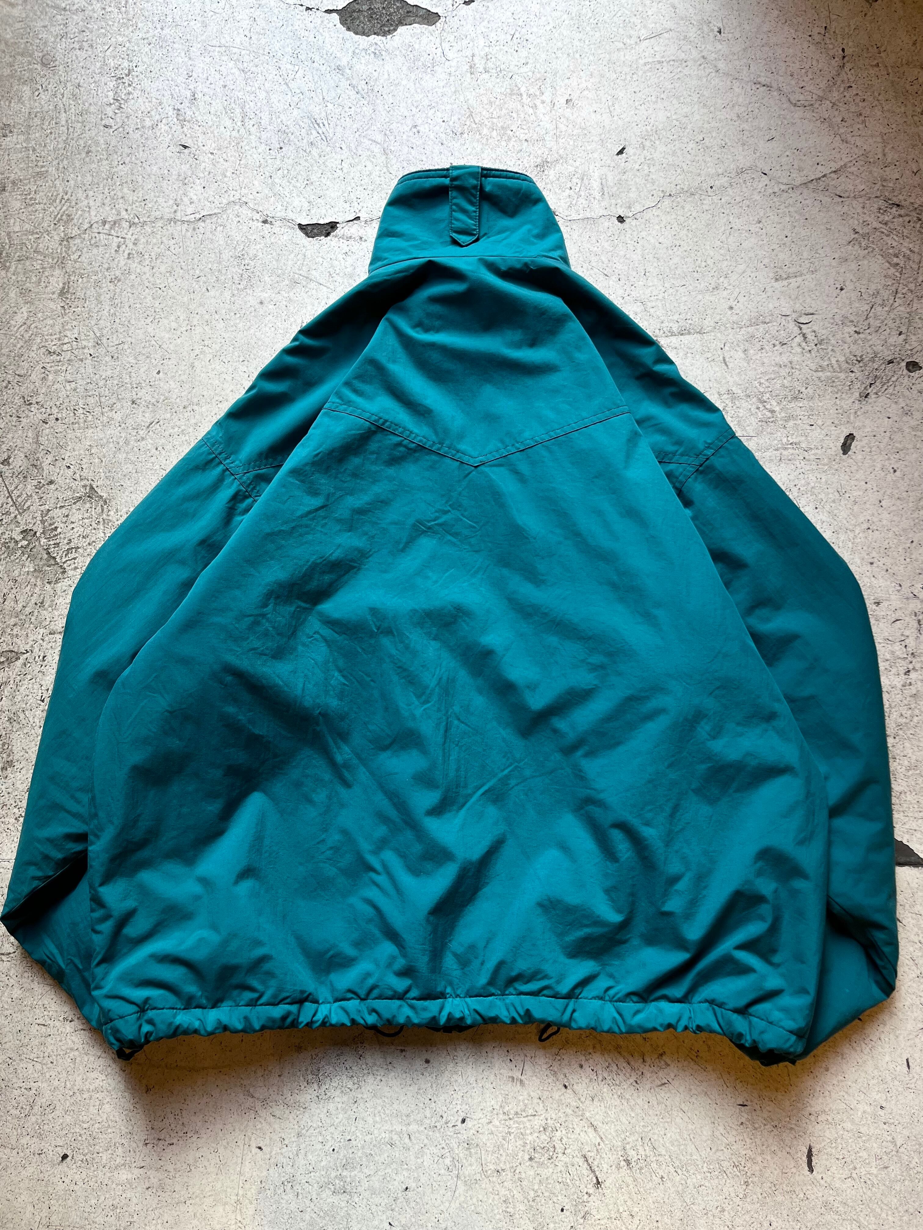 アウトドアブランドらしい水色ともターコイズとと見える絶妙カラーのナイロンジャケット