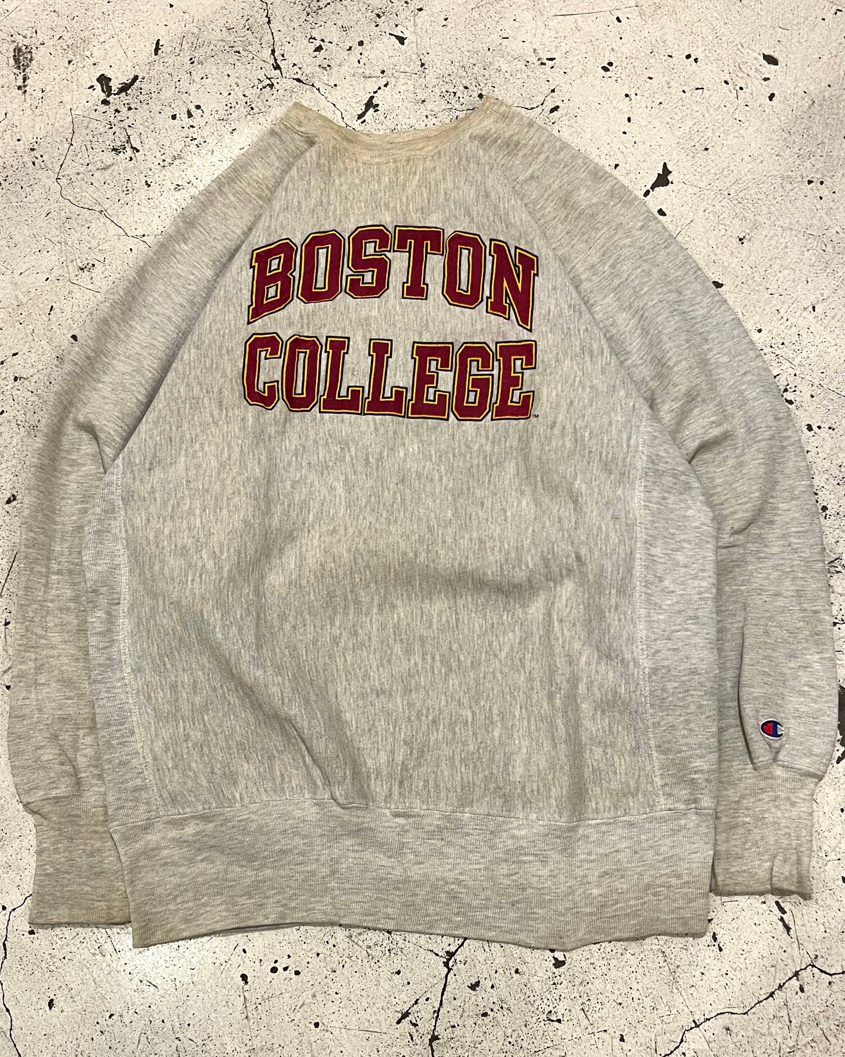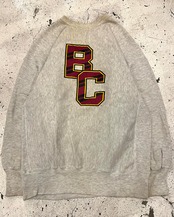 スウェットの王様チャンピオンのリバースウィーブカレッジプリントの中でも珍しいフロント、バック両方にプリントの入った良いデザインの一着です。