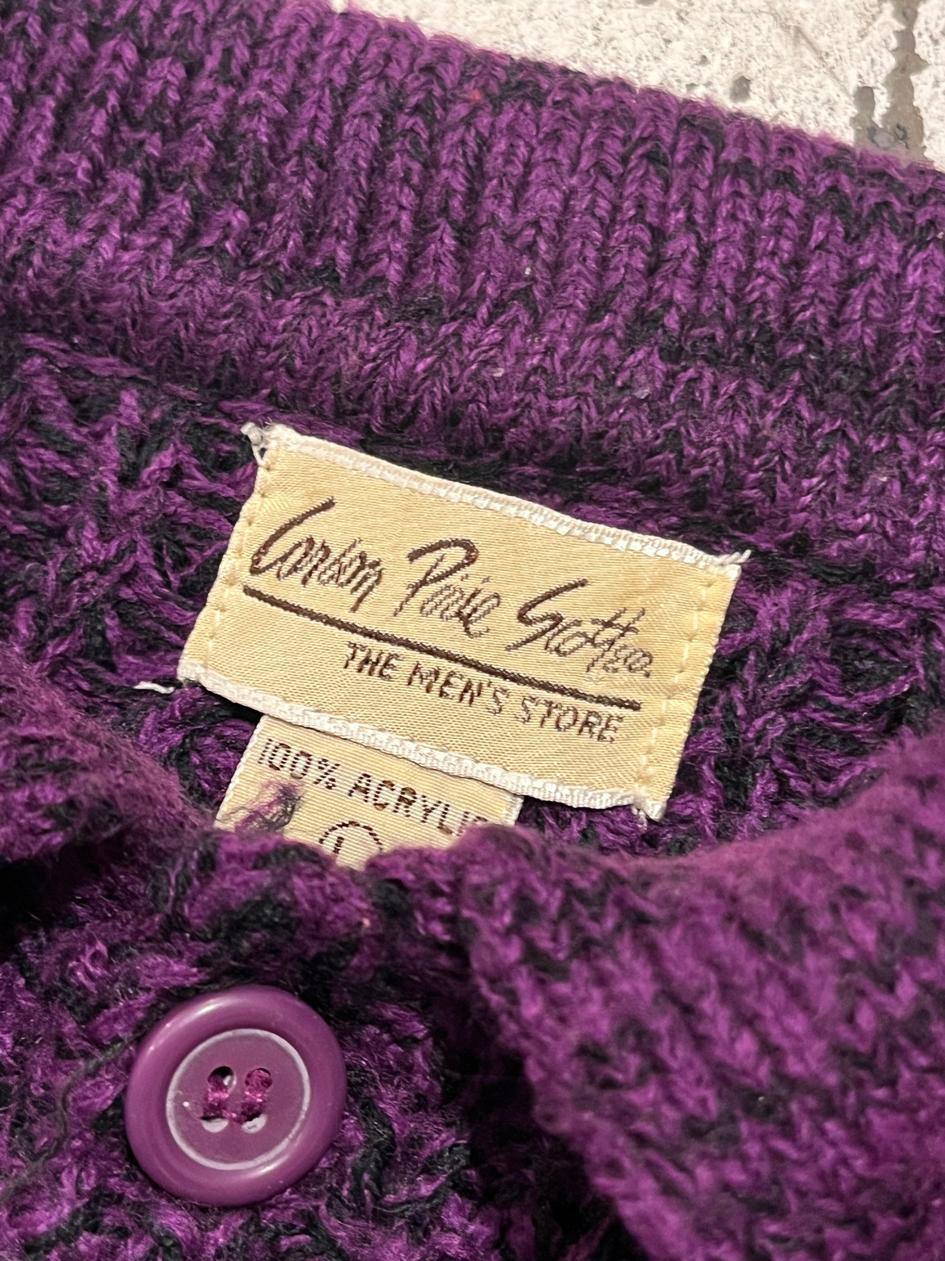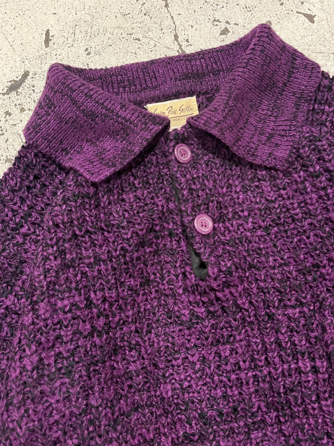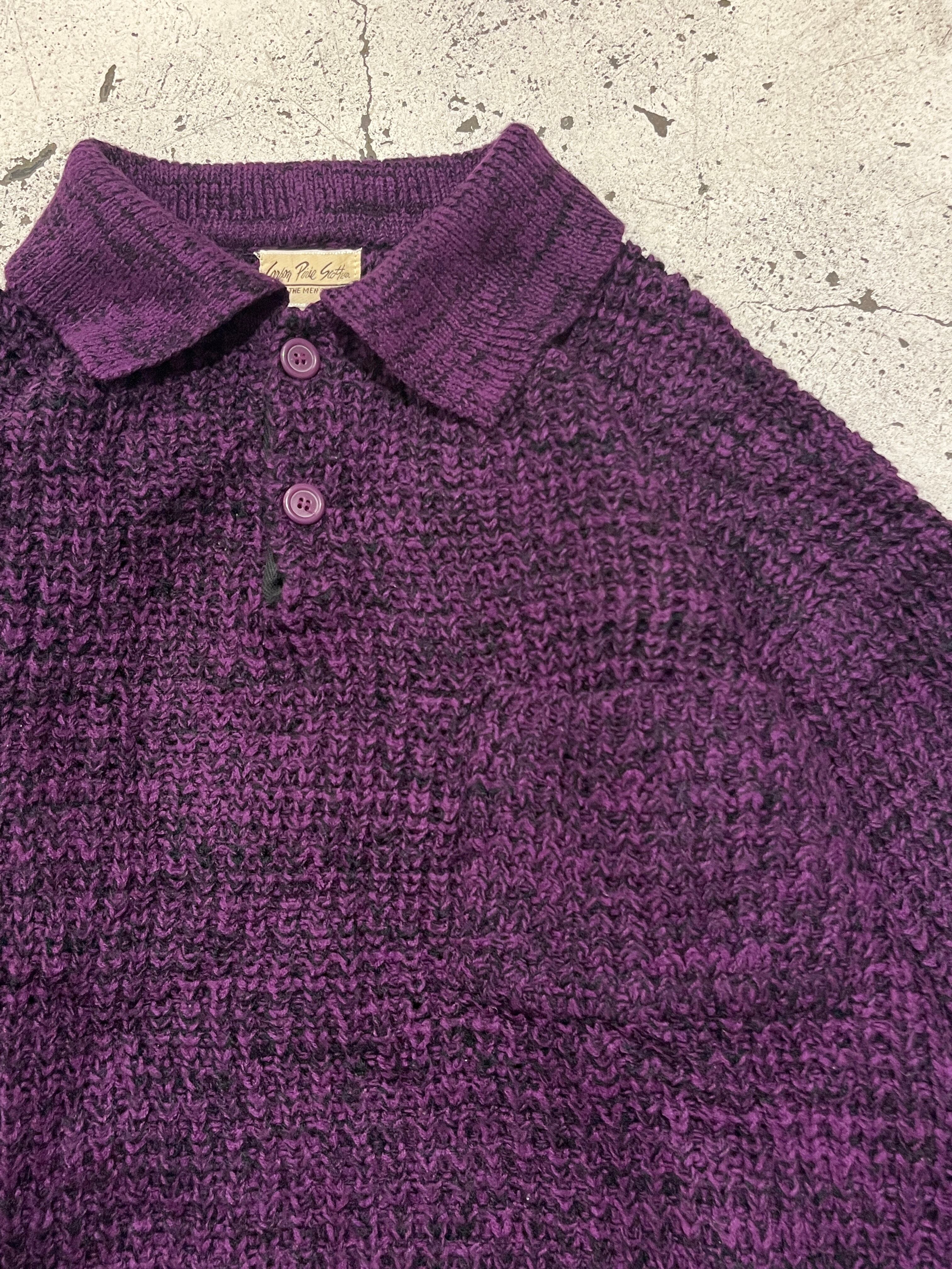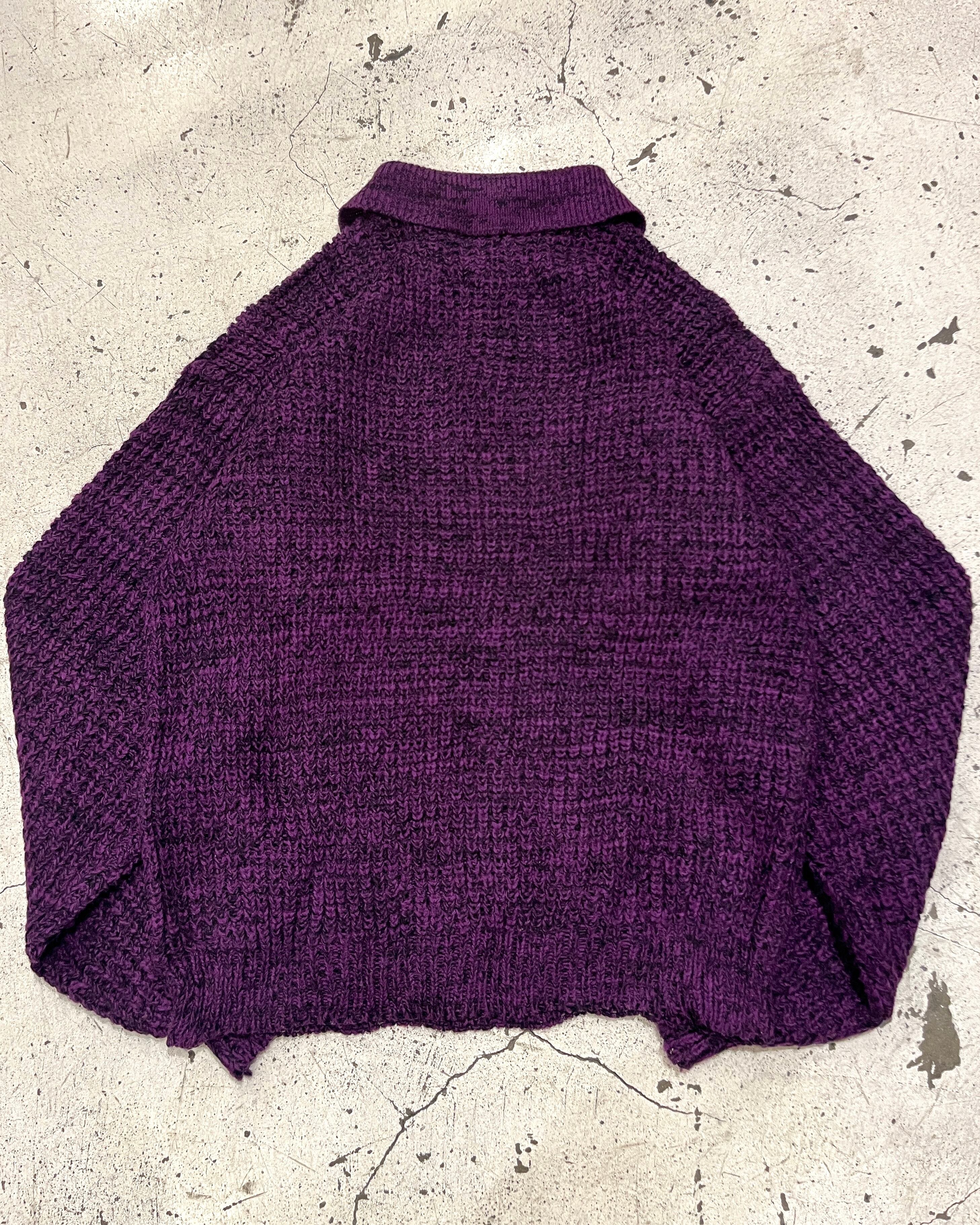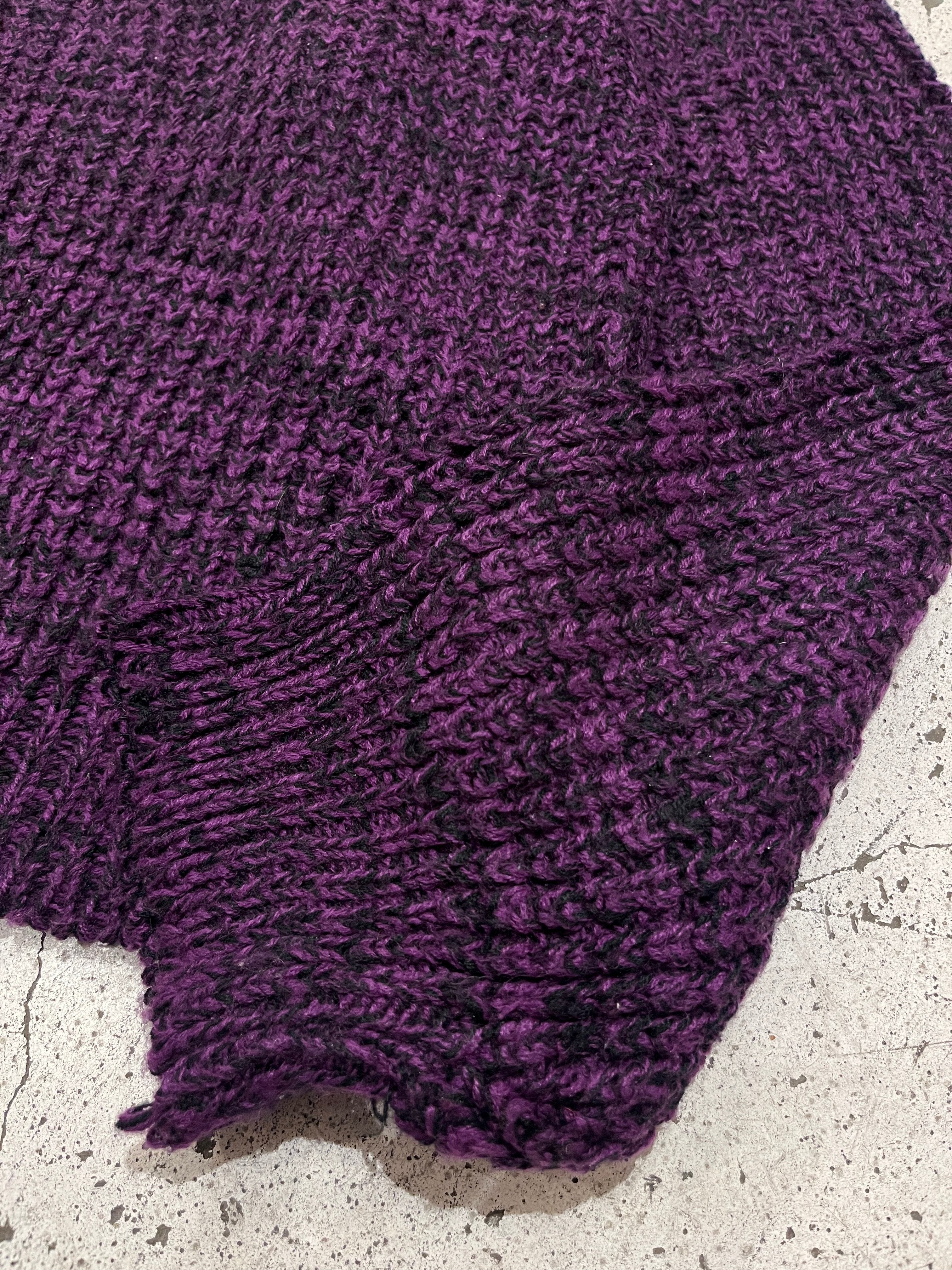 当店定番の畦編みニット。紫と黒の混色デザインで良い存在感な色味です。