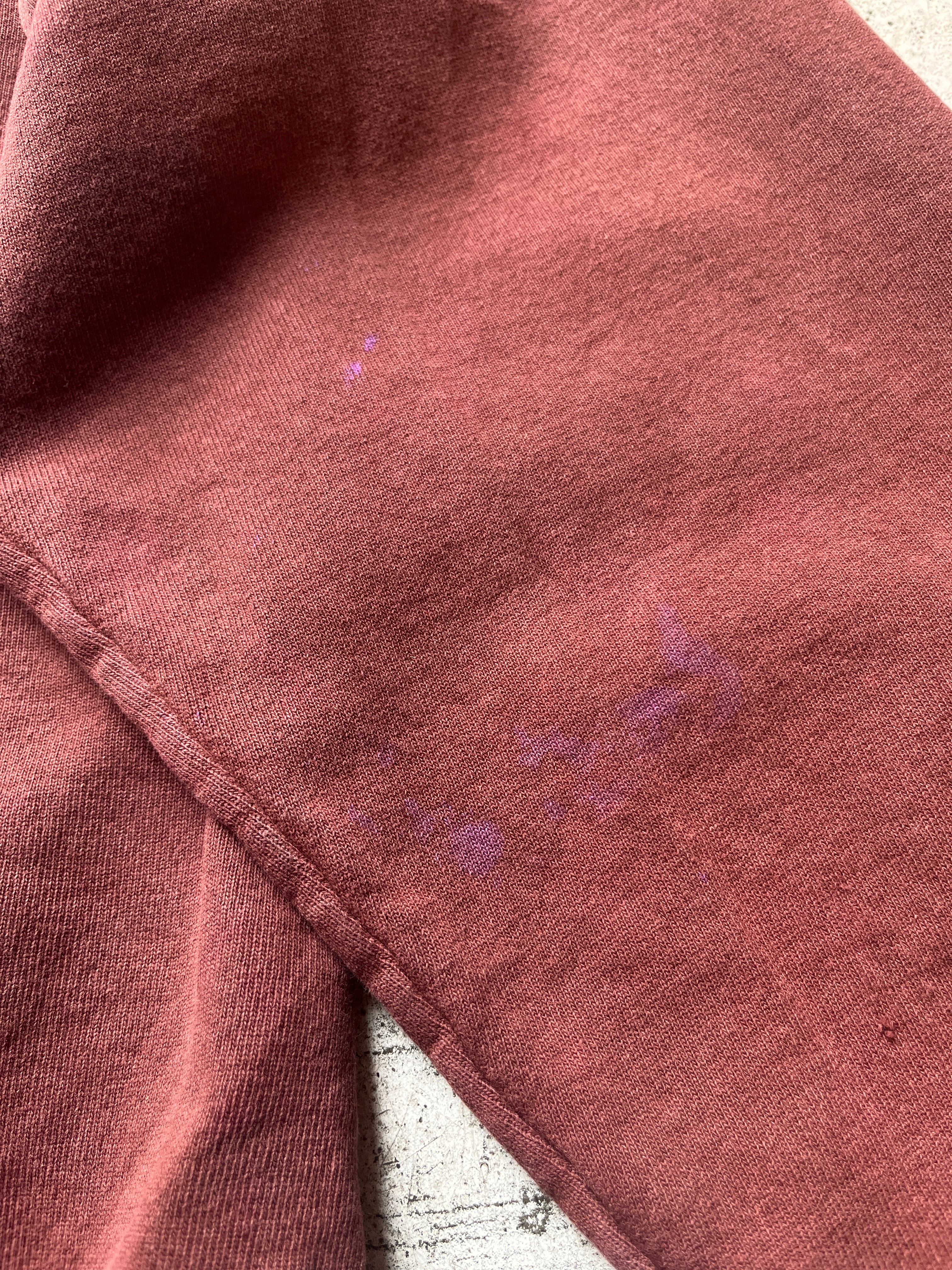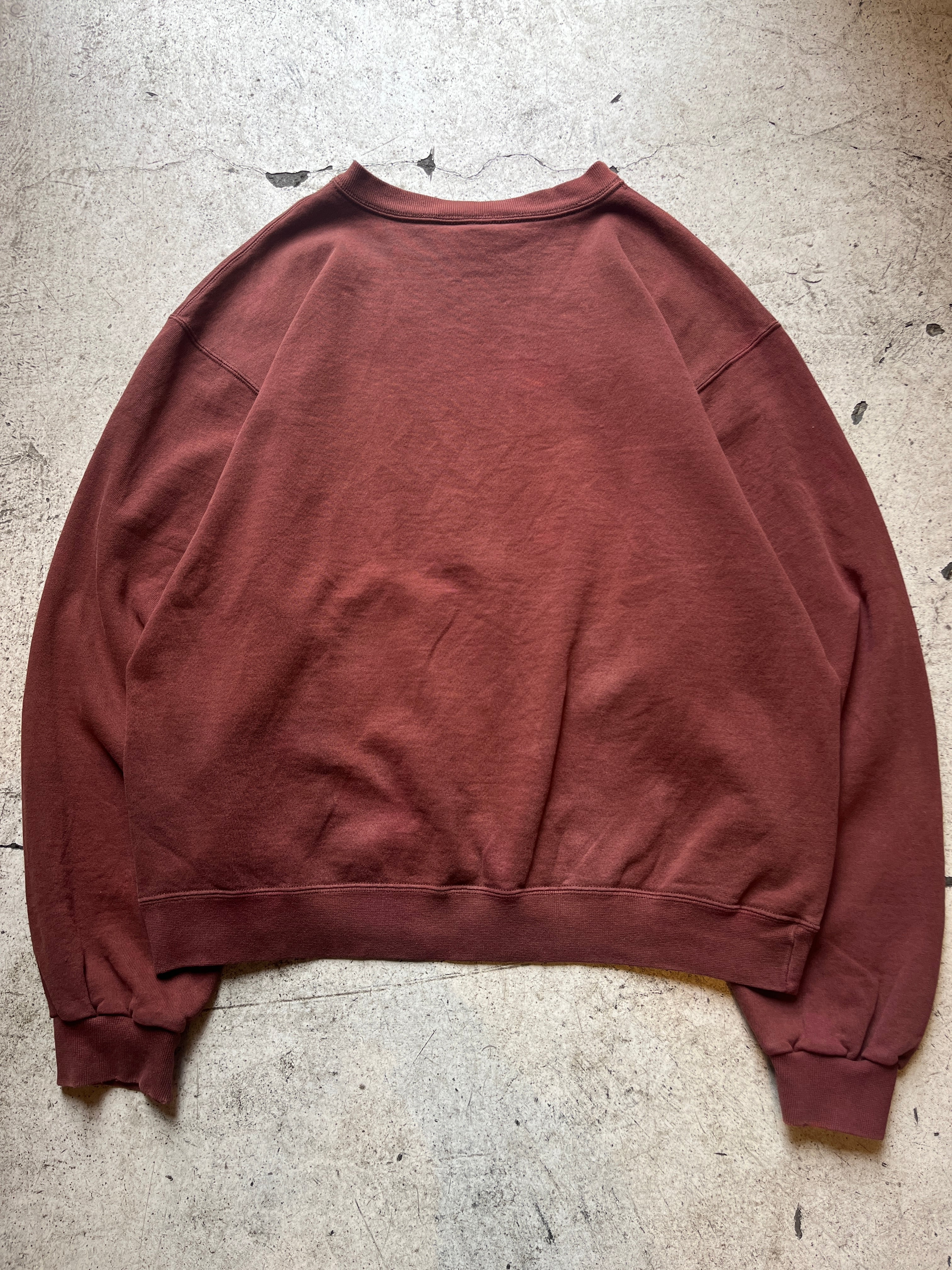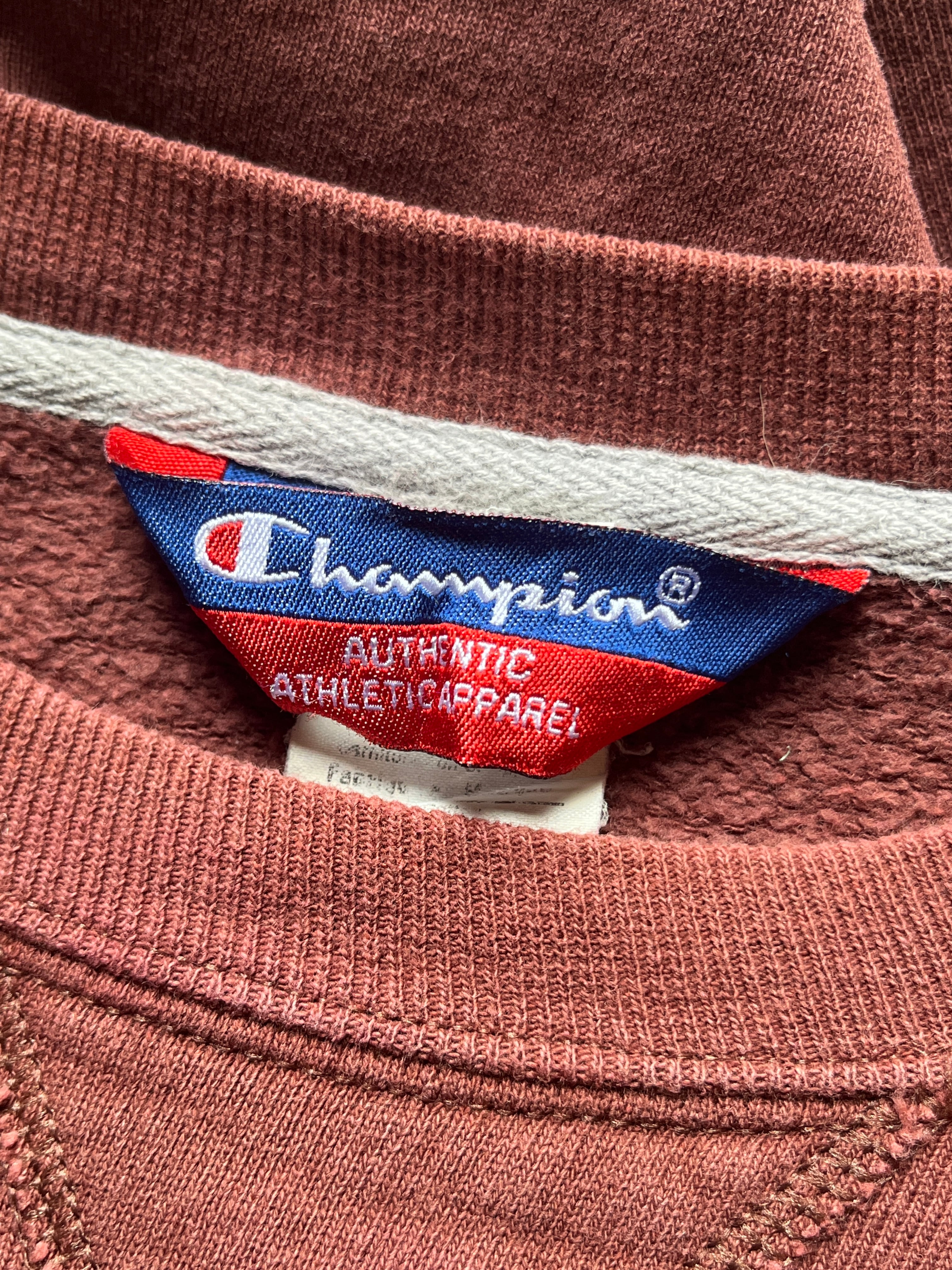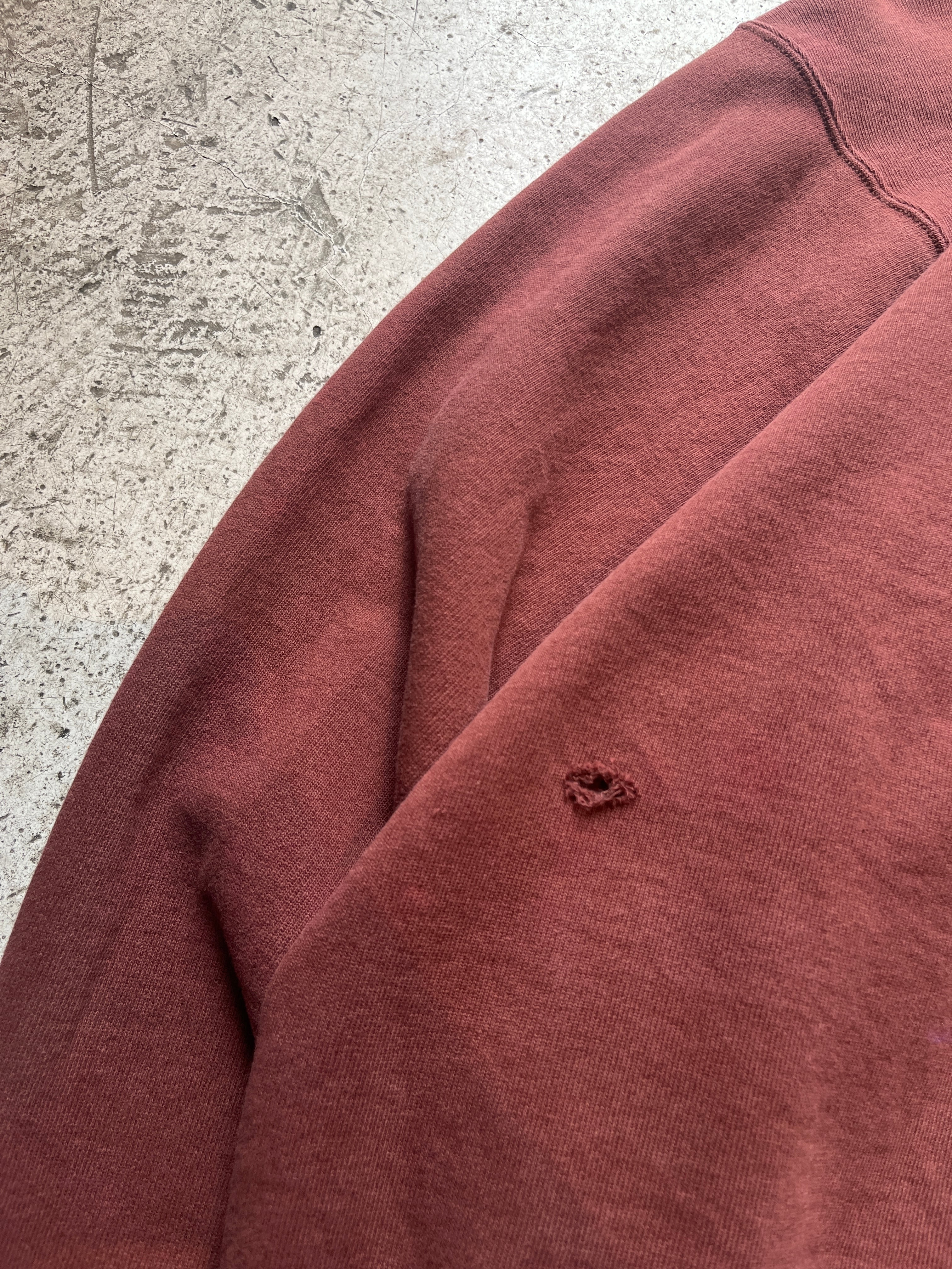 茶色よりもレンガ色という色の名がしっかりとくる独特な色味のチャンピオンのスウェット。