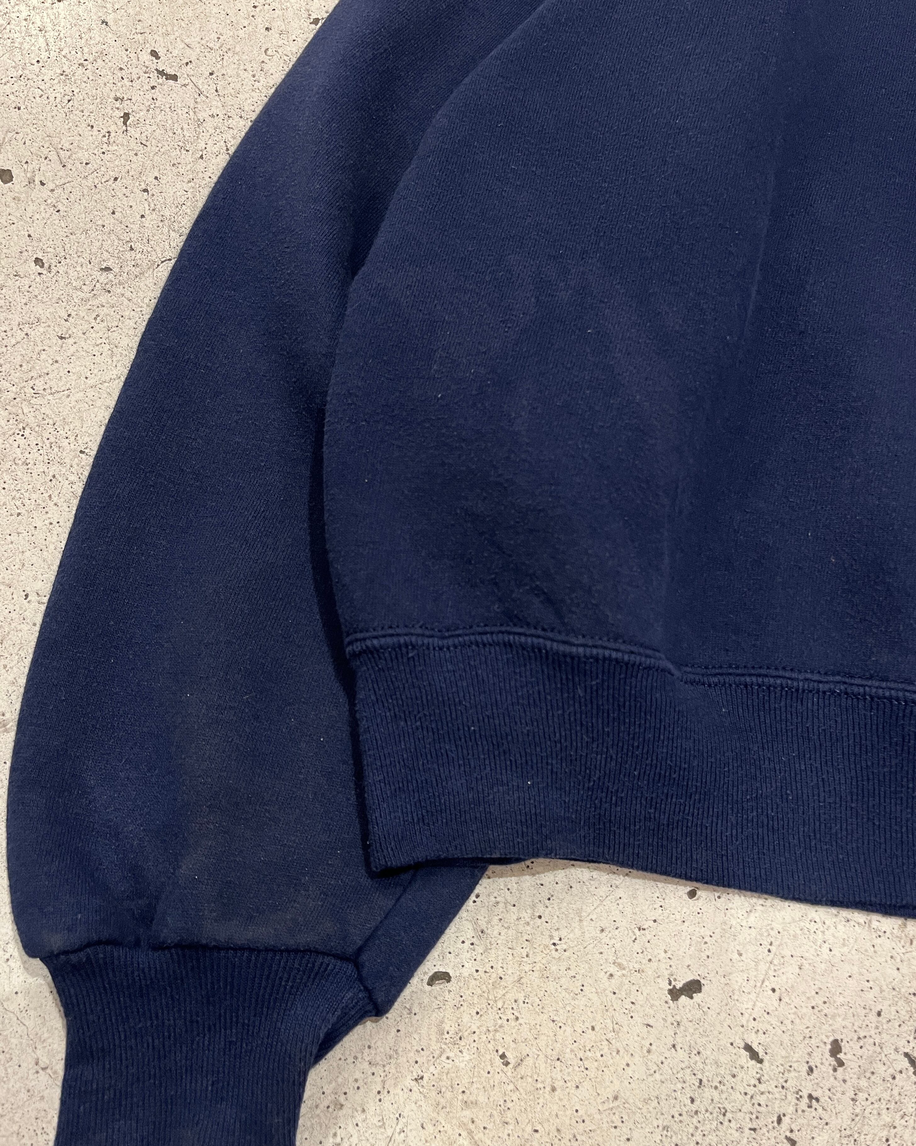 しっかりとアメリカ製のネイビーボディ、古着らしい褪色もちらほら見られる一点モノ感ある一着です。