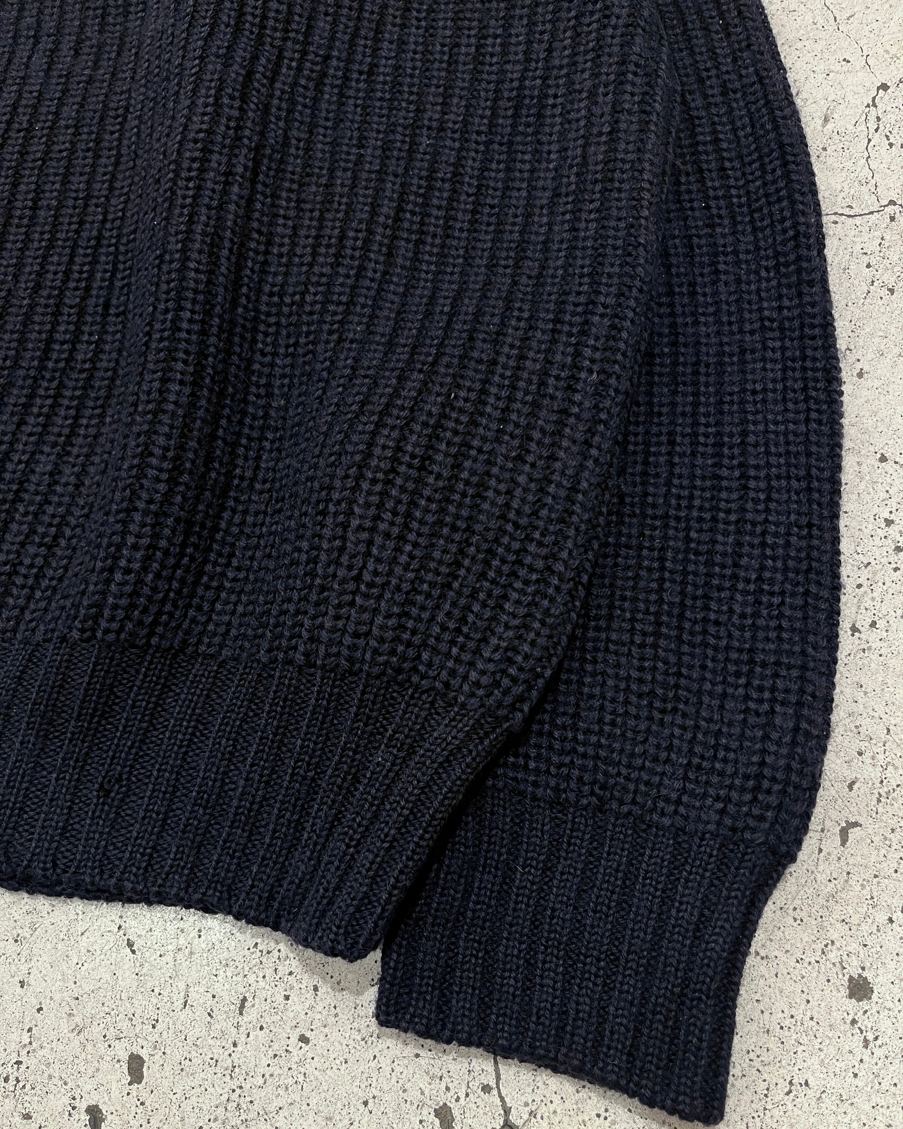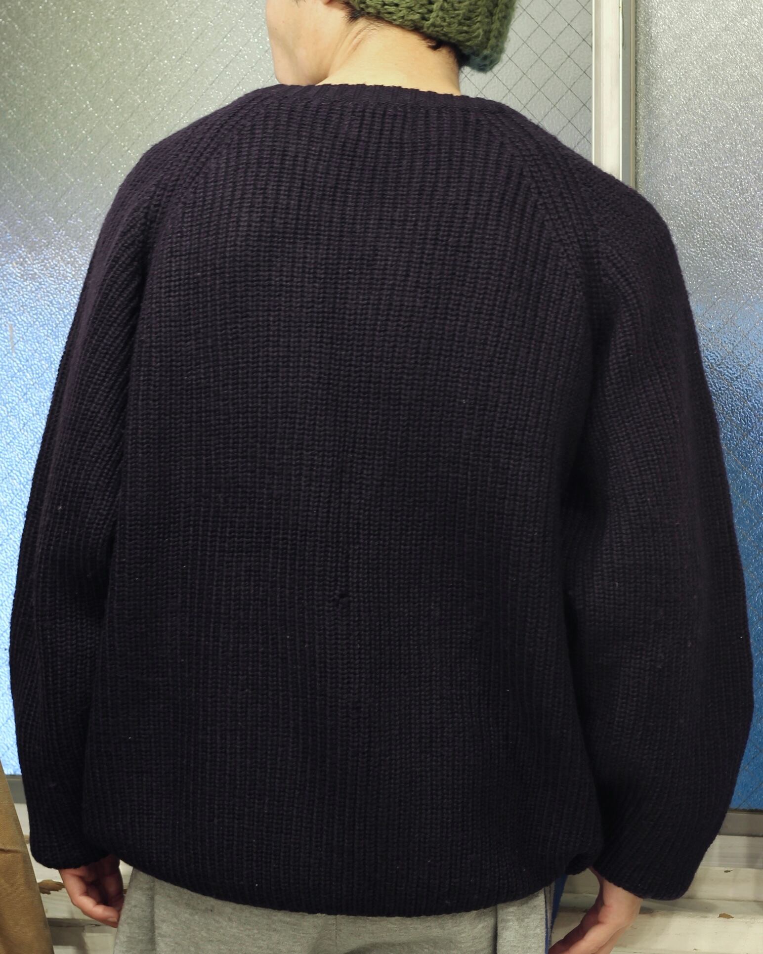 こちらはウール素材で肉厚な生地感で着心地抜群な一着、ダークネイビーの落ち着いた色味で扱いやすく冬場のインナーローテーションの一角を安心して任せられるアイテムです。