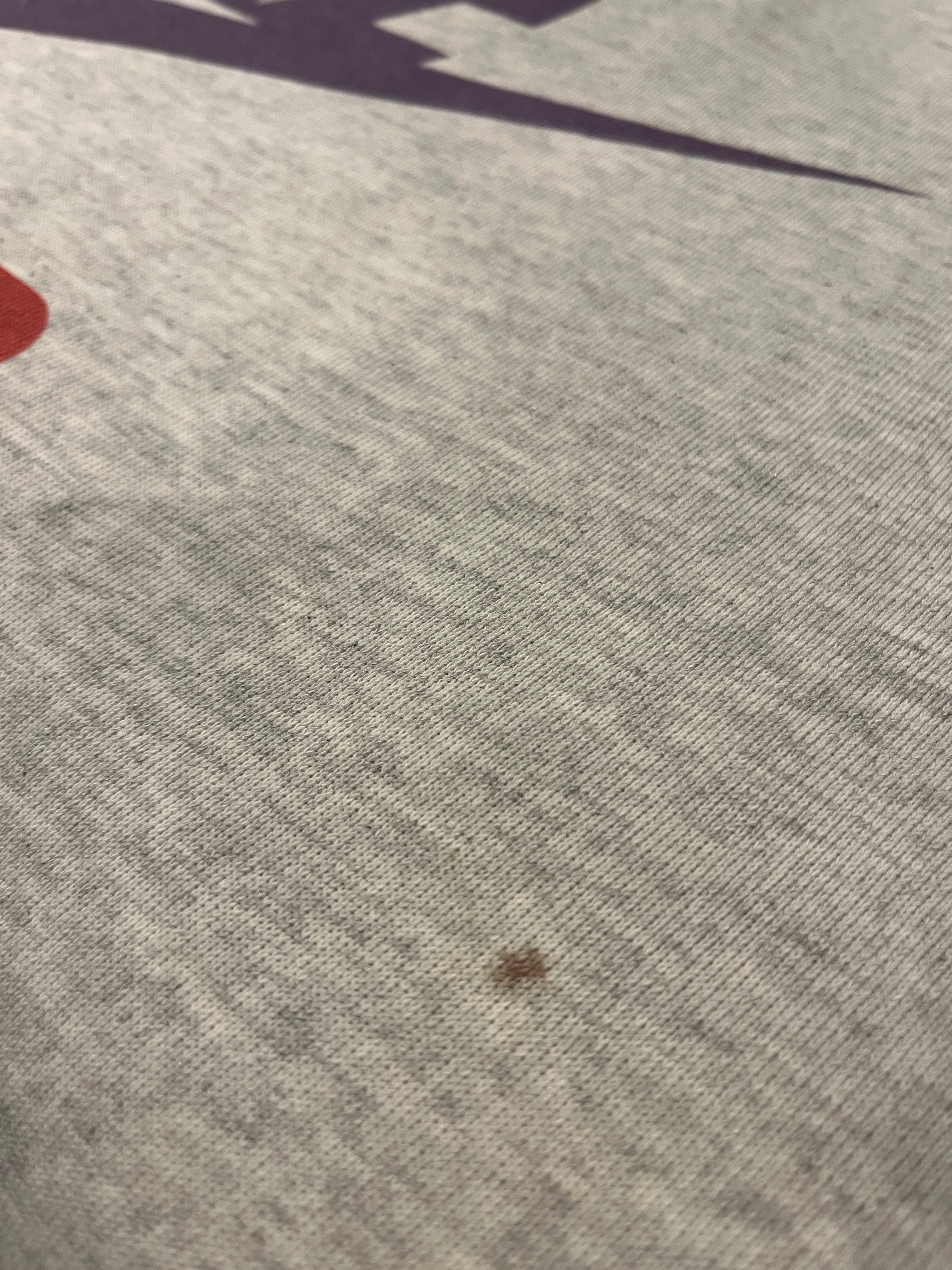 90年代らしいポップでカラフルなデザインの効いたフロントプリントにバックプリントはシンプルなロゴプリントと前後でバランスの取れたグッドデザインの銀タグナイキです。