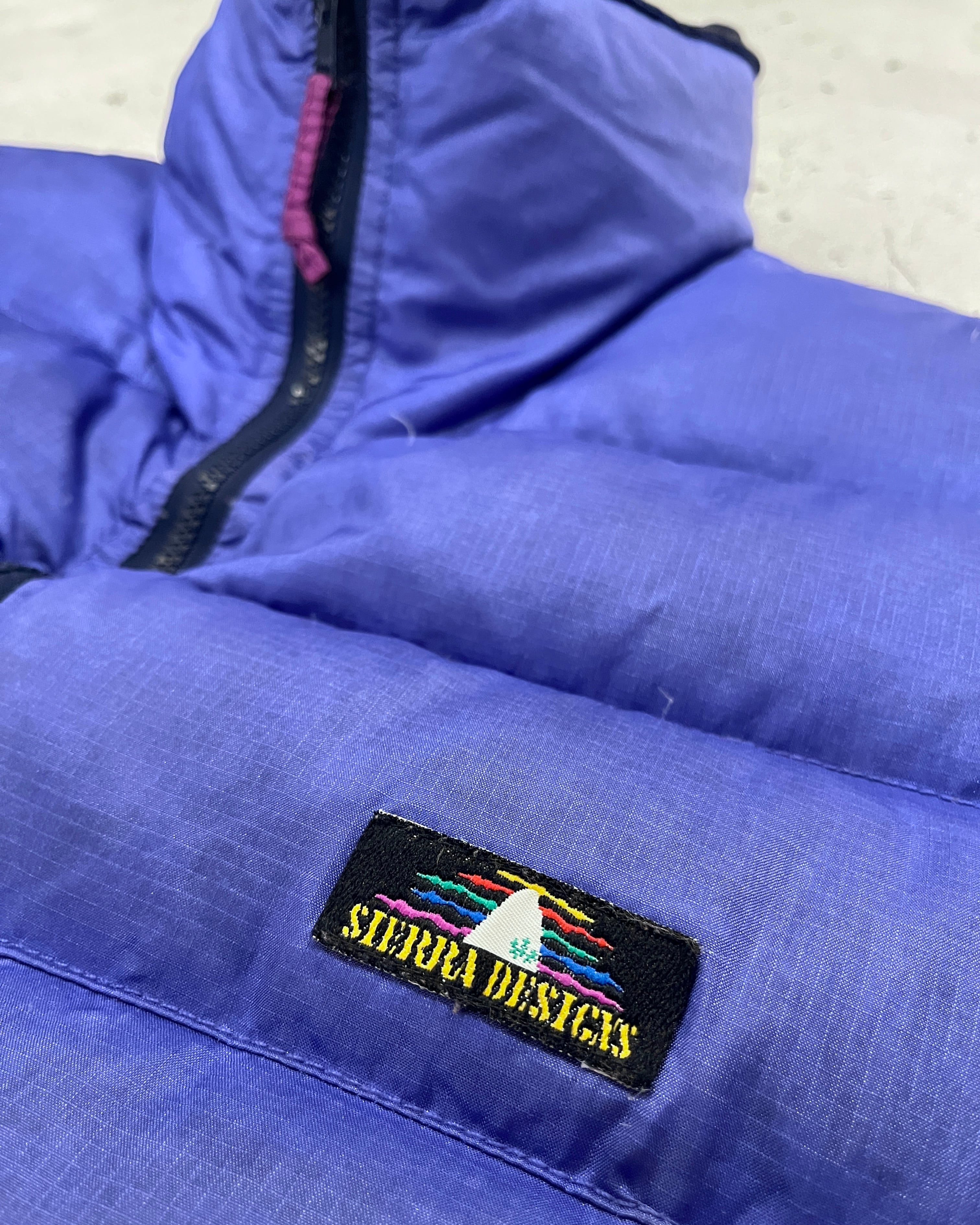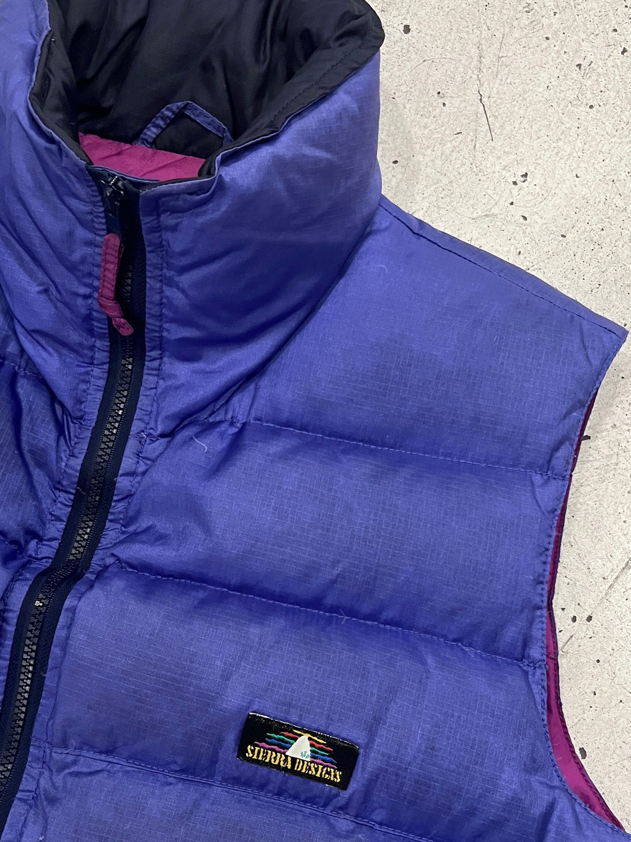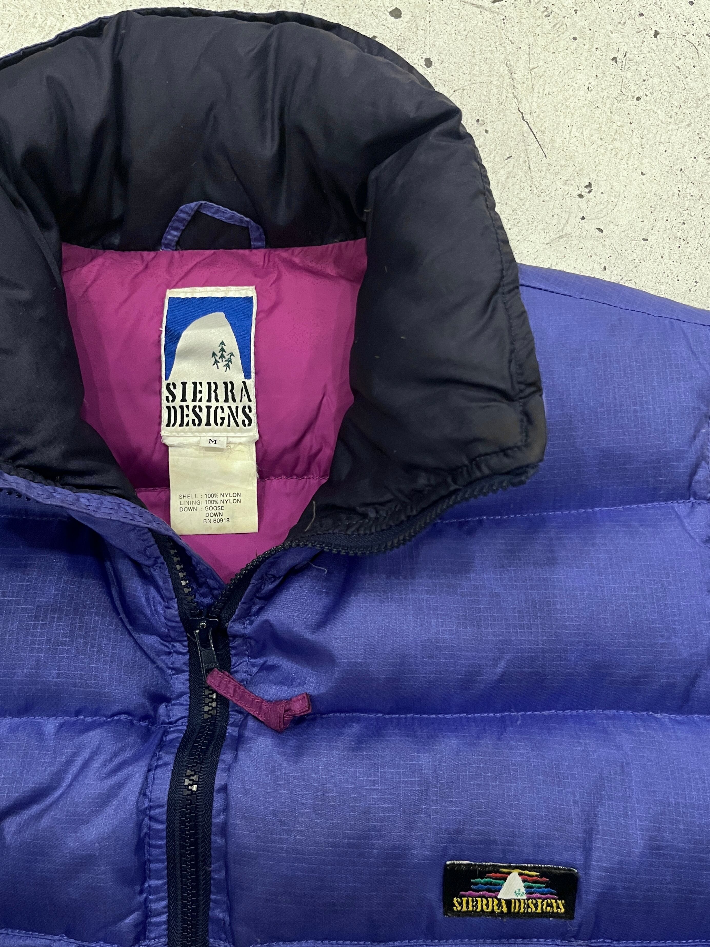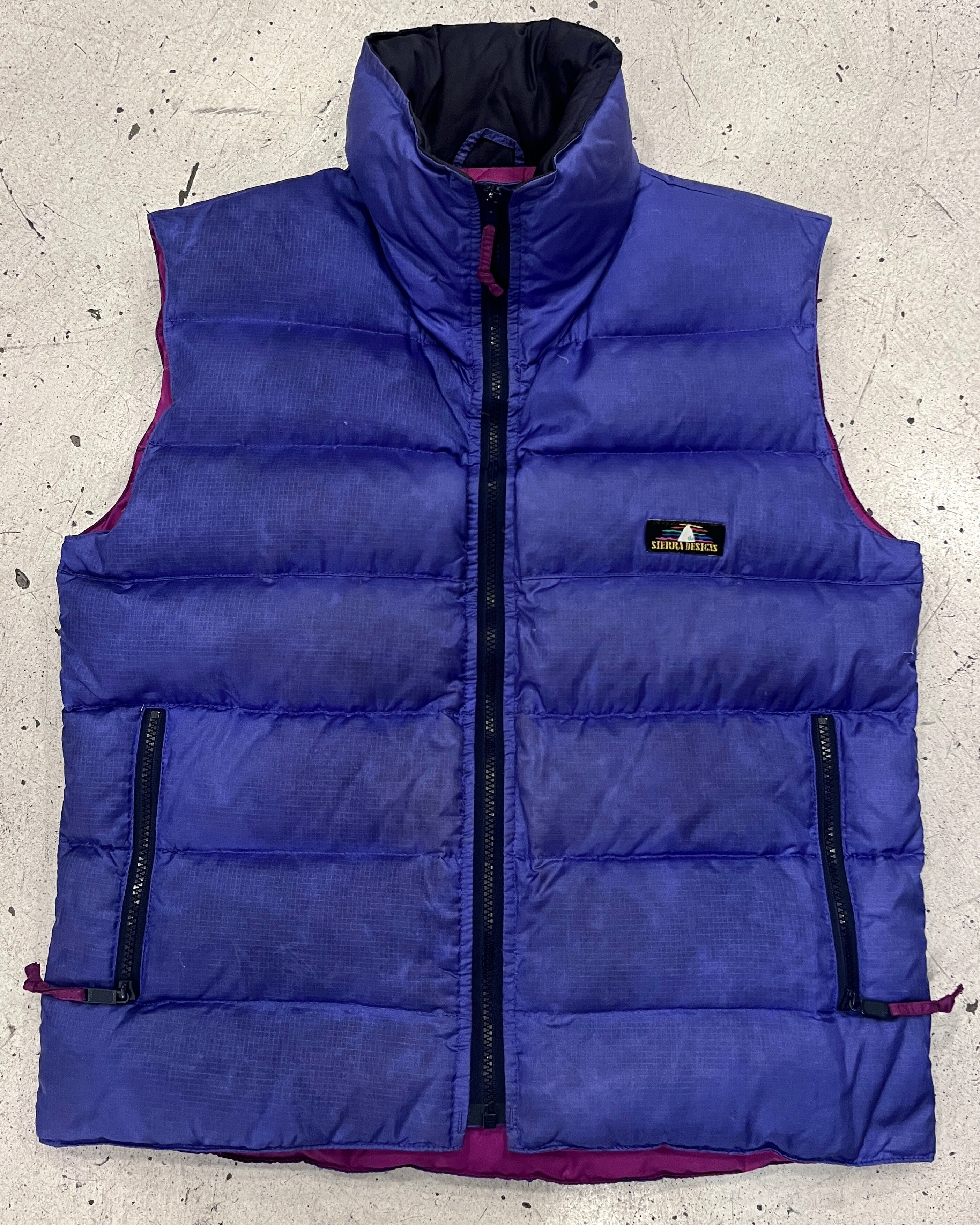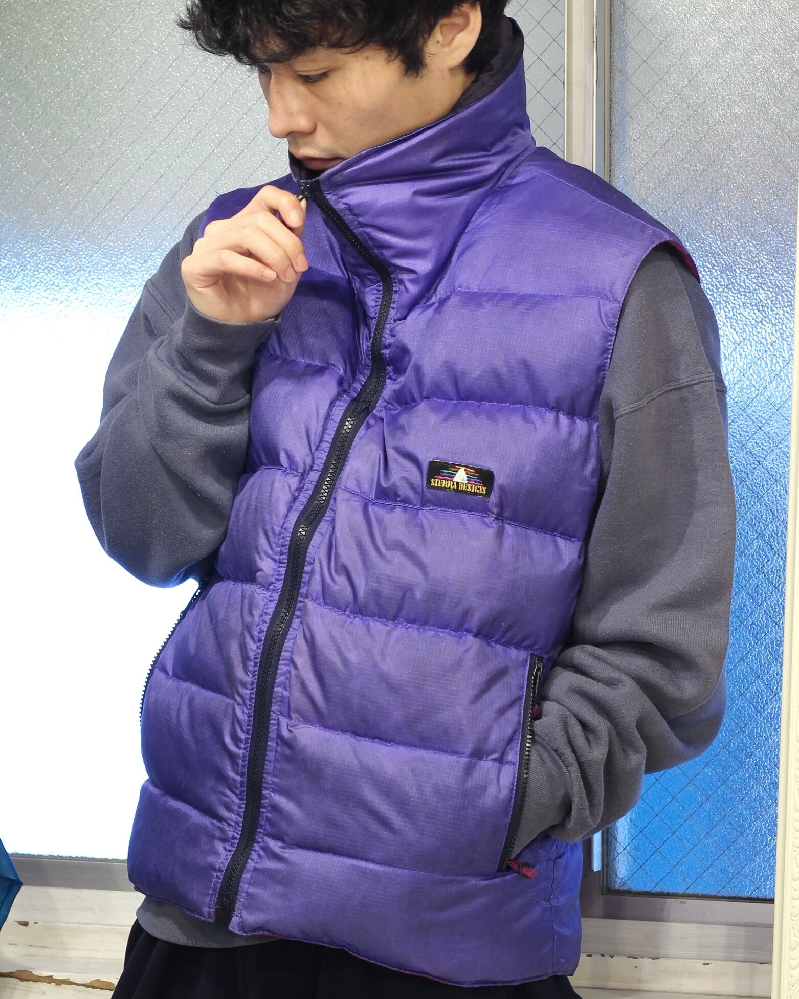 オールドのアウトドアブランド味のある良い発色の紫カラーとグースダウンのしっかりとした機能性、高めな首周りとらしさあふれるSierraのダウンベスト。