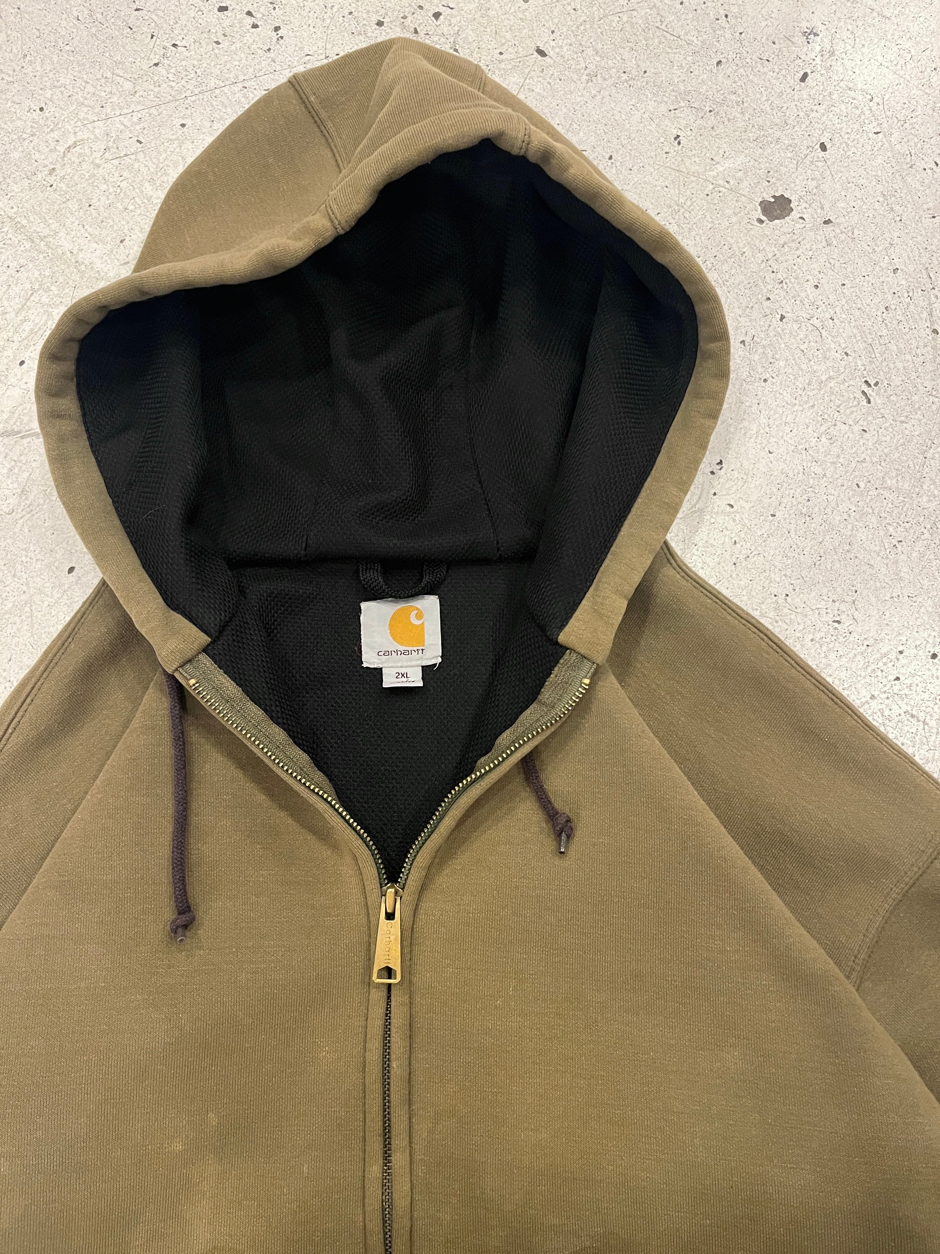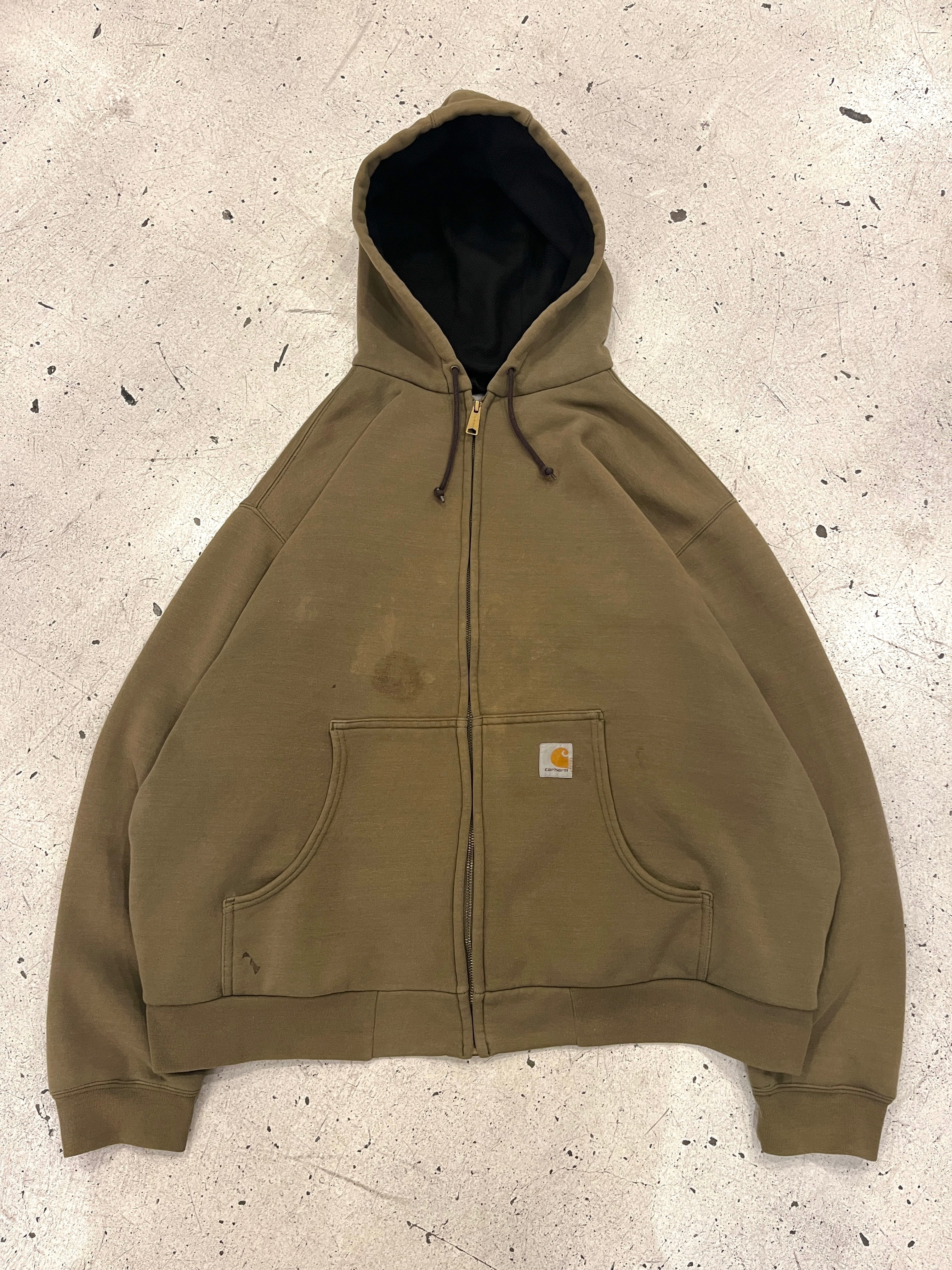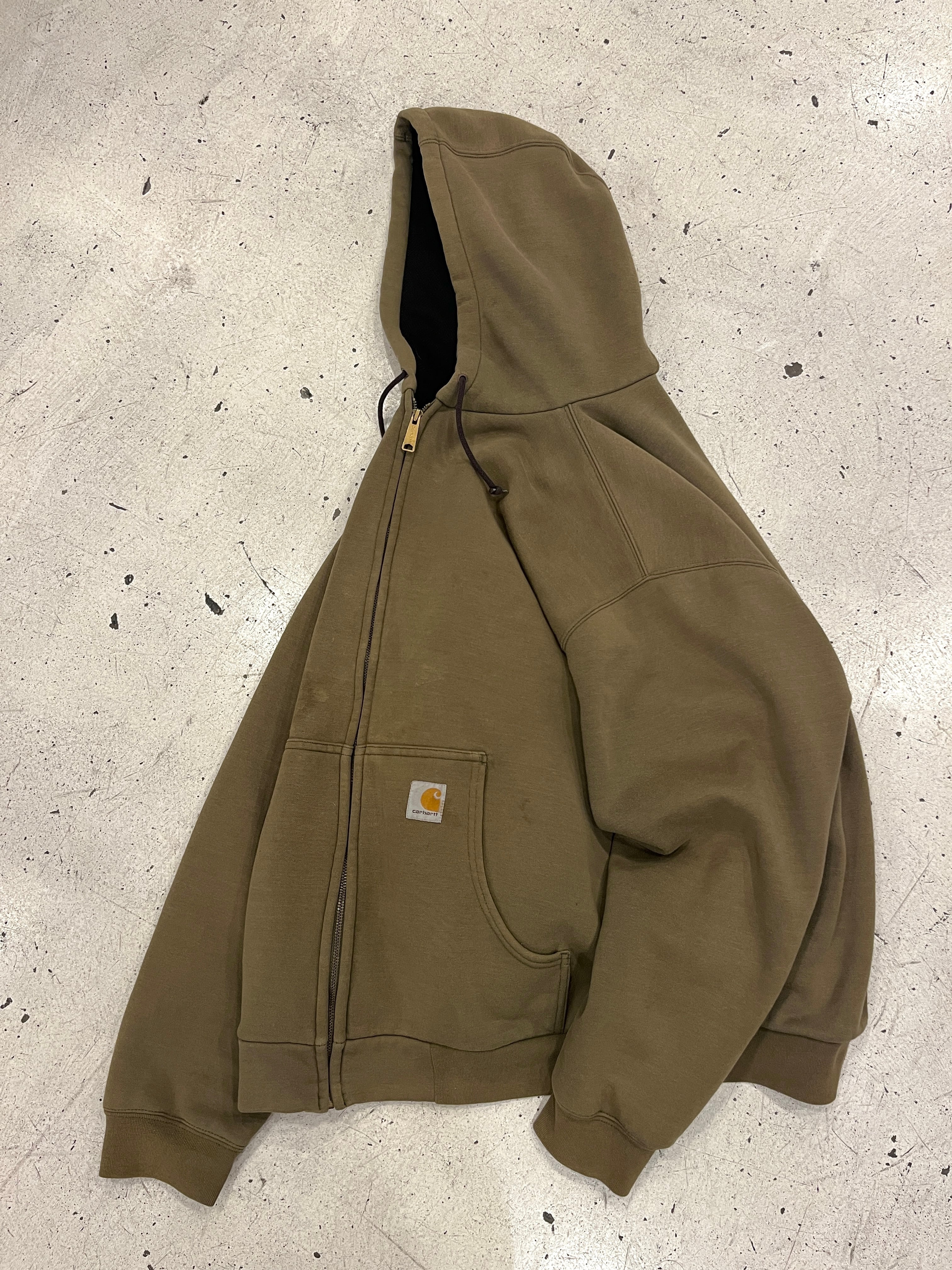 絶妙なカーキカラーのスウェットのアクティブジャケット