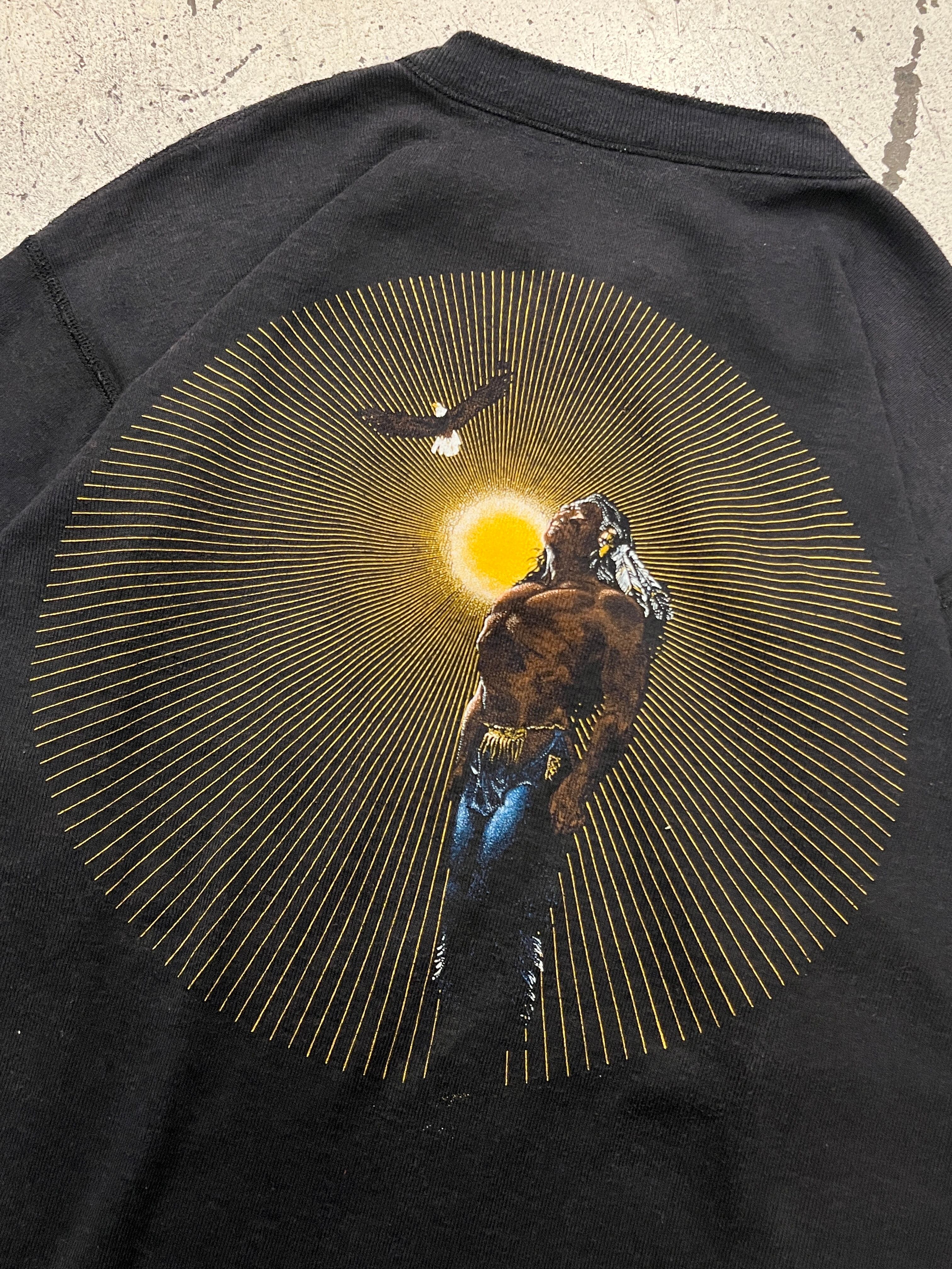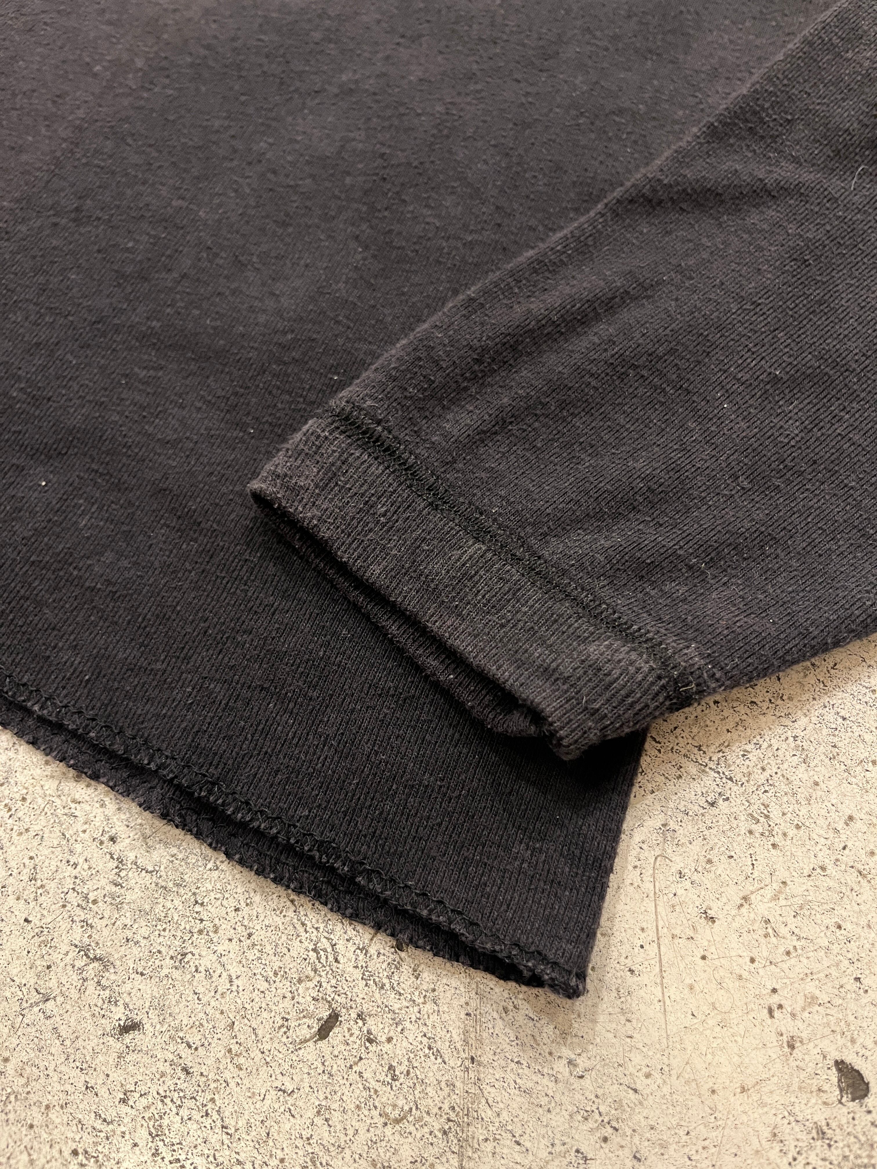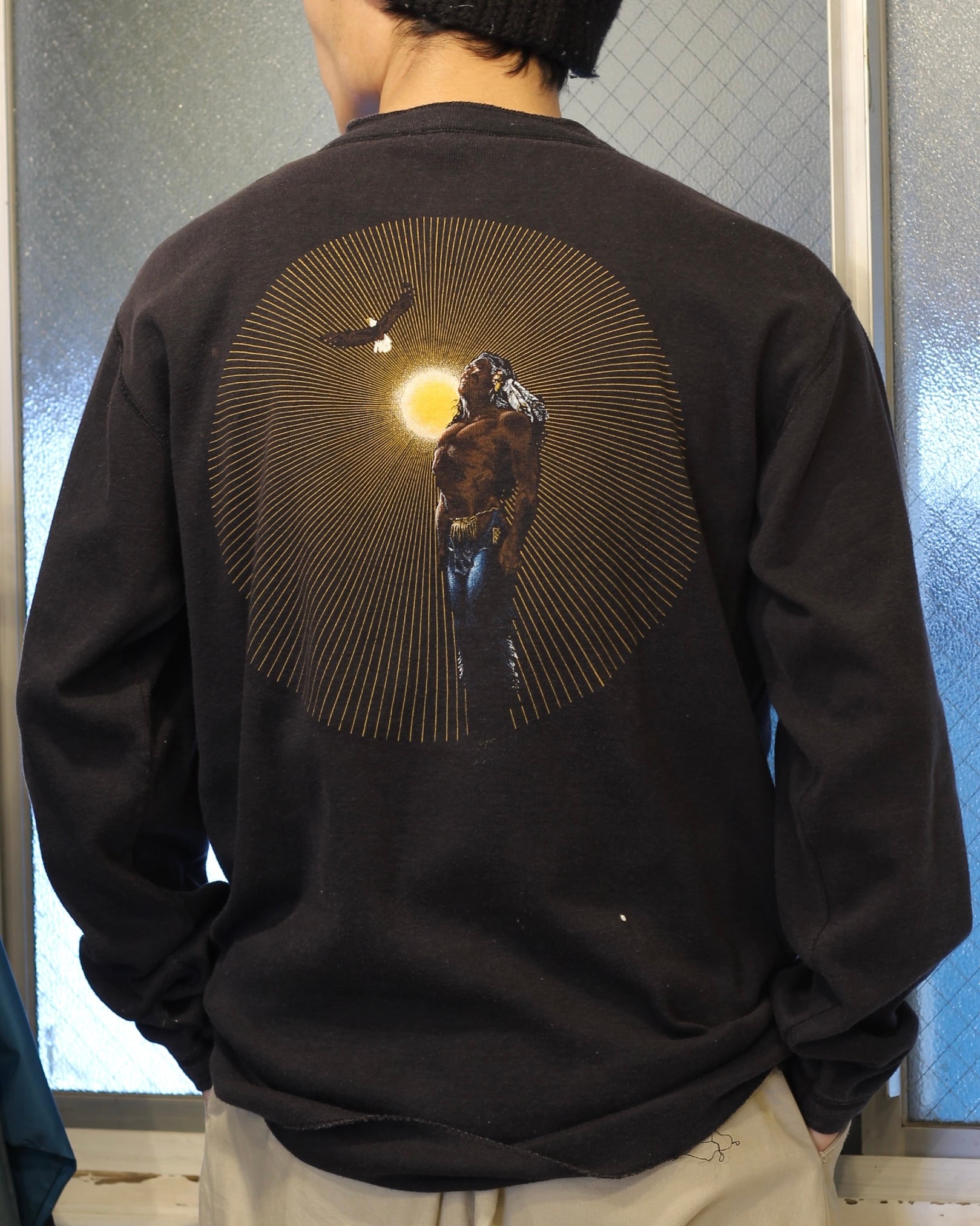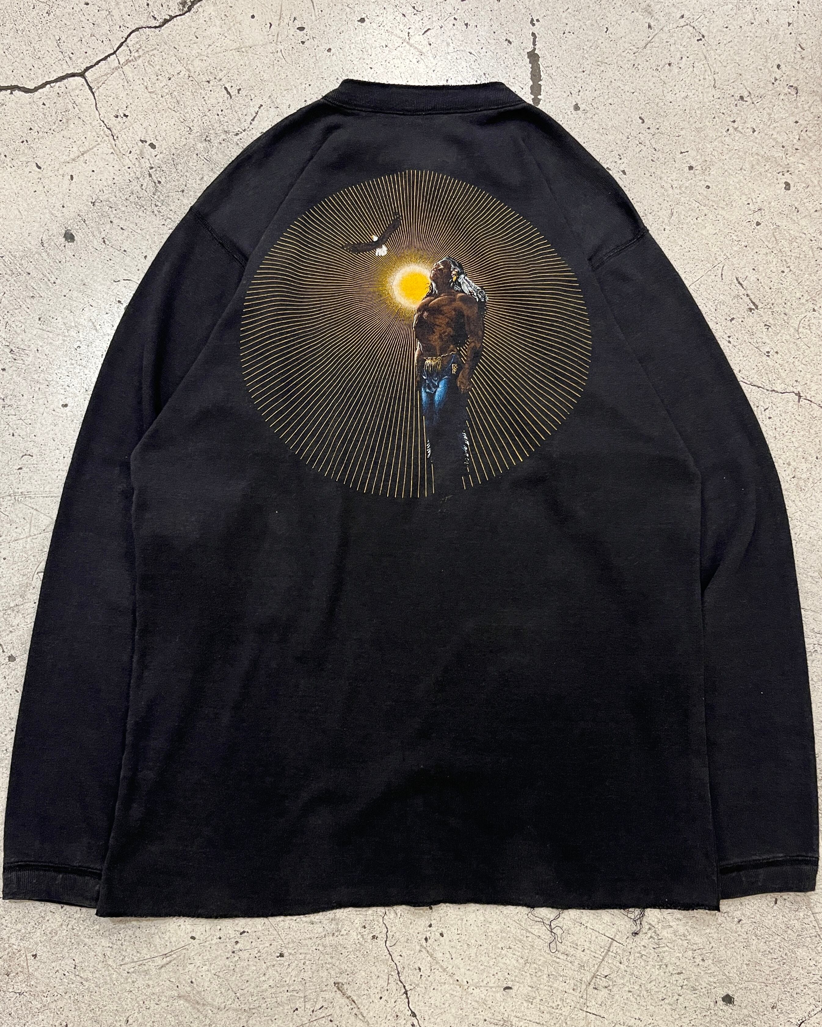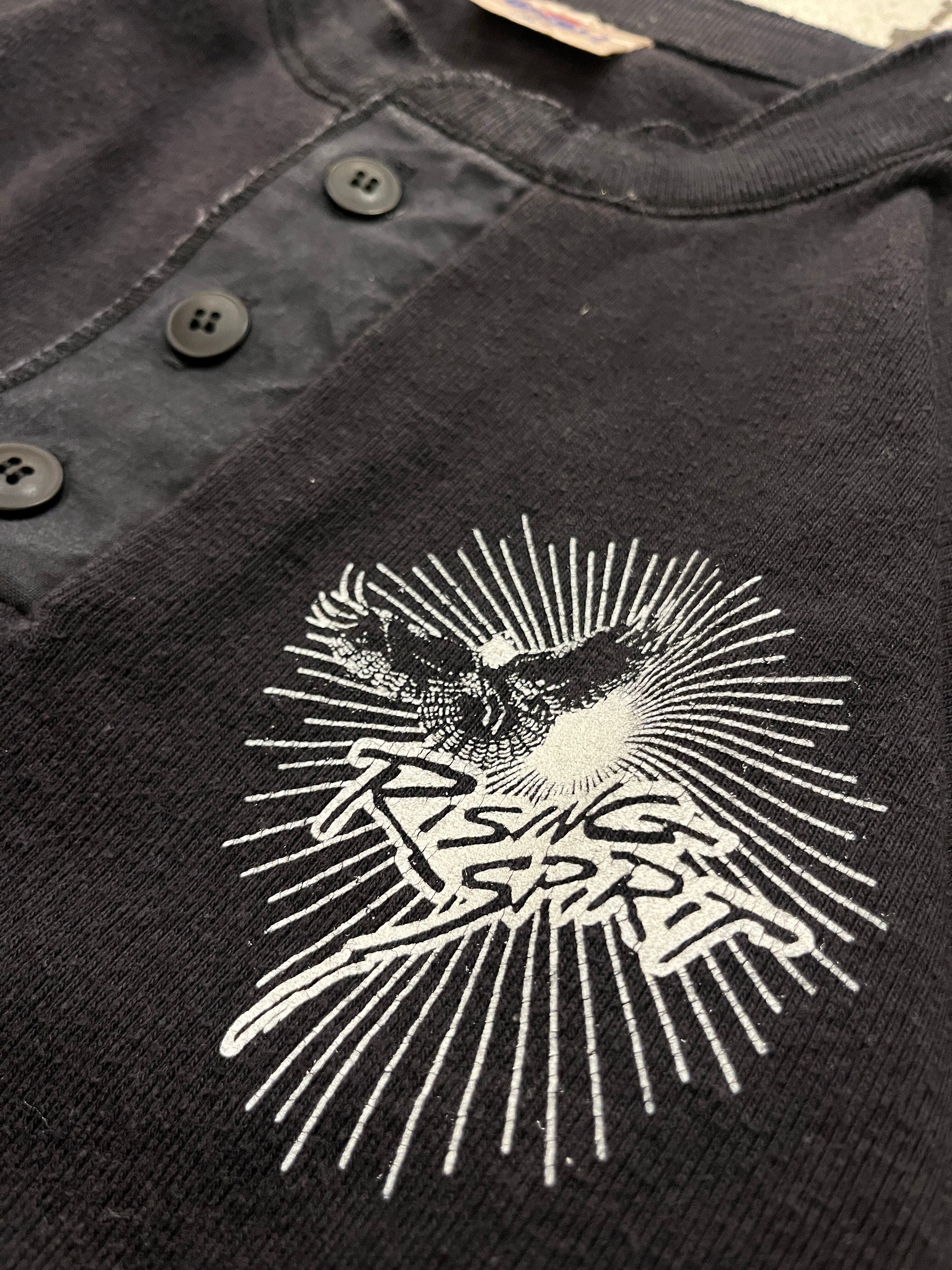 90's BUFFALO o/p&back print henry neck heavy cotton l/s tee