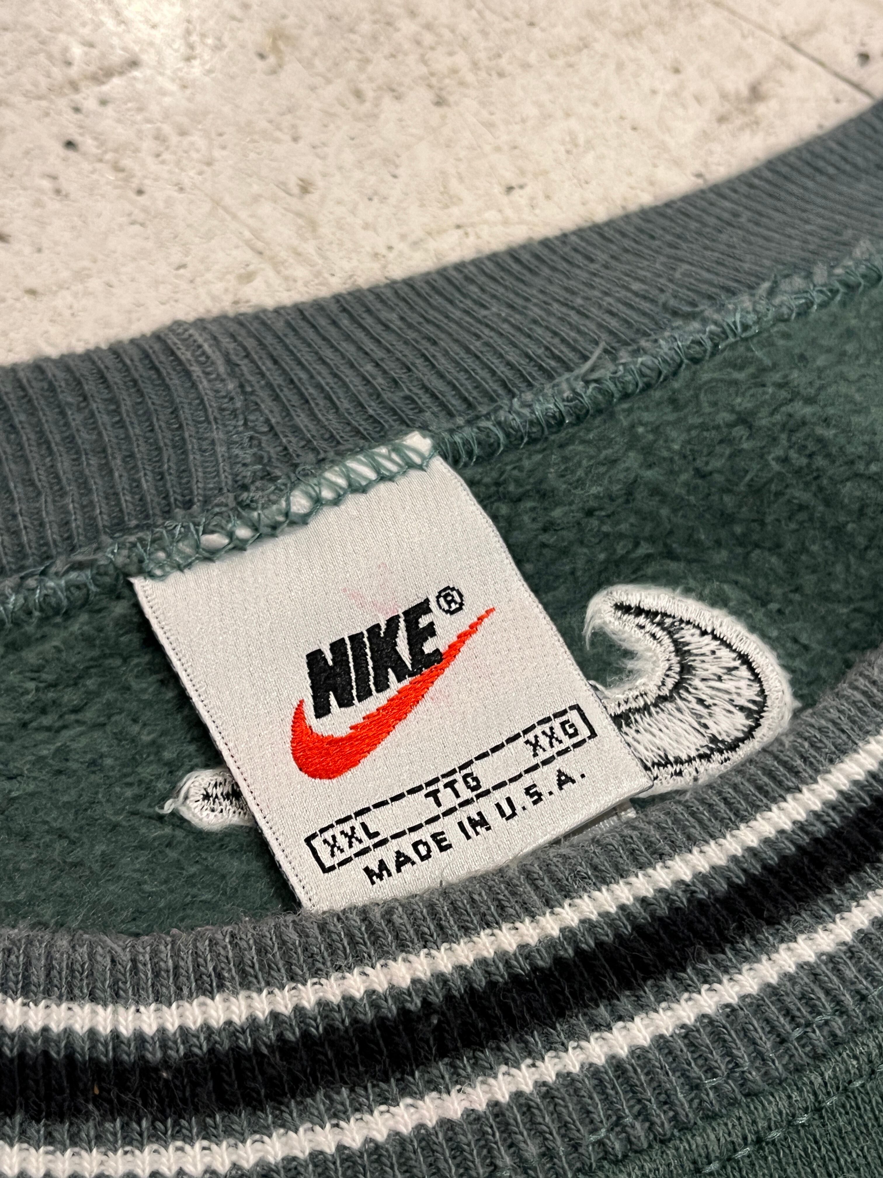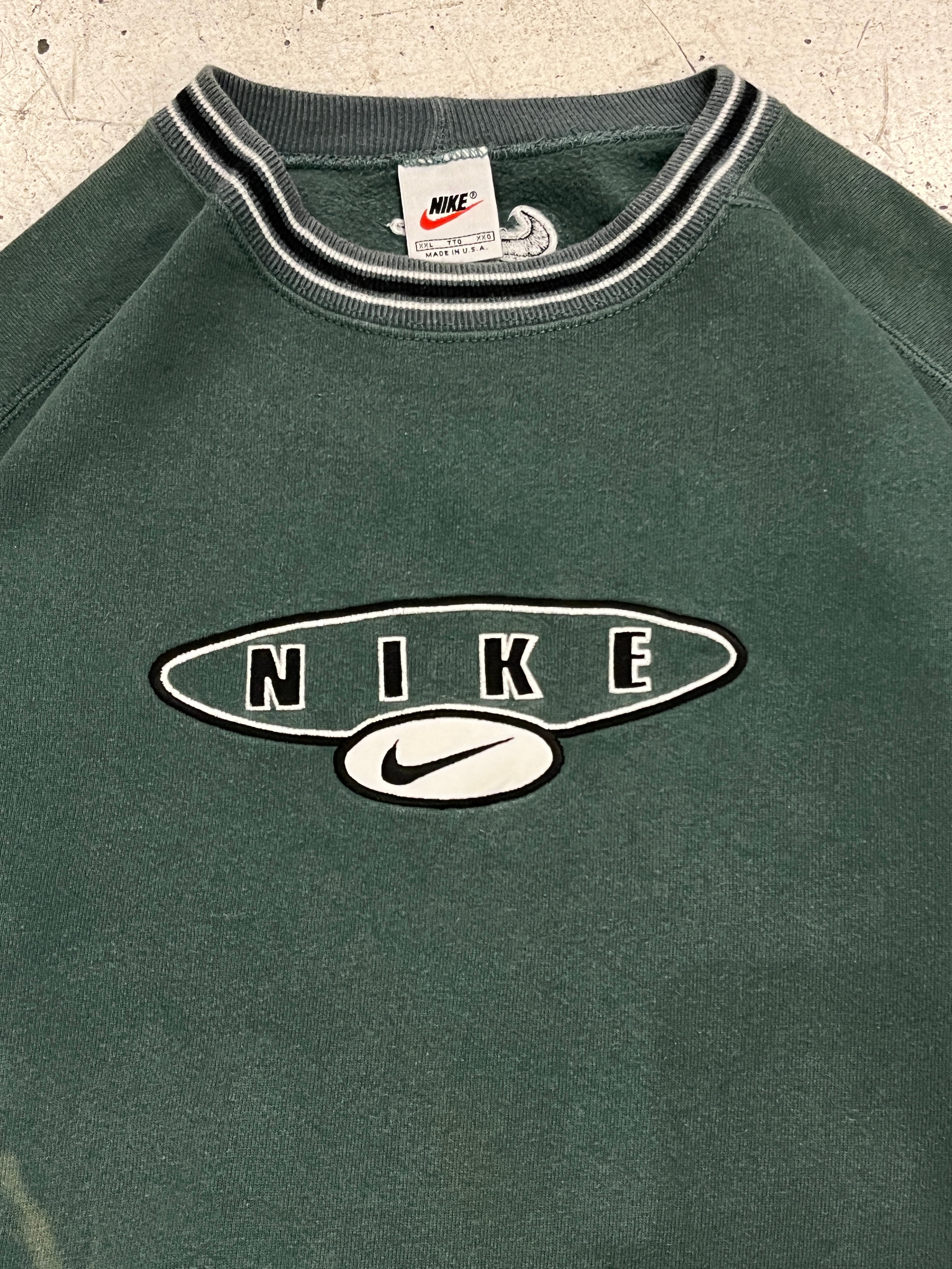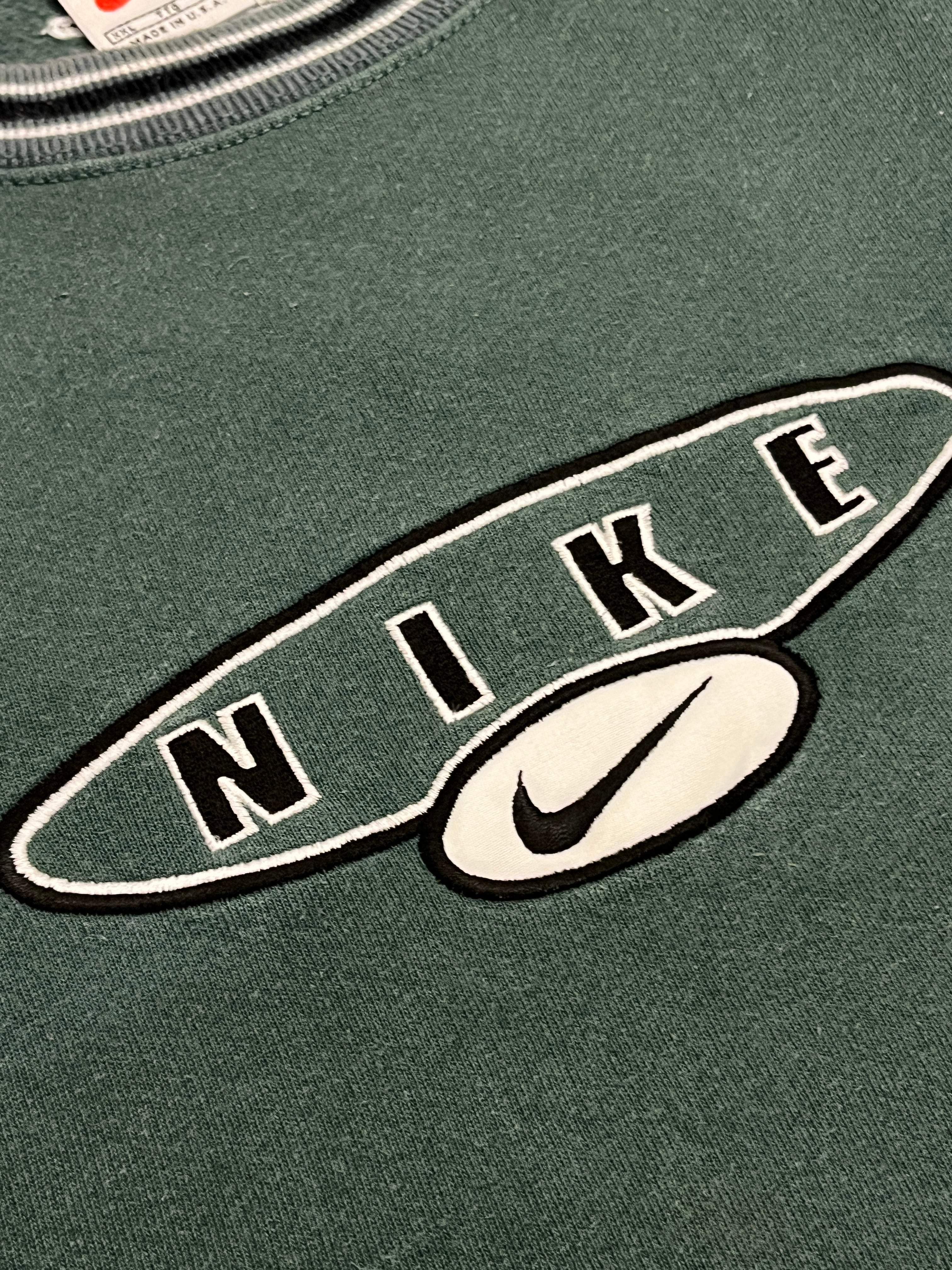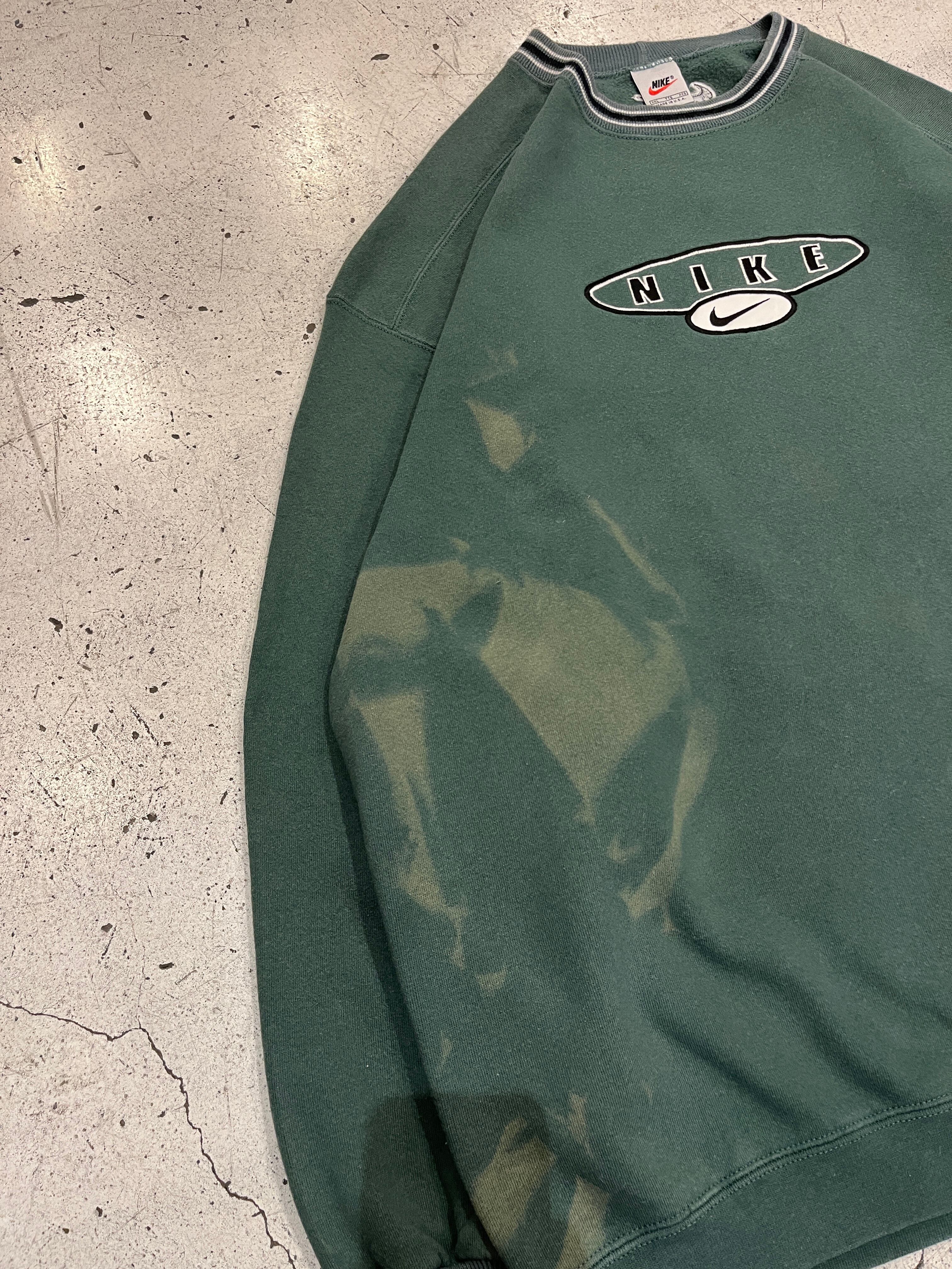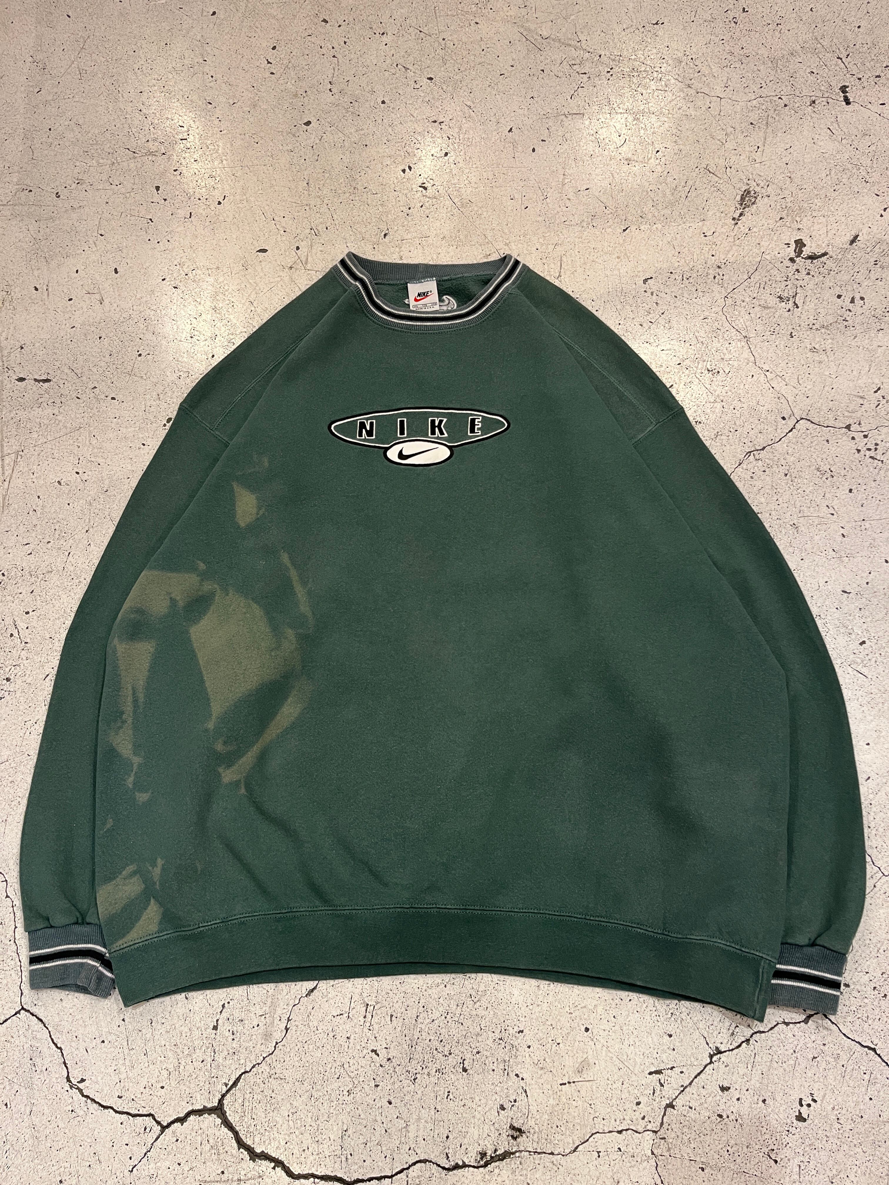センターに小ぶりなNIKEの文字とスウォッシュロゴが刺繍されたグッドデザインに所々激しめなサンフェードが見られる個性的なold NIKEのスウェット。