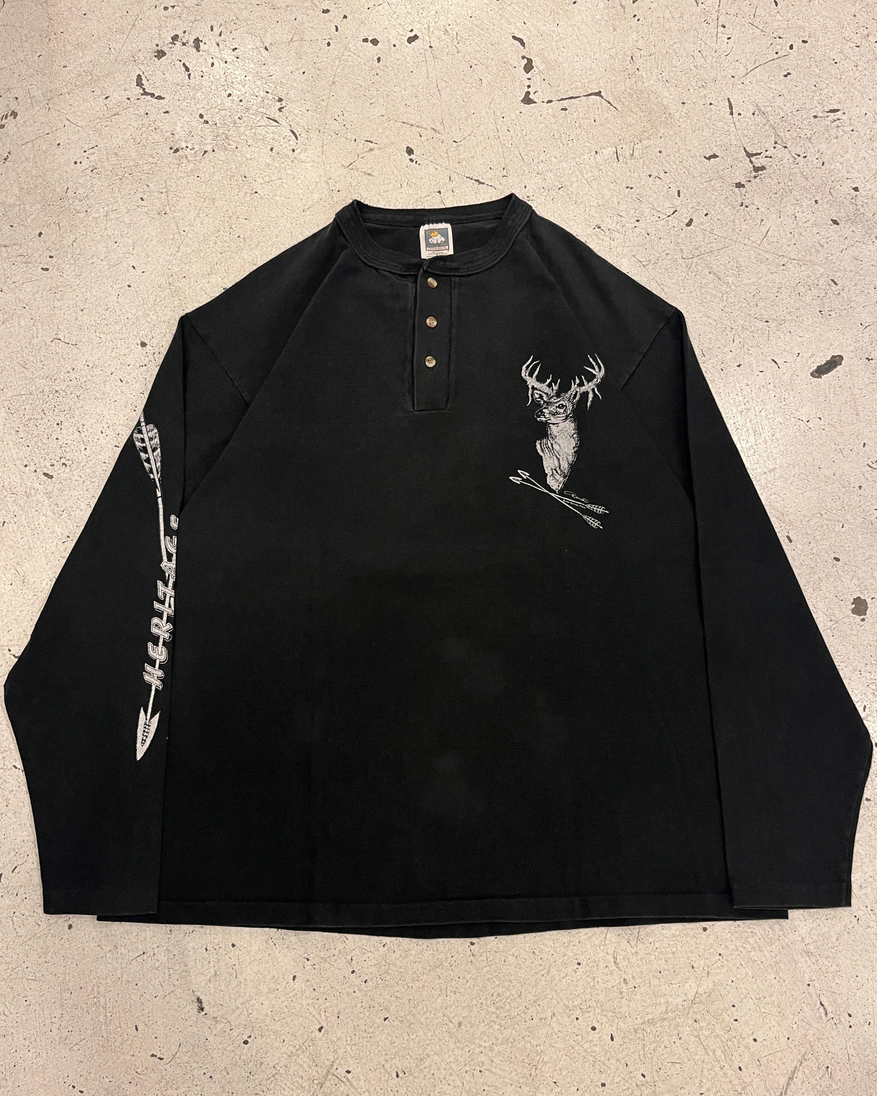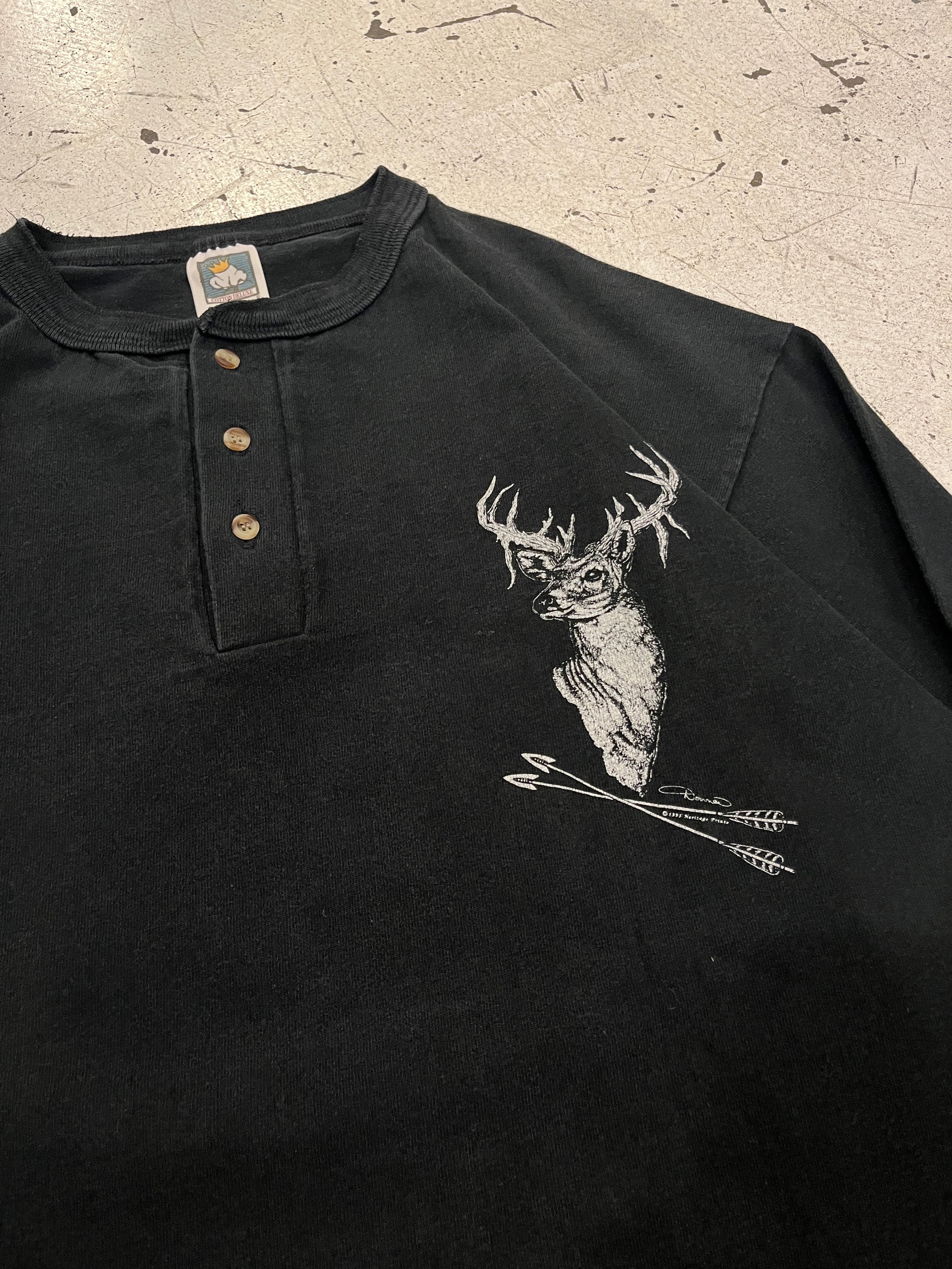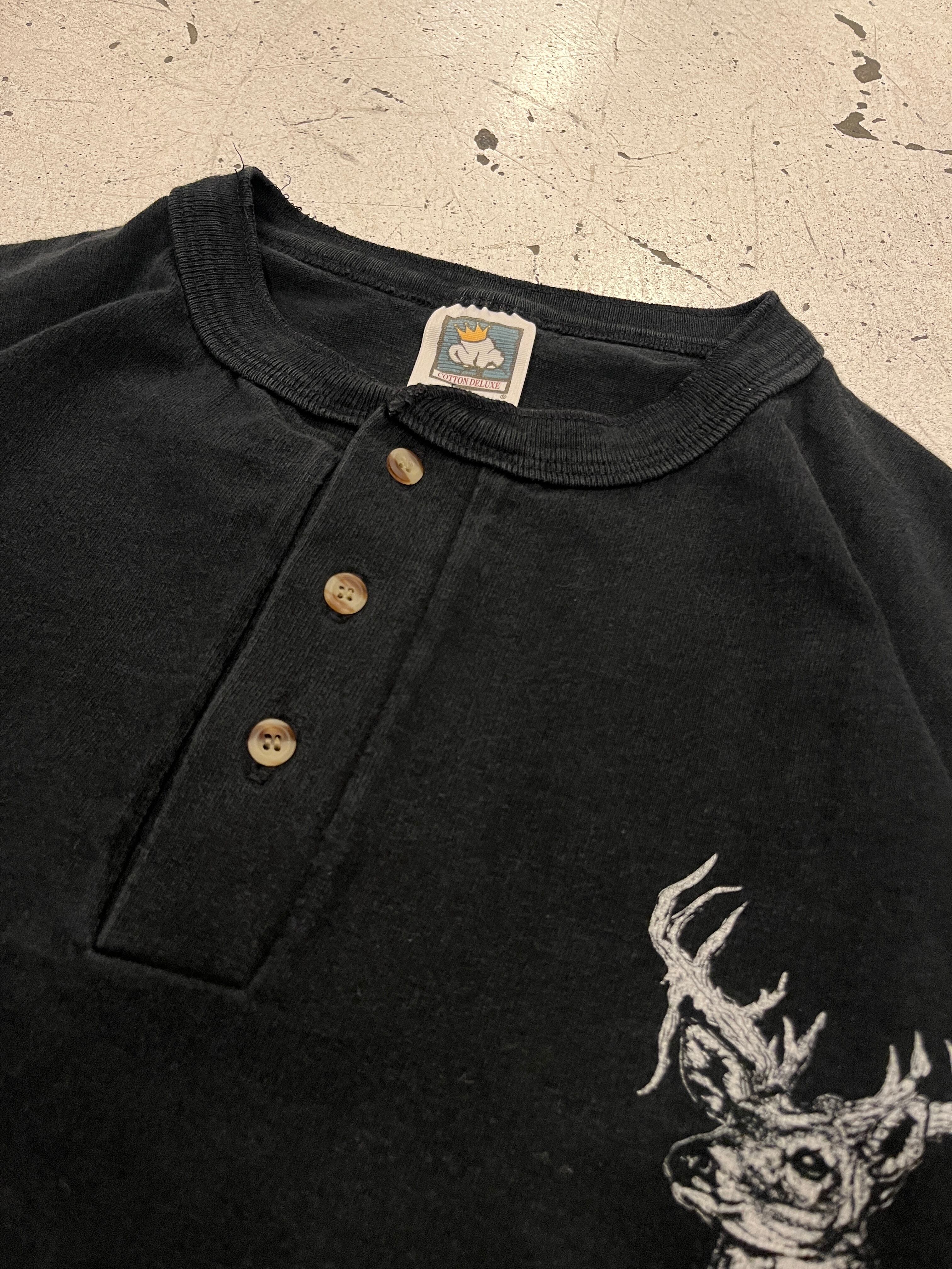 90's old COTTON DELUXE henry neck print l/s tee