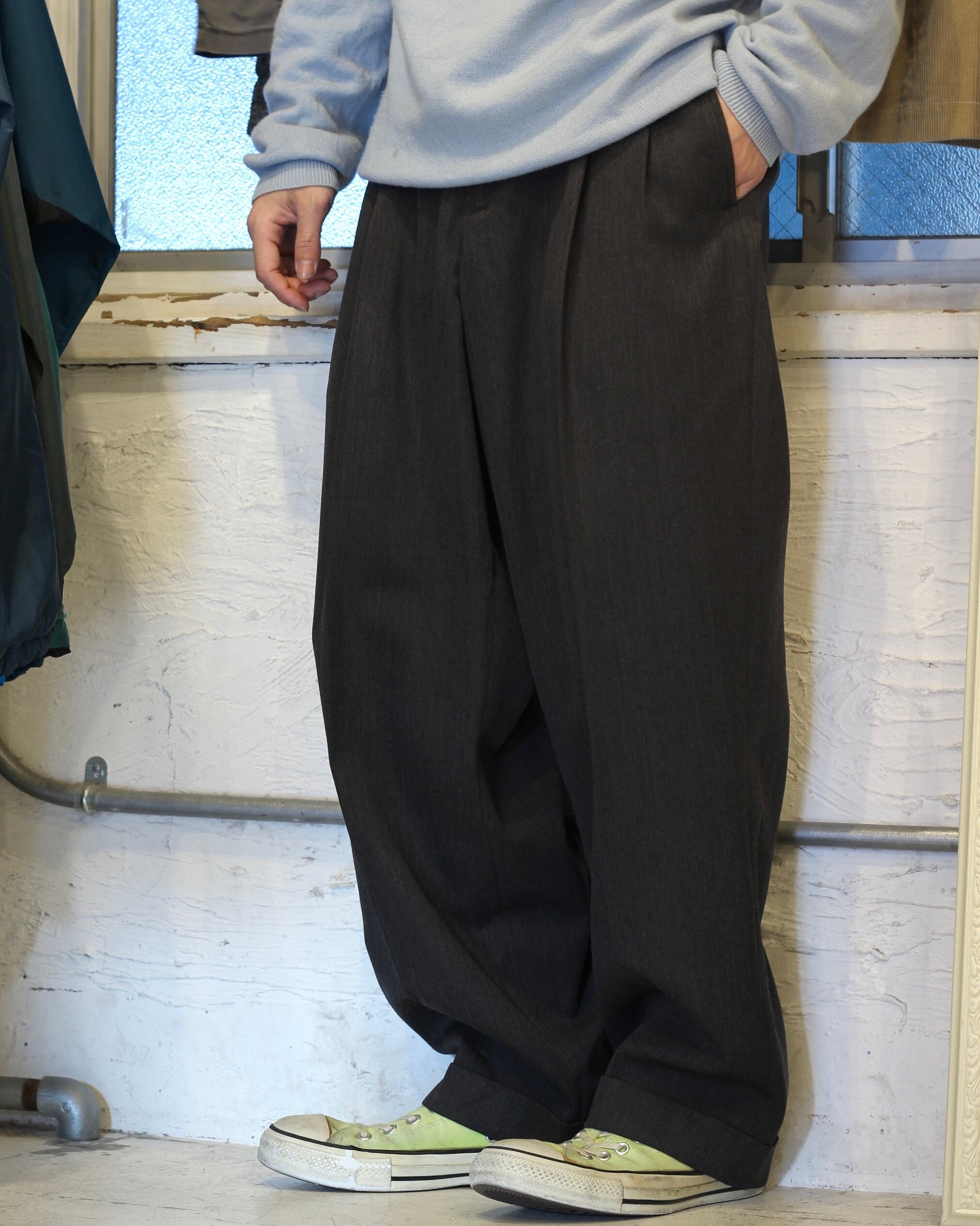 長い季節履ける毛羽立ちの少ないサマーウールのワイドスラックス