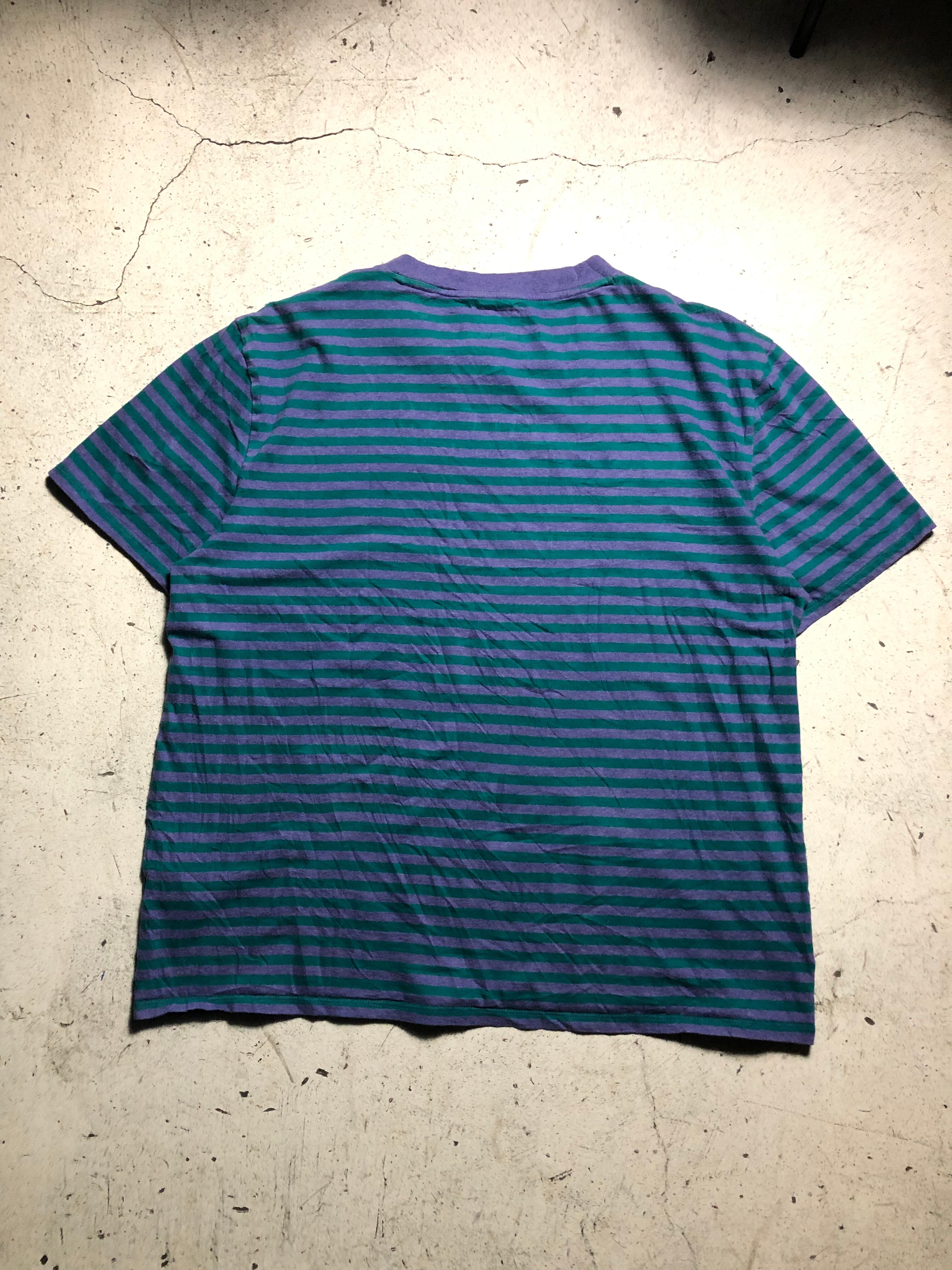 青×紫のマルチボーダー最近巷では、ユーロミリタリーのマリンボーダーなどボーダーのバスクシャツなど横縞のアイテムが注目されてれていますが、デイリーな着こなしにはマルチボーダーの方が優れていると感じます。