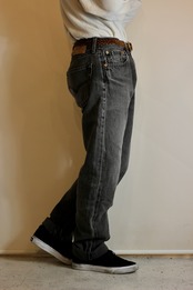 全体的に色落ちのしておりますが、古着のブラックデニムとしてはまだまだ履いて頂けるコンディションです。