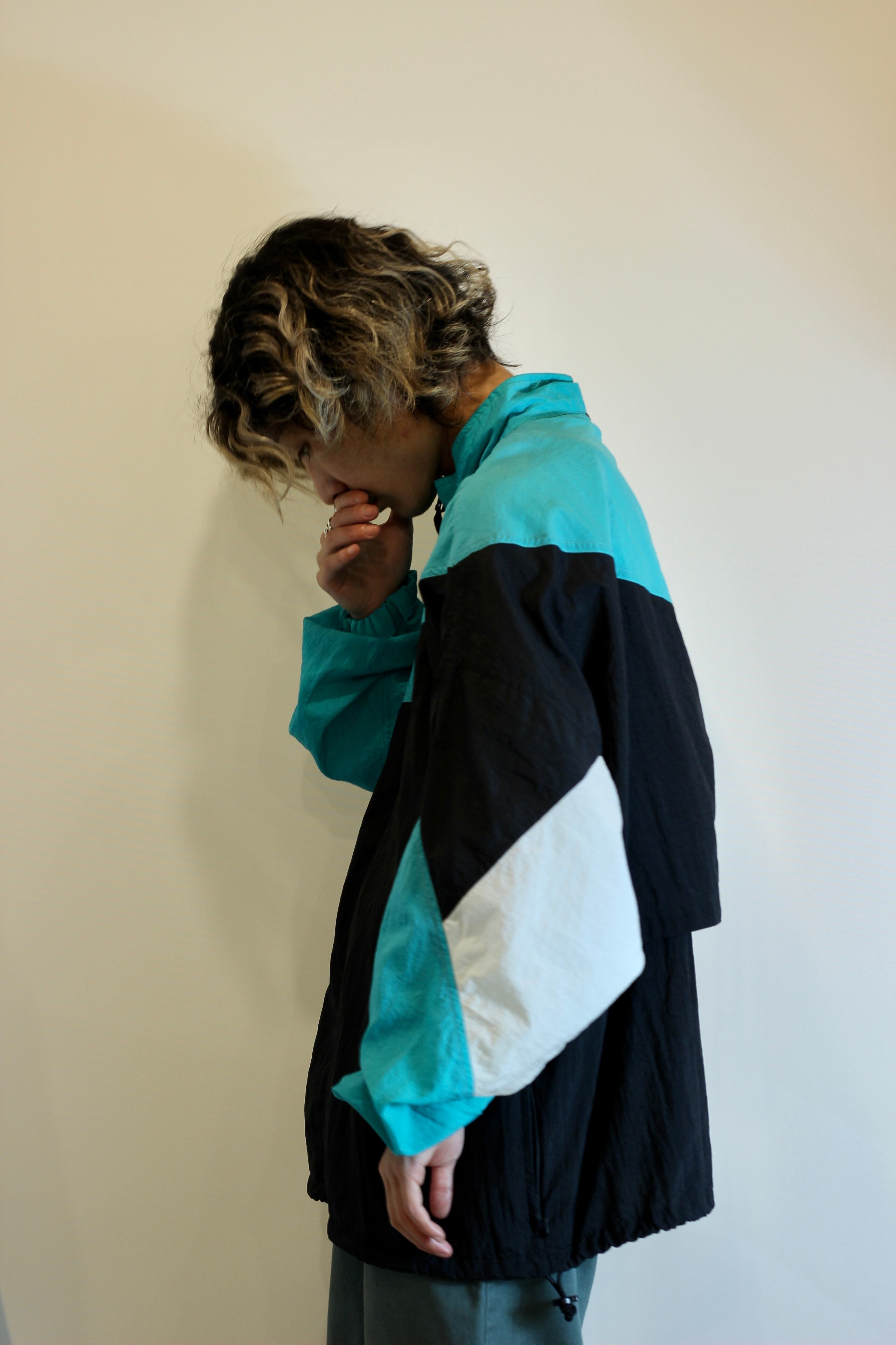 90'sらしい独特な色味と切り替えのデザインが光るアイテム。