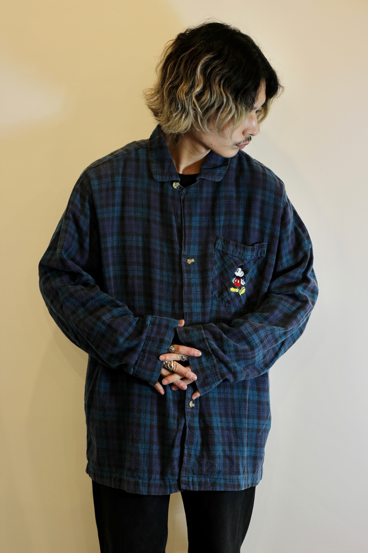 チェックでも特段人気のあるブラックウォッチにミッキーが刺繍されたディズニー公式タグのスリーピングシャツになります。