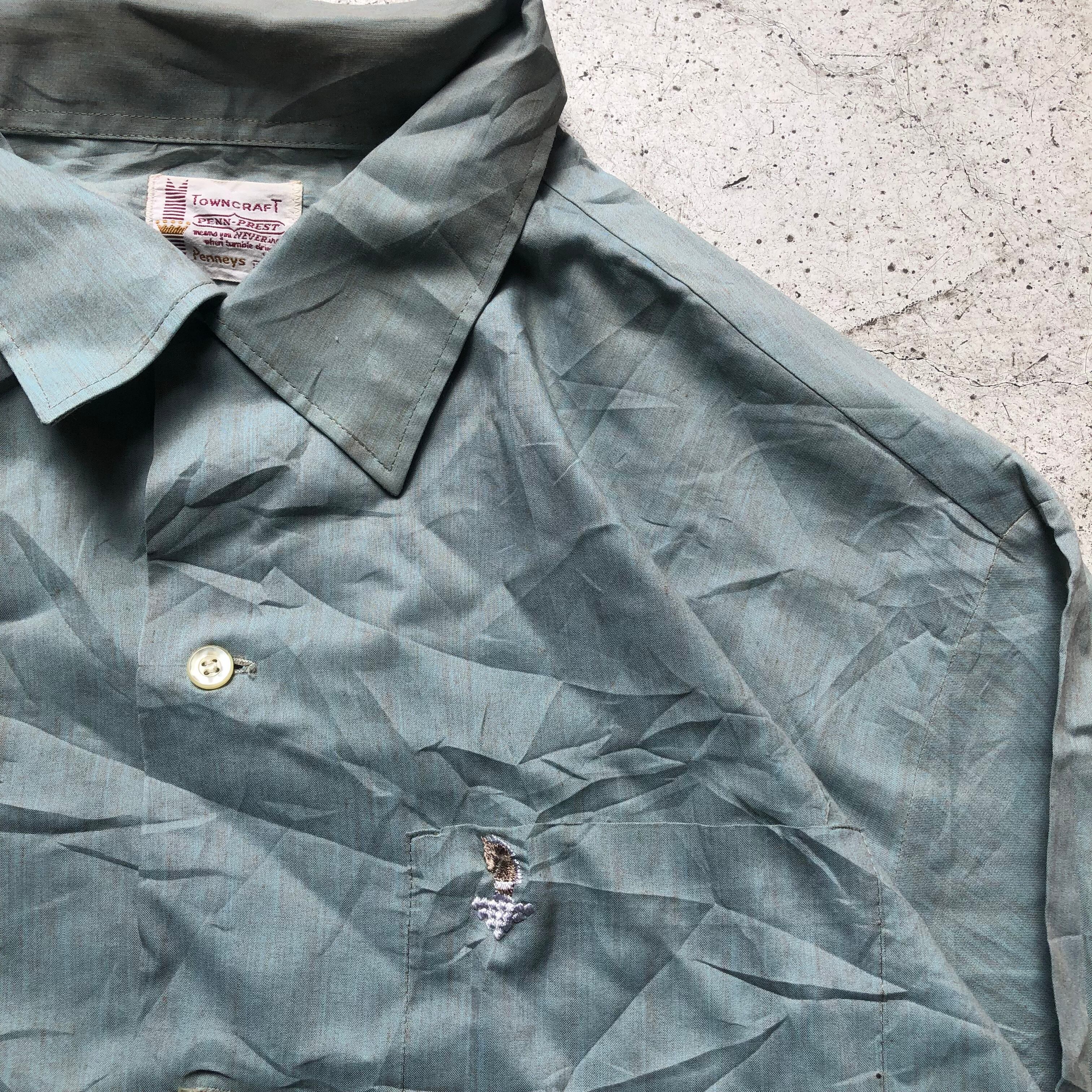 60〜70's TOWNCRAFT poly cotton onepoint open collar shirt