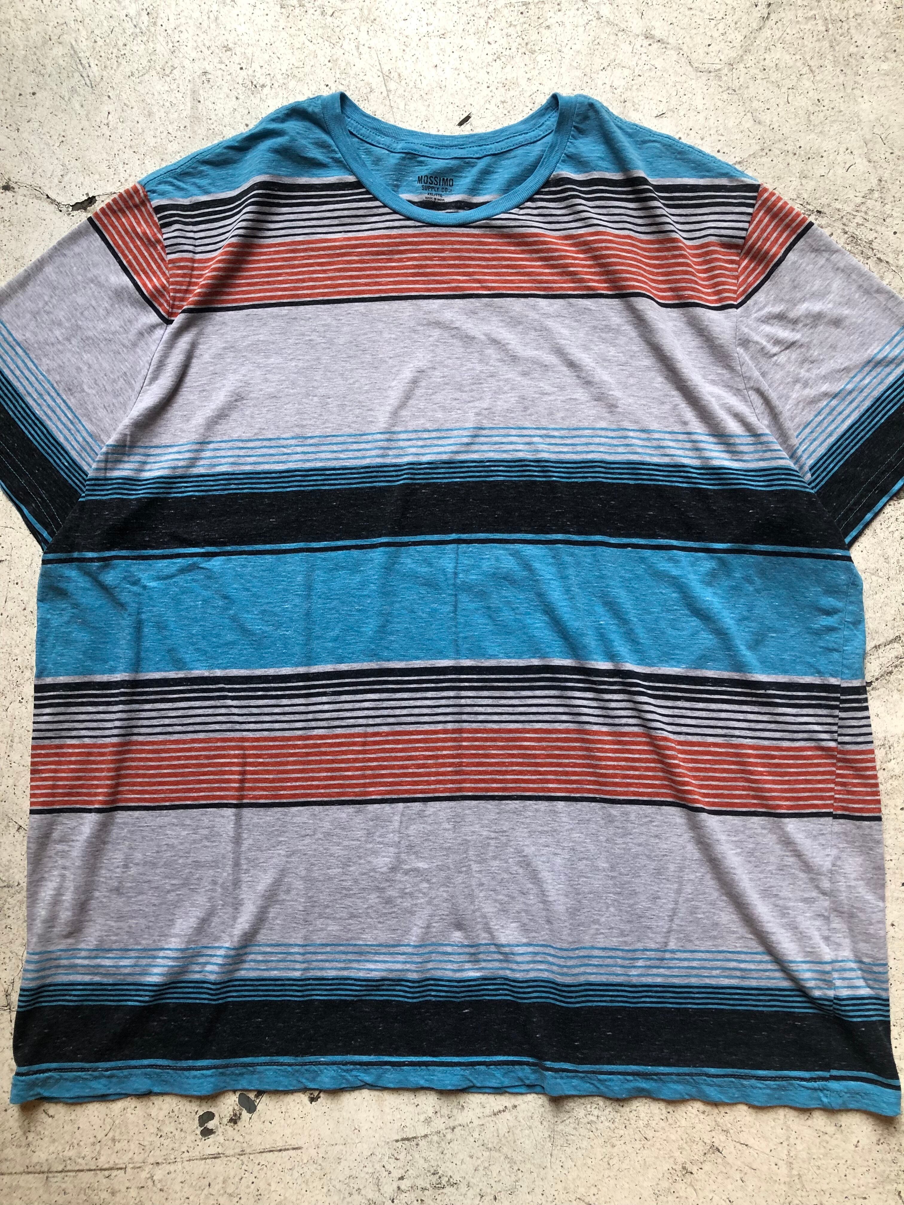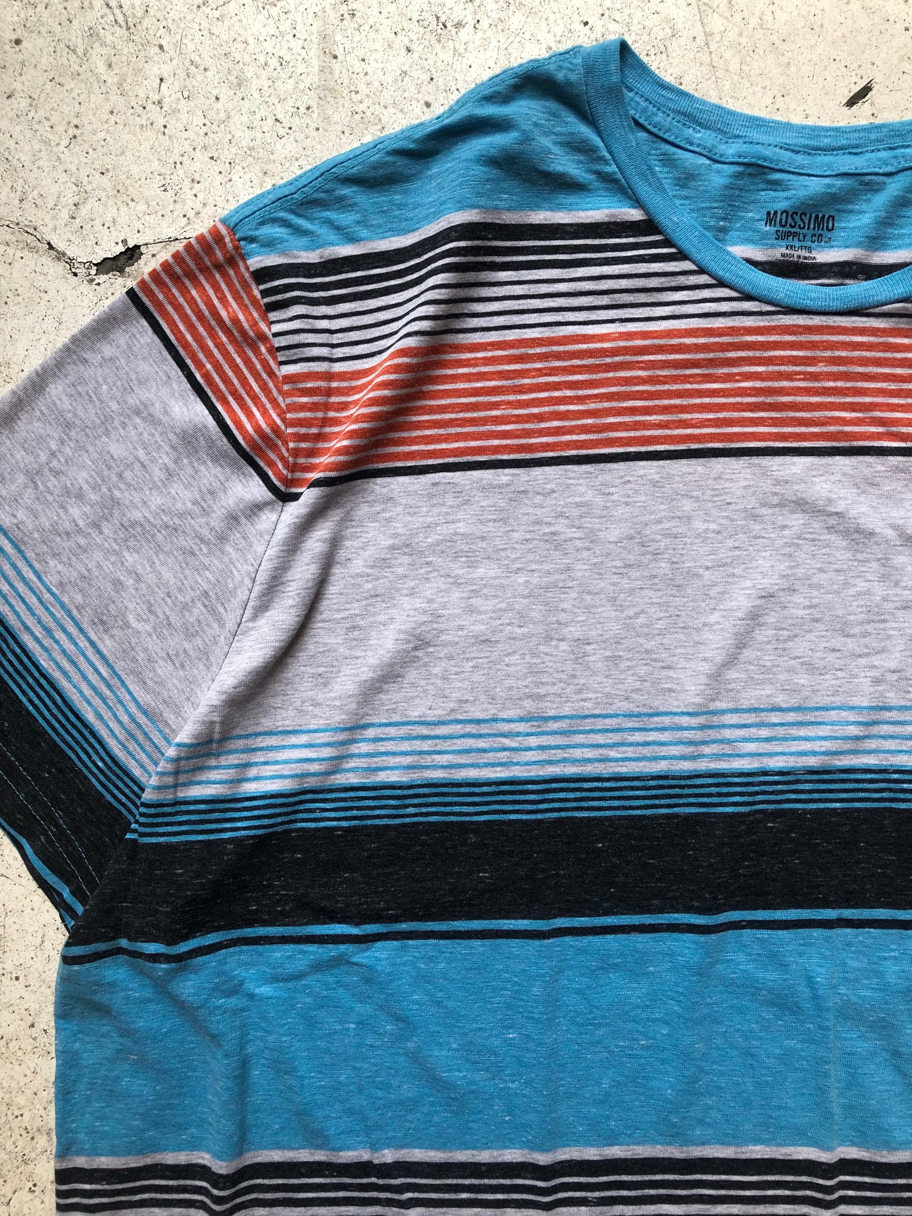 グレーのボディに黒、水色、オレンジの多色ボーダー横縞の配合率もバラバラなマルチボーダーになっており非常に扱いやすい圧着となっております。