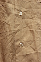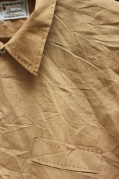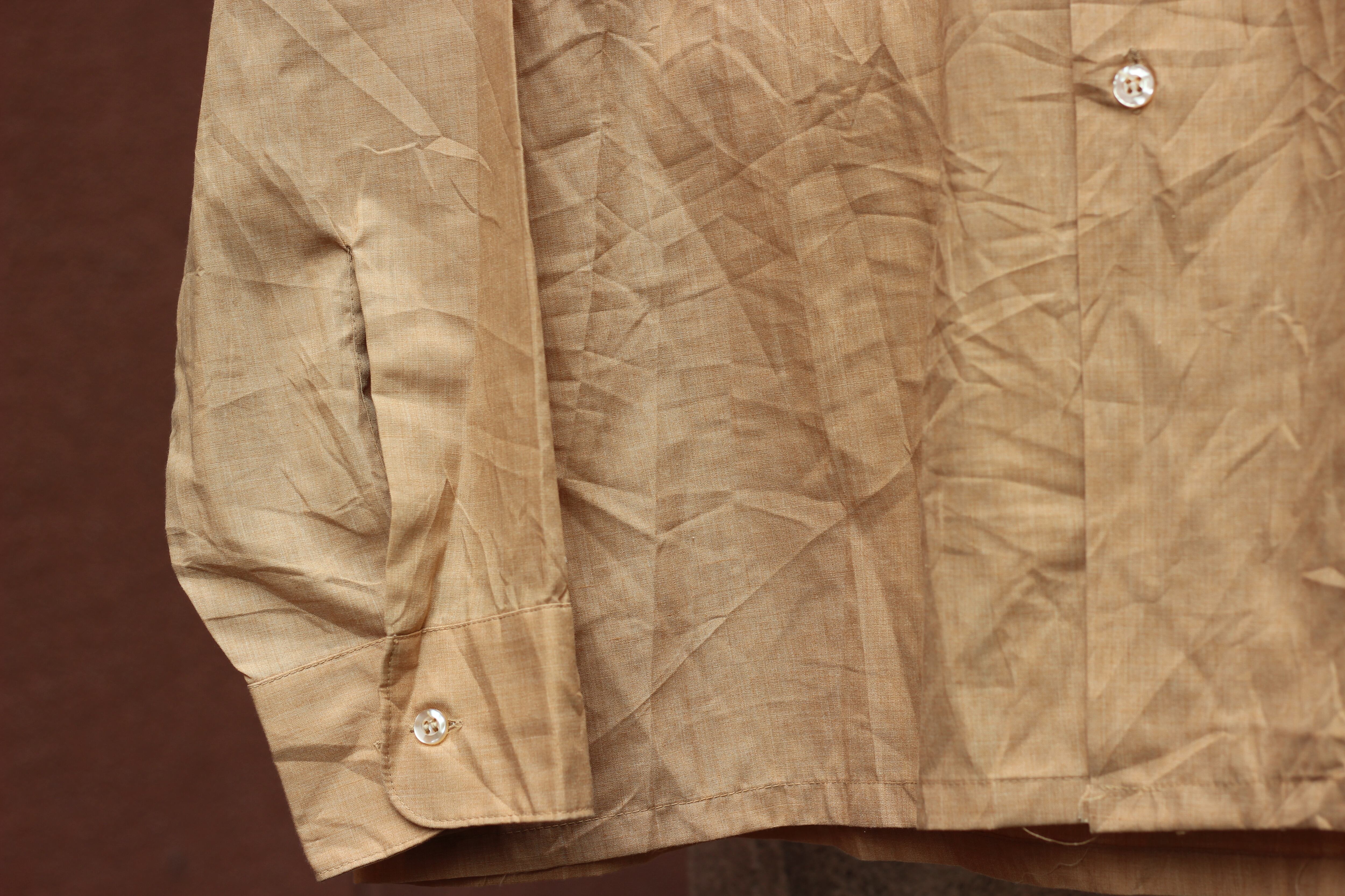 ベージュのボディに同系色のハンドステッチデザインの薄手のシャツ。