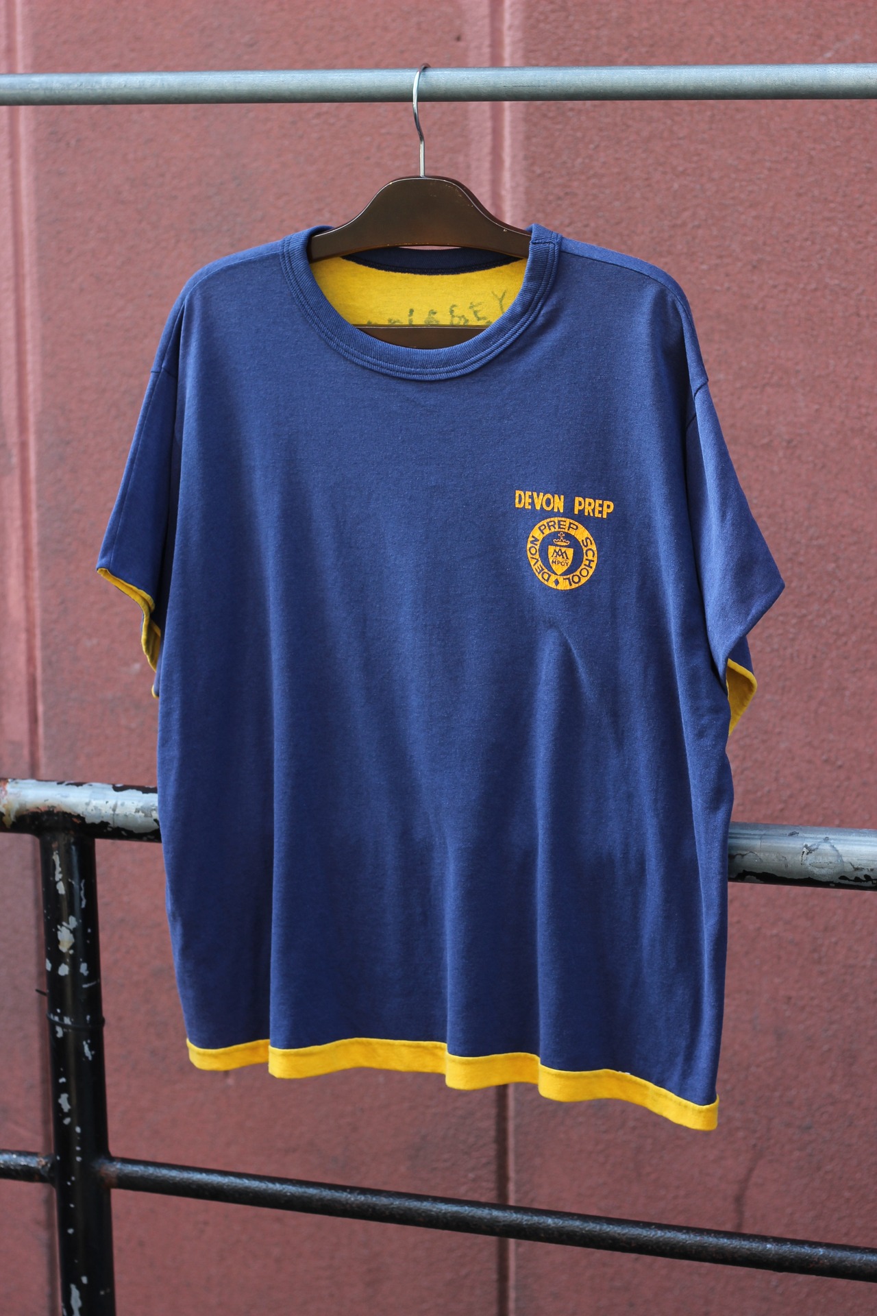 紺色と黄色の高配色ダブルフェイスT shirt裾の黄色と合わせて袖捲りしても良し、裾の黄色を差し色に使っても良しの使い勝手抜群のteeです。