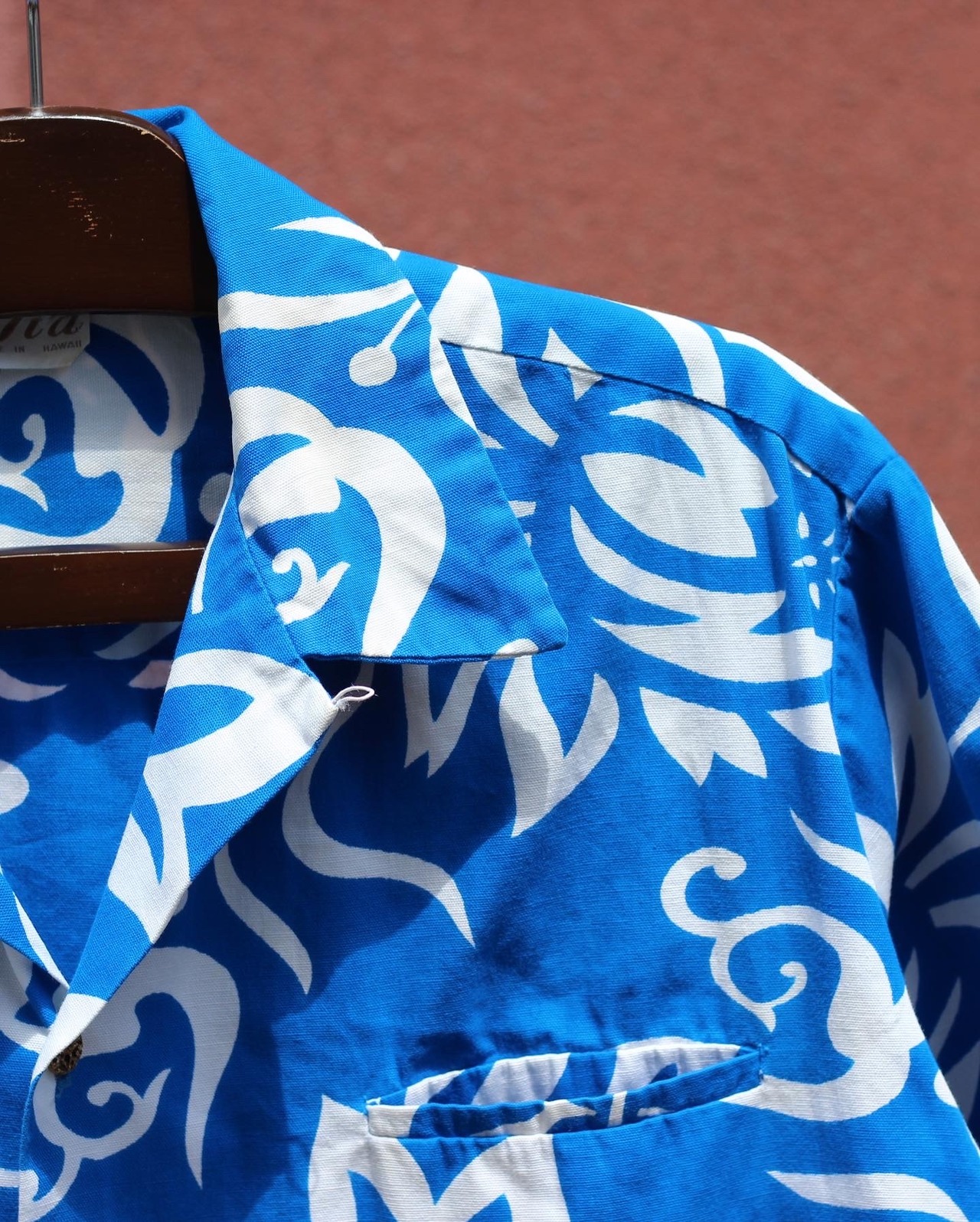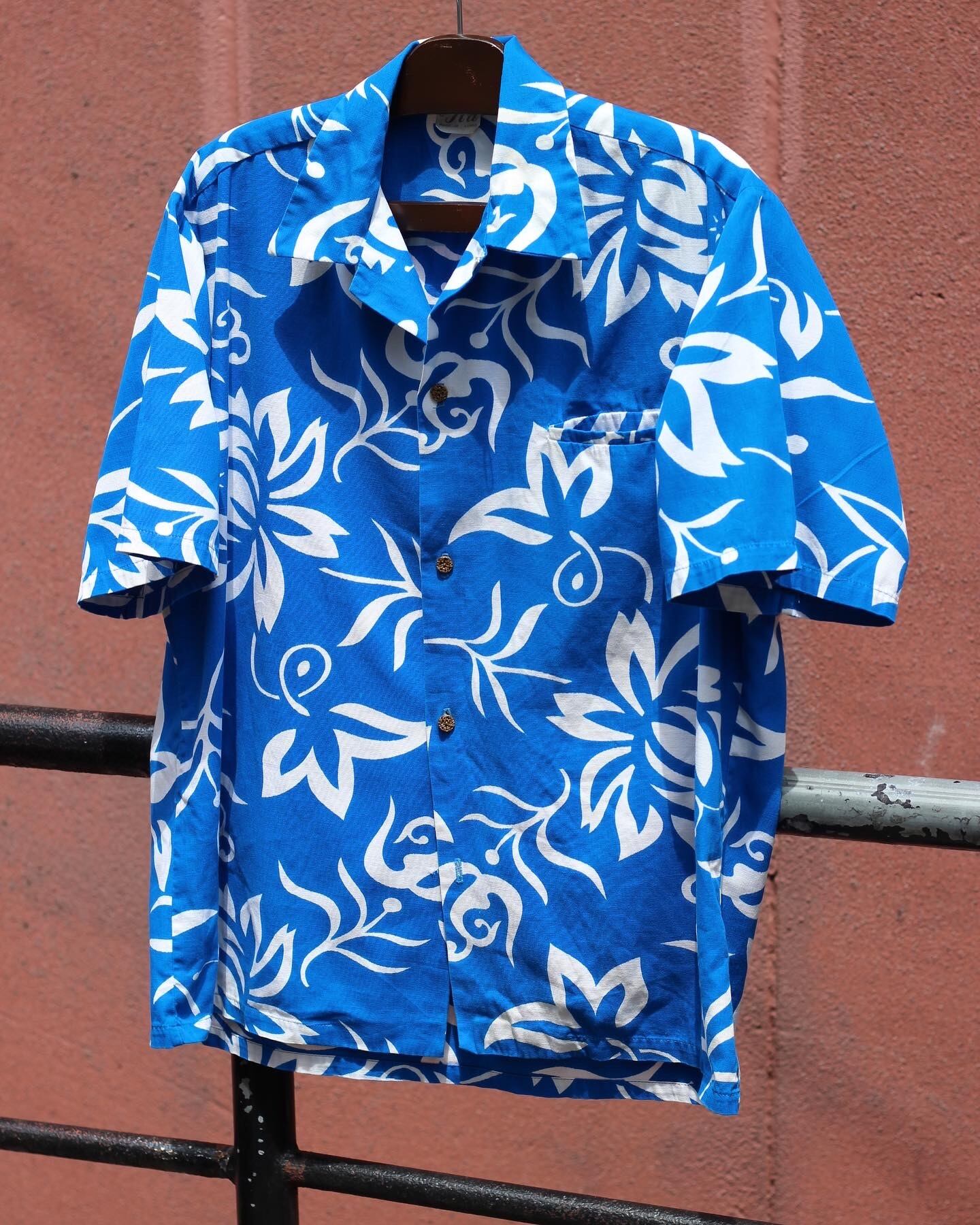 アロハシャツですとレーヨンなどの化繊の素材も見受けられますが、コチラは肉厚のコットンでしっかりとした素材感が特徴です。