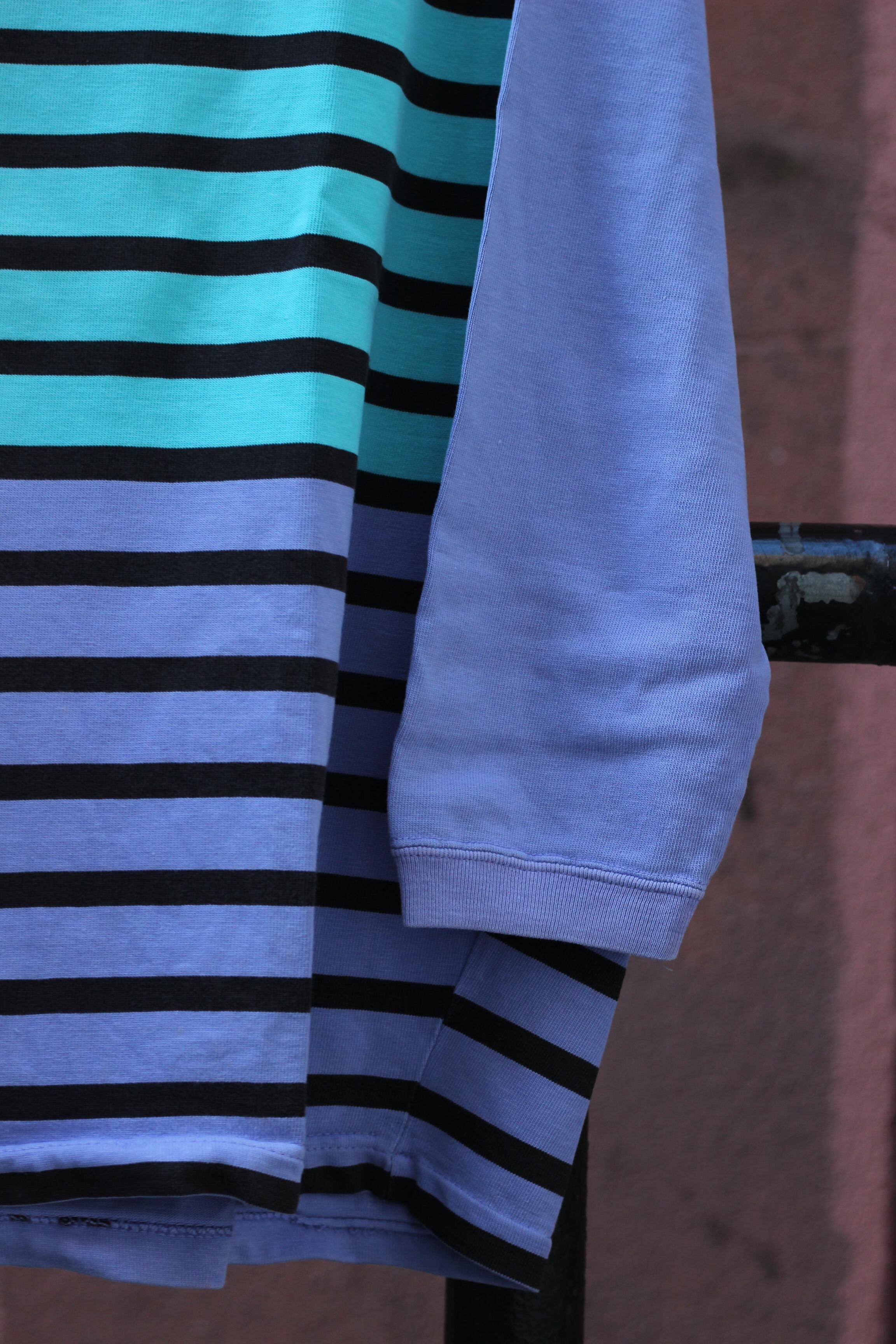 水色と紫色のバイカラーにボーダーデザインのロンtee
