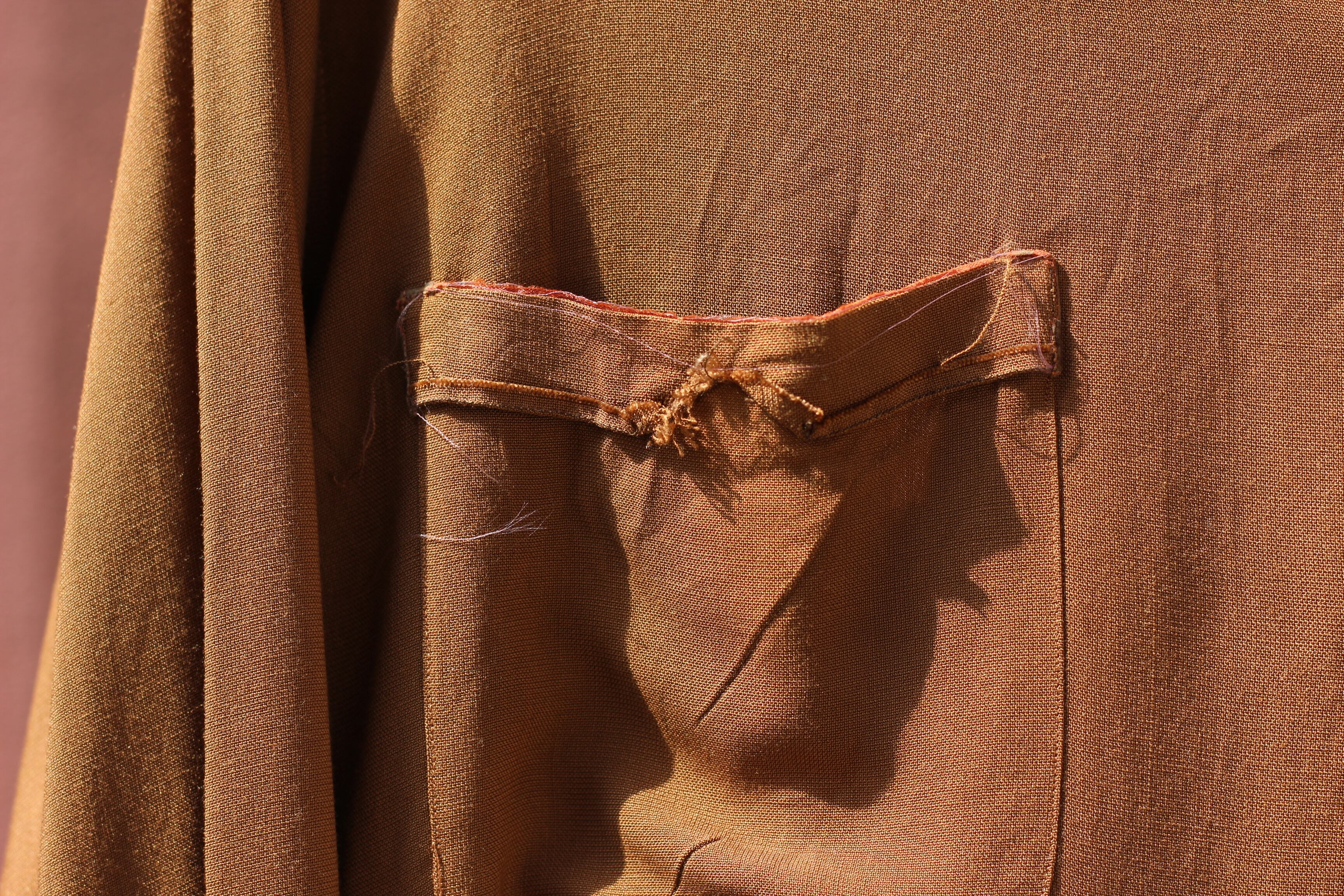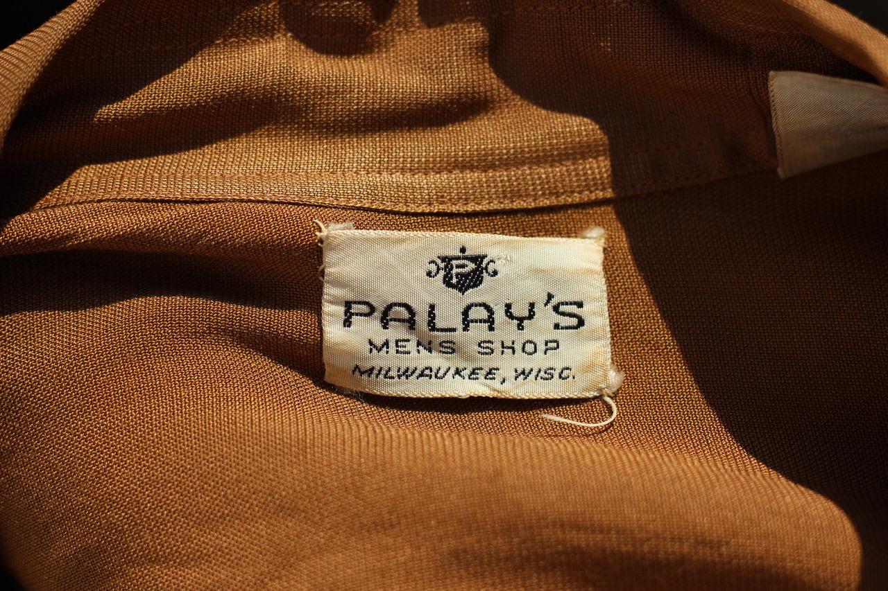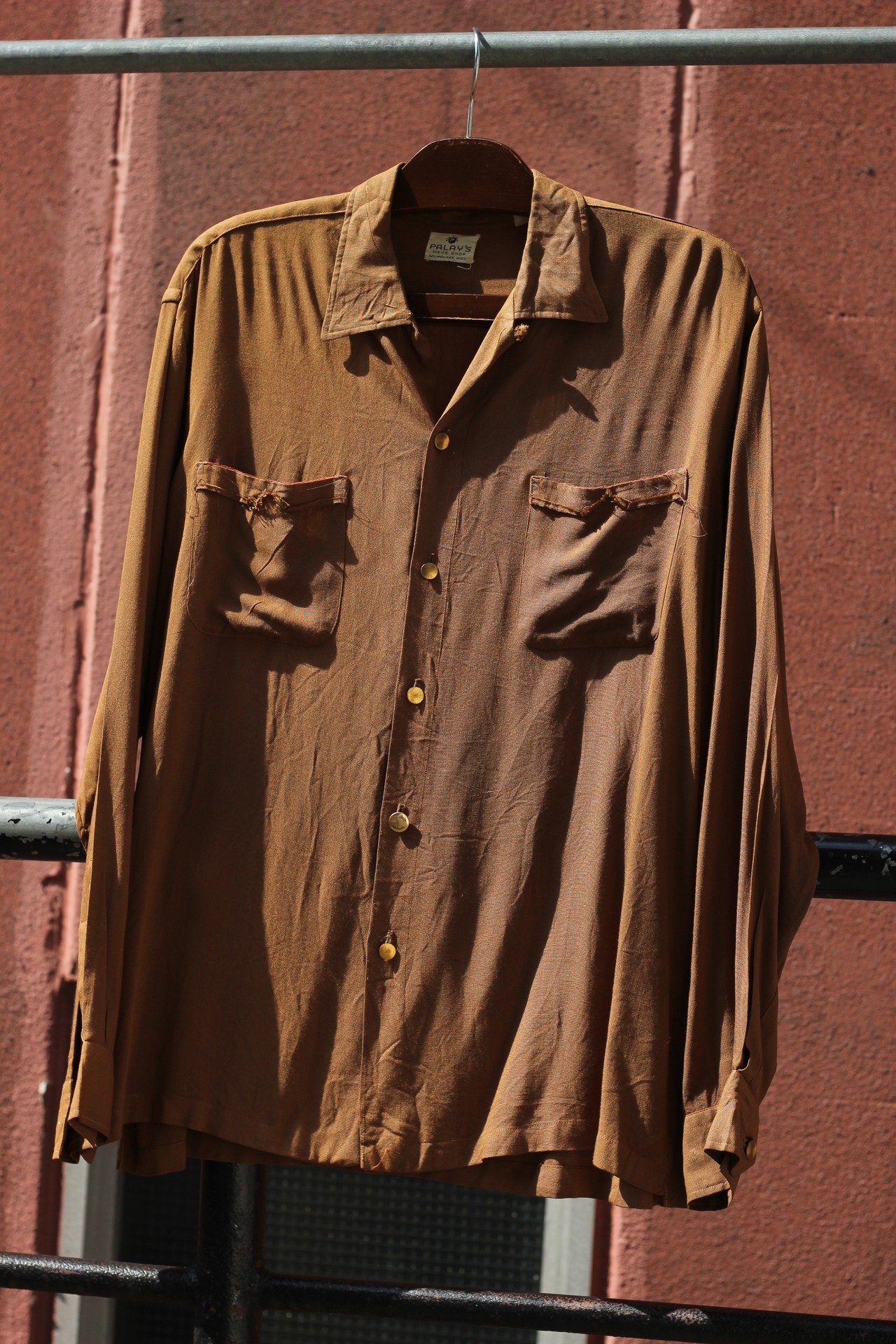 渋い茶色と開襟にボックスシルエット古着会の中でも圧倒的人気を誇るビンテージレーヨンシャツ。