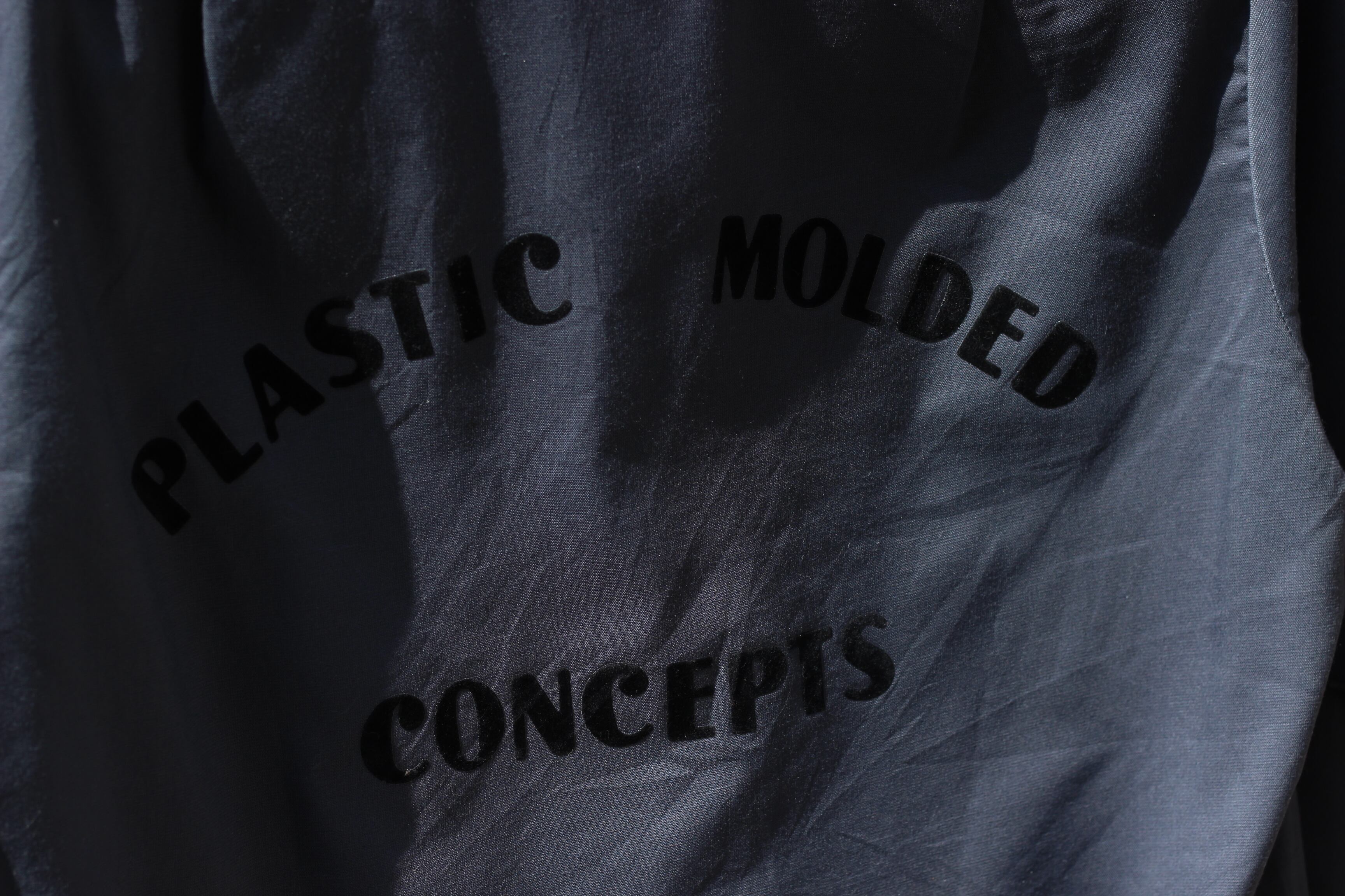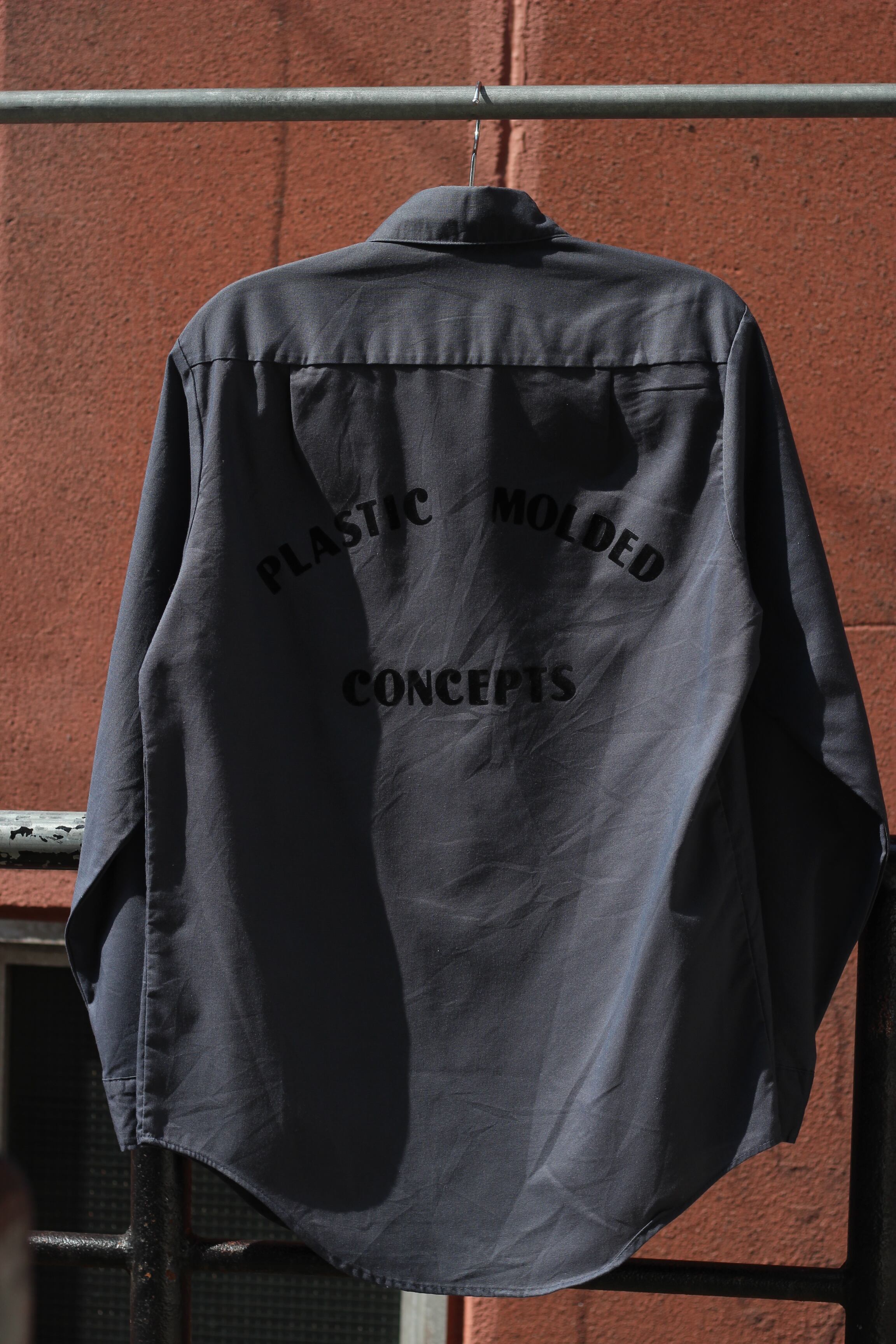 チャコールグレーのボディにくろのフェルトプリントワークシャツの中でも特段渋く、ファッショナブルな一枚。