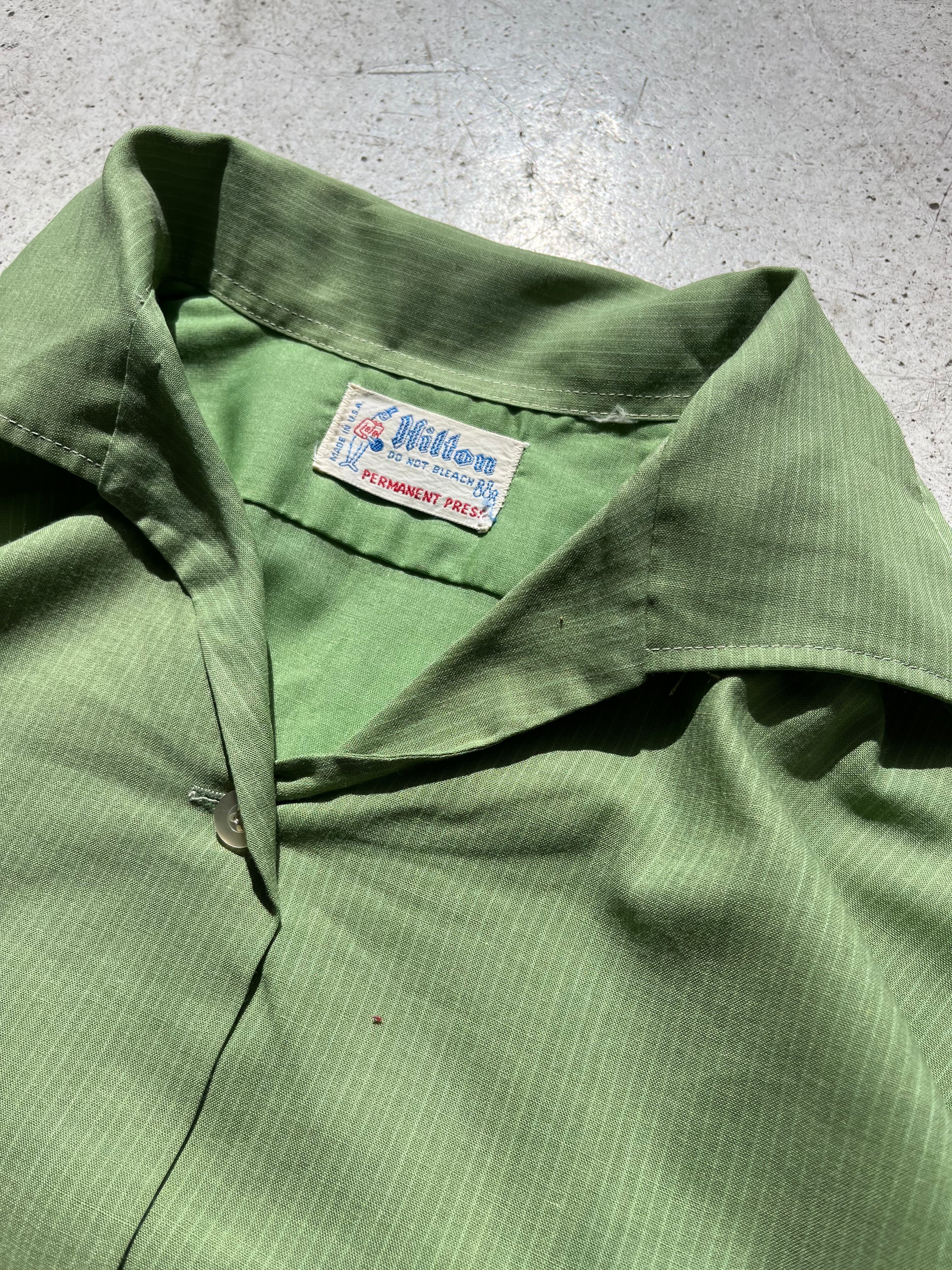 70〜80's vintage Hilton stripe polycotton s/s open collar shirt