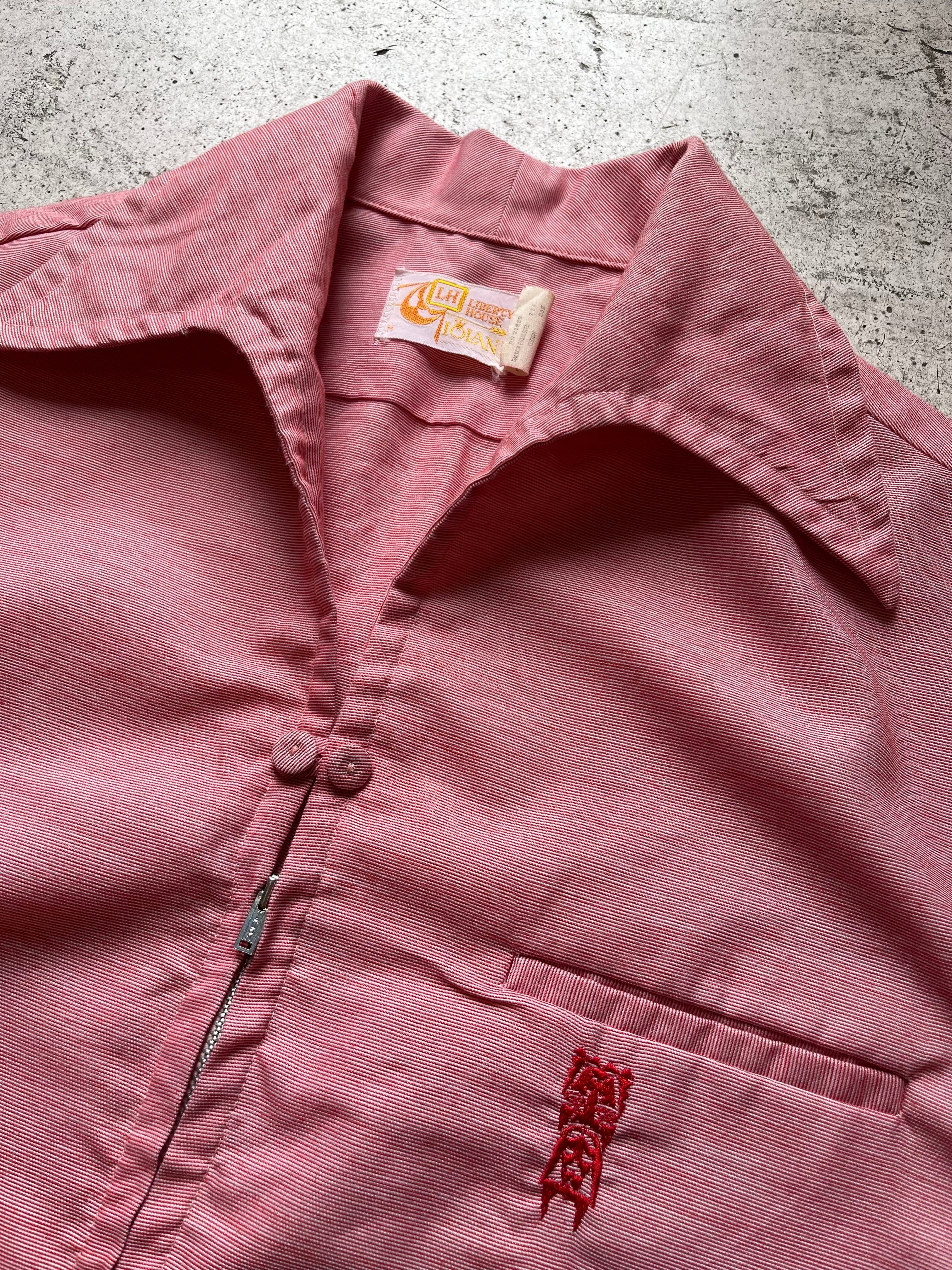 70〜80's tribal design zip up open collar shirt