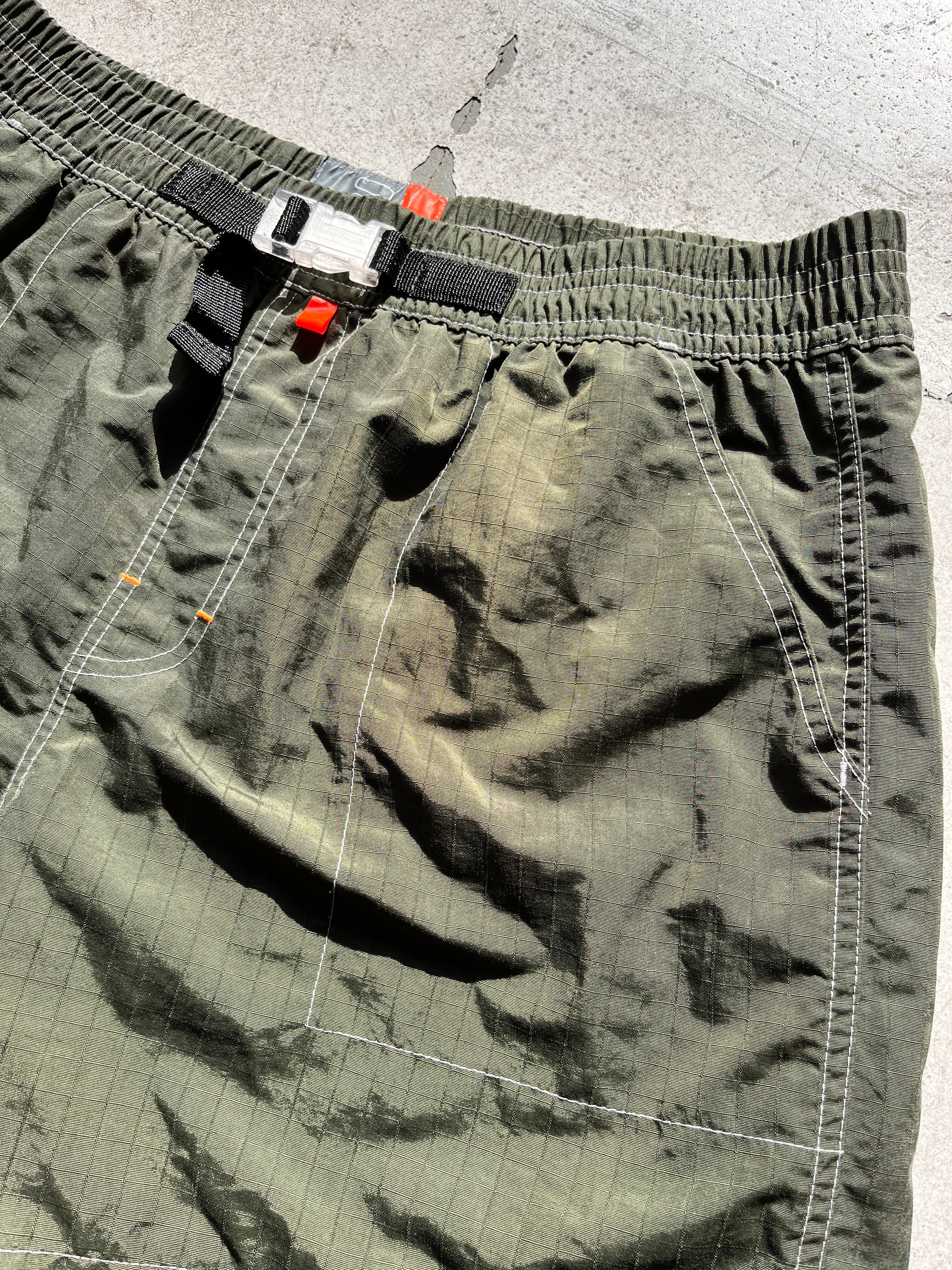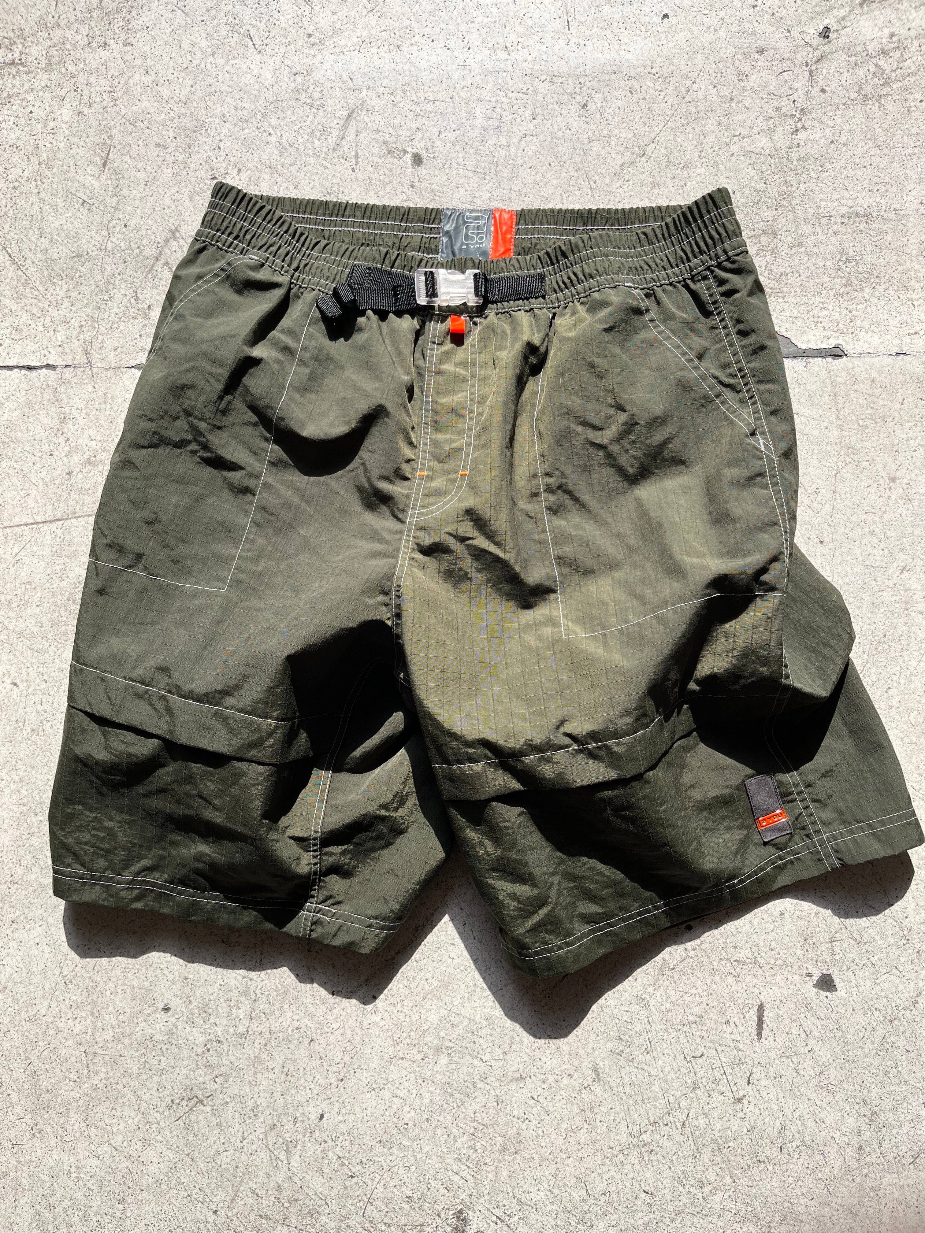 ベルクロ仕様で扱いやすいパキパキとした硬めのナイロン素材のショートパンツになります。