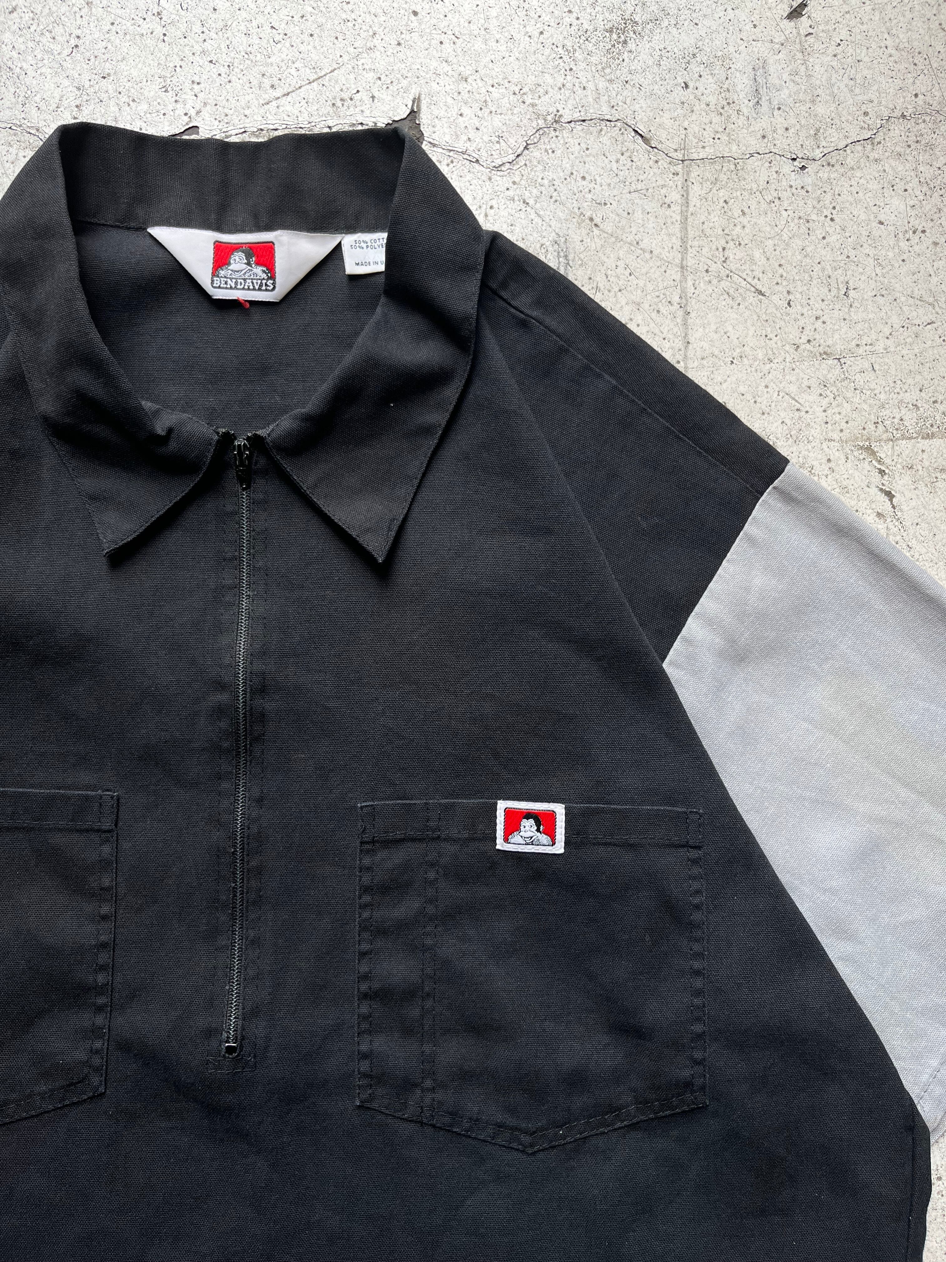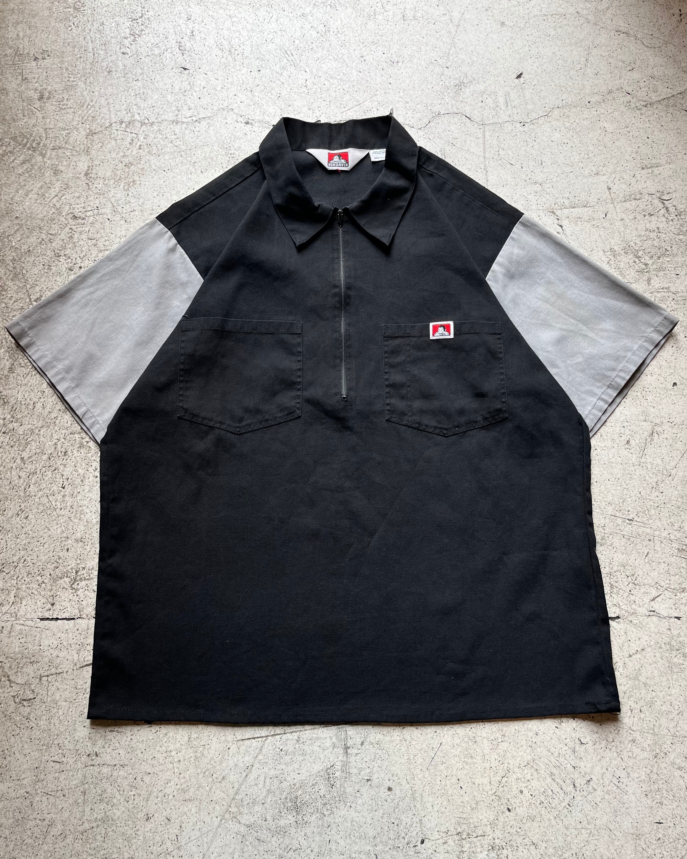 定番のハーフジップシャツ、ストライプデザインのモノなどは目にしますが、ツートーンデザインは中々見かけません。