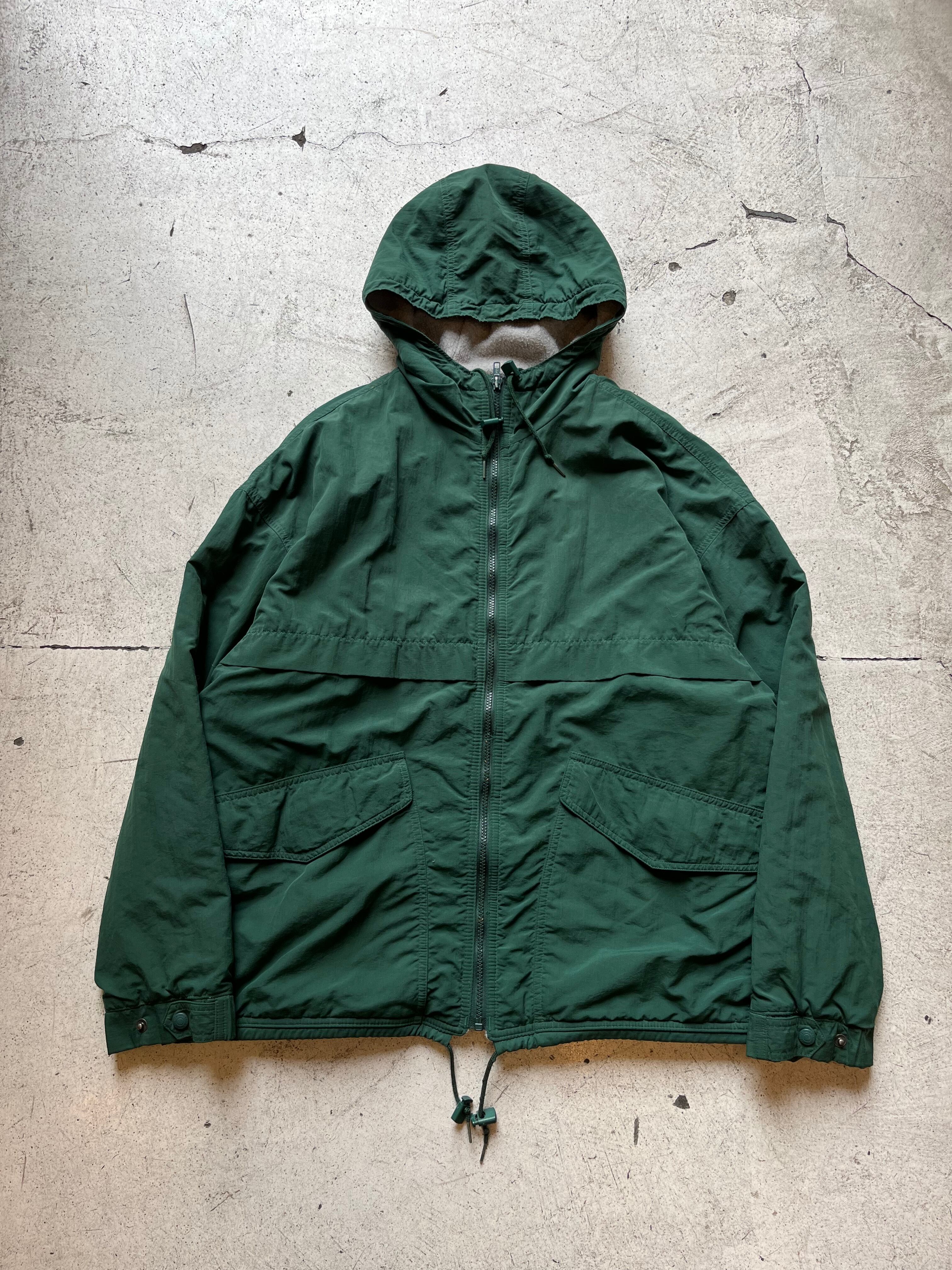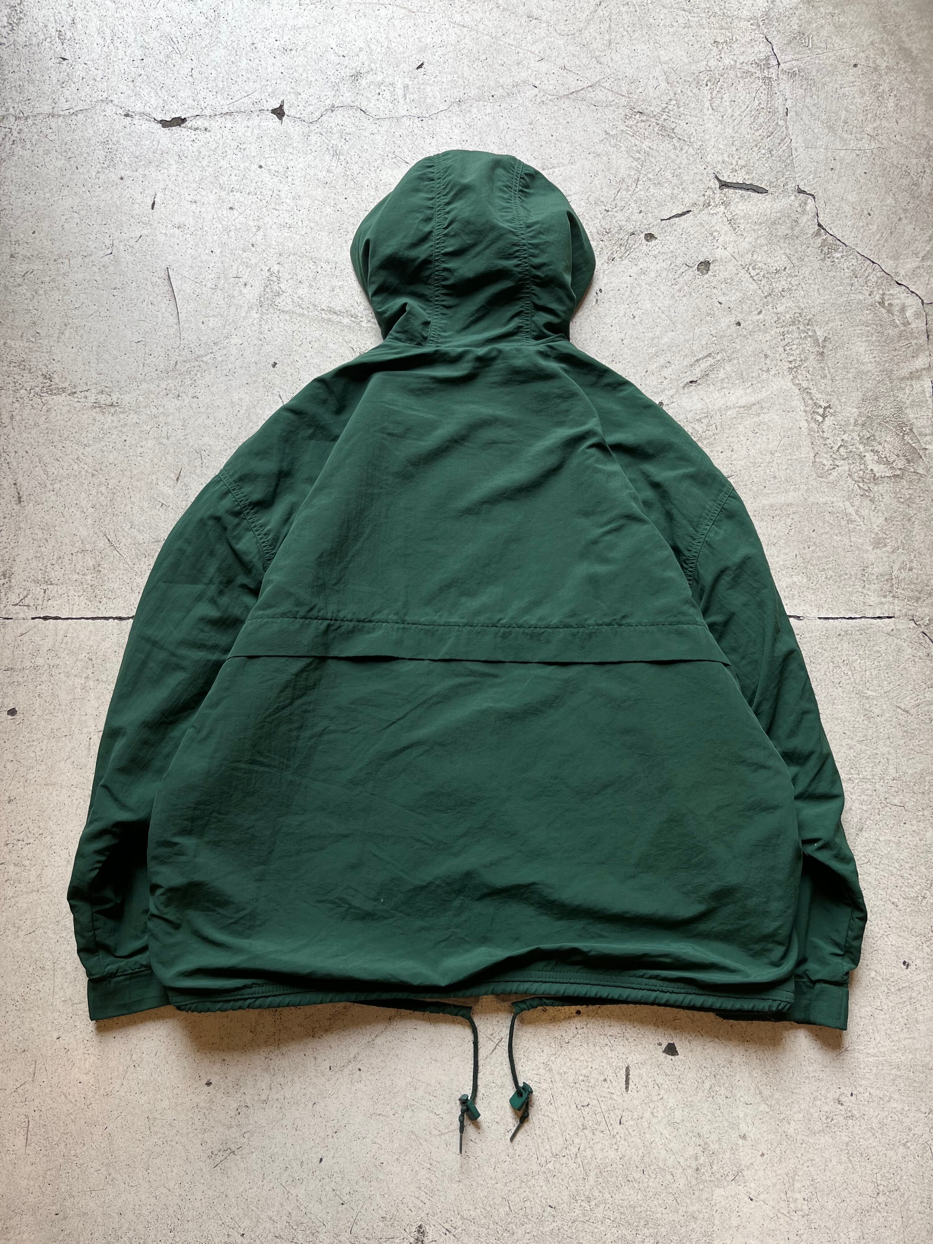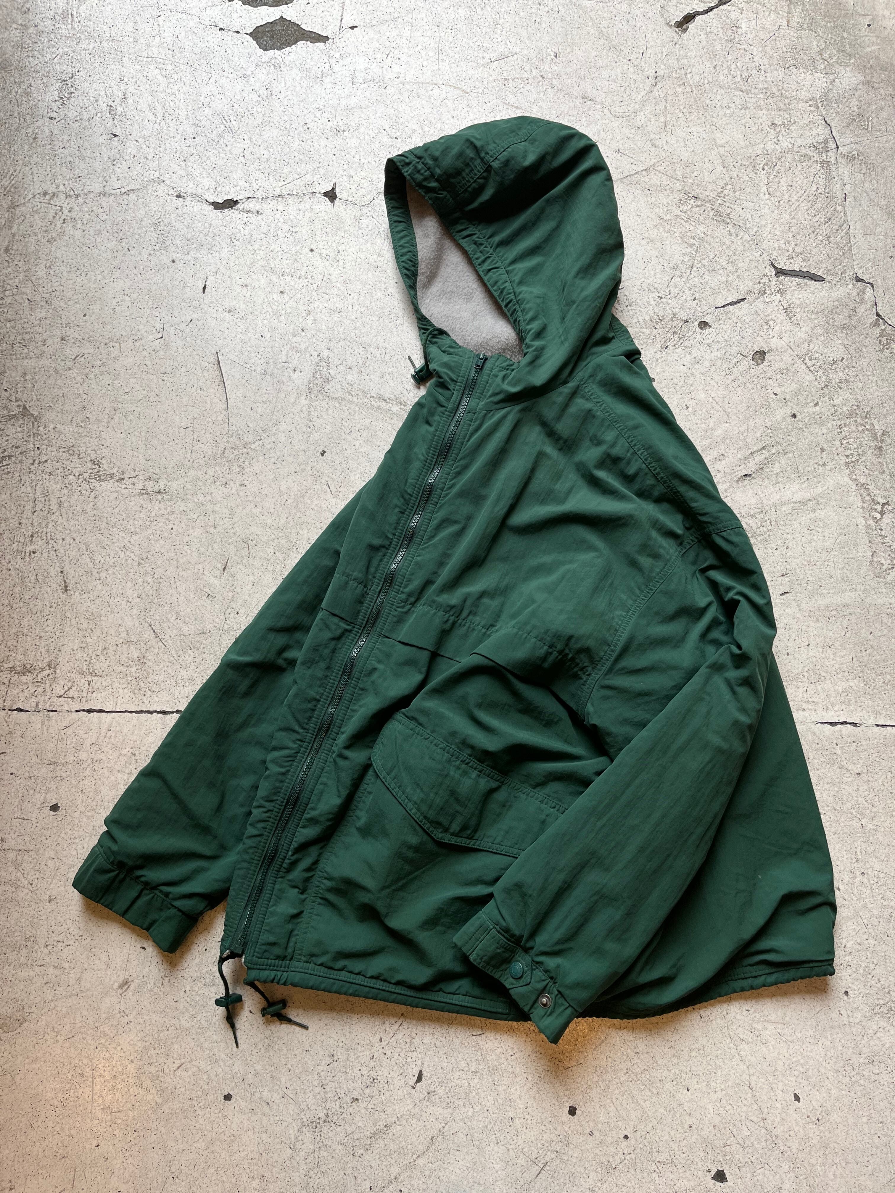 アノラックパーカーをジャケットにしたような身幅広め、短丈なシルエットナイロンシェルジャケット。