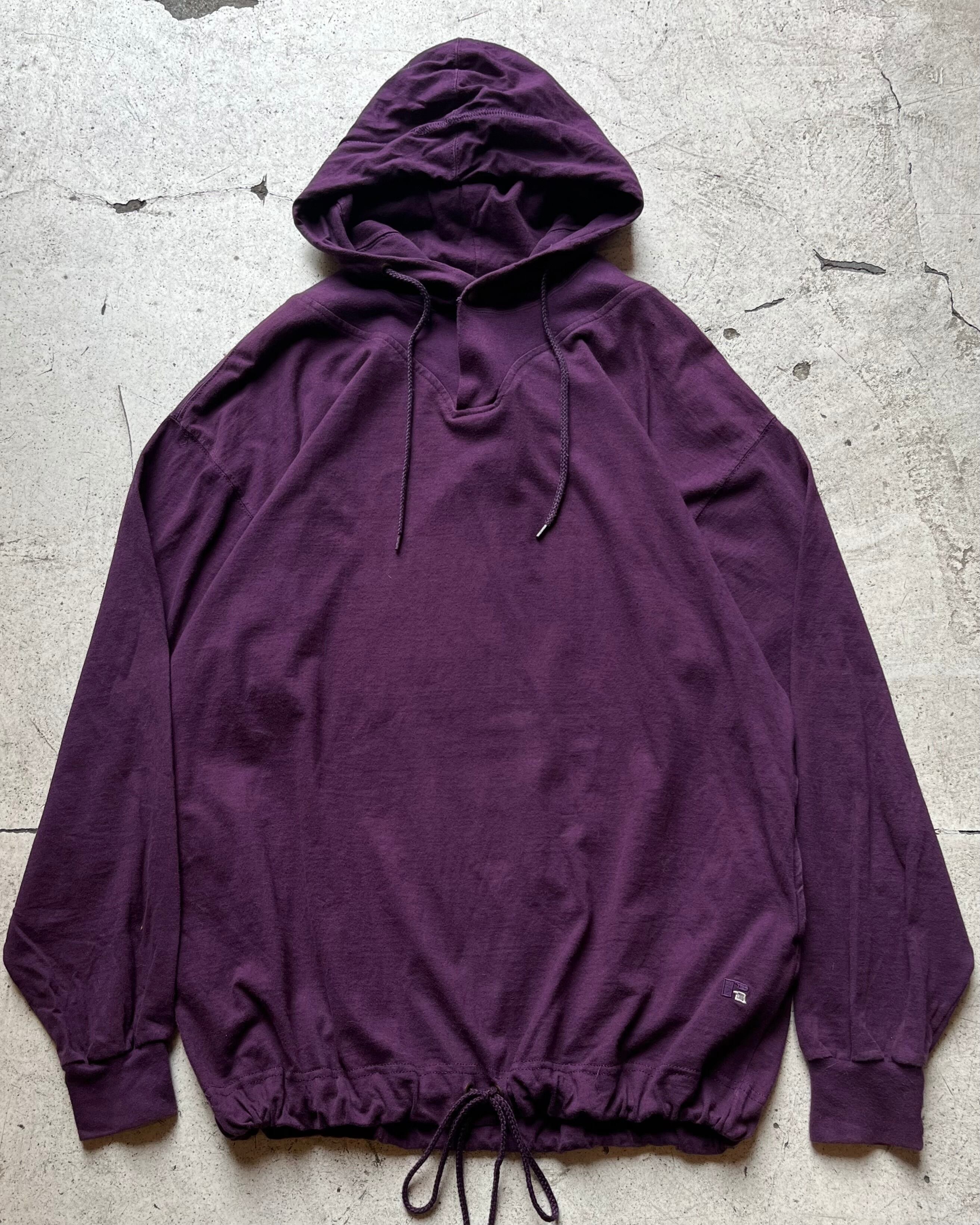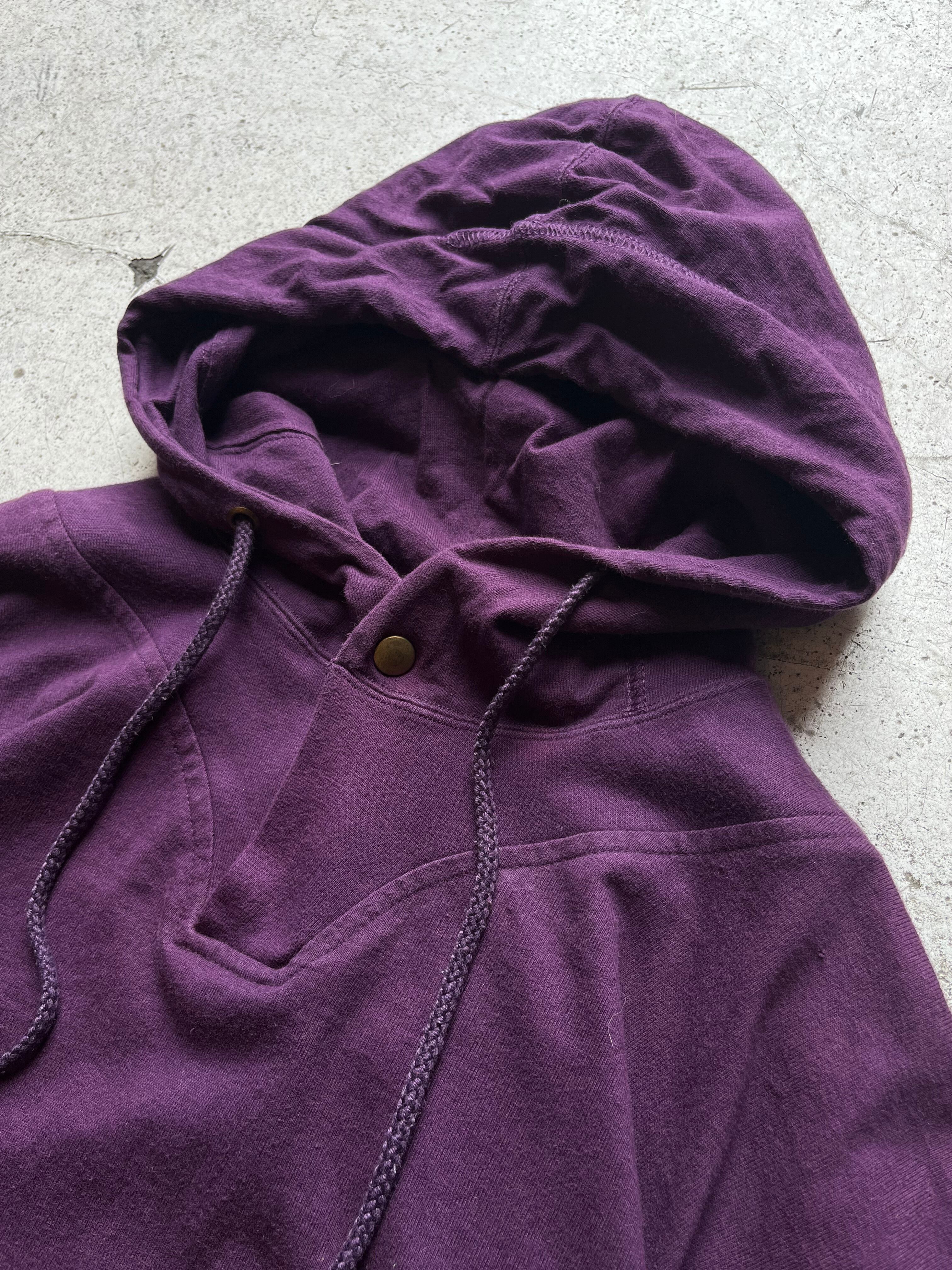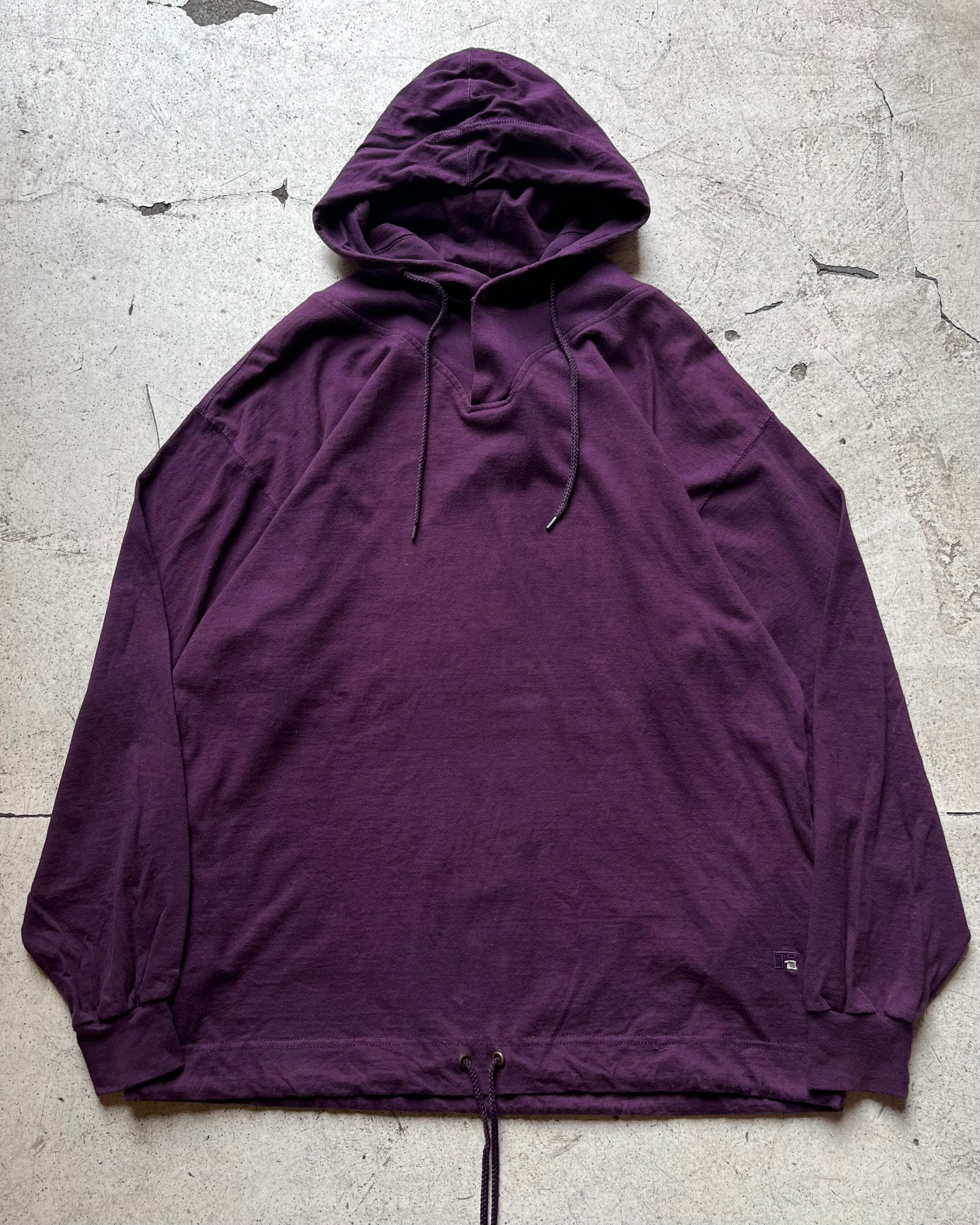 首元にはスナップボタン、裾にはドローコード、極め付けはサイドポケット付きとシンプルな単色のフーディながらも細かなディテールデザインの光る一着。