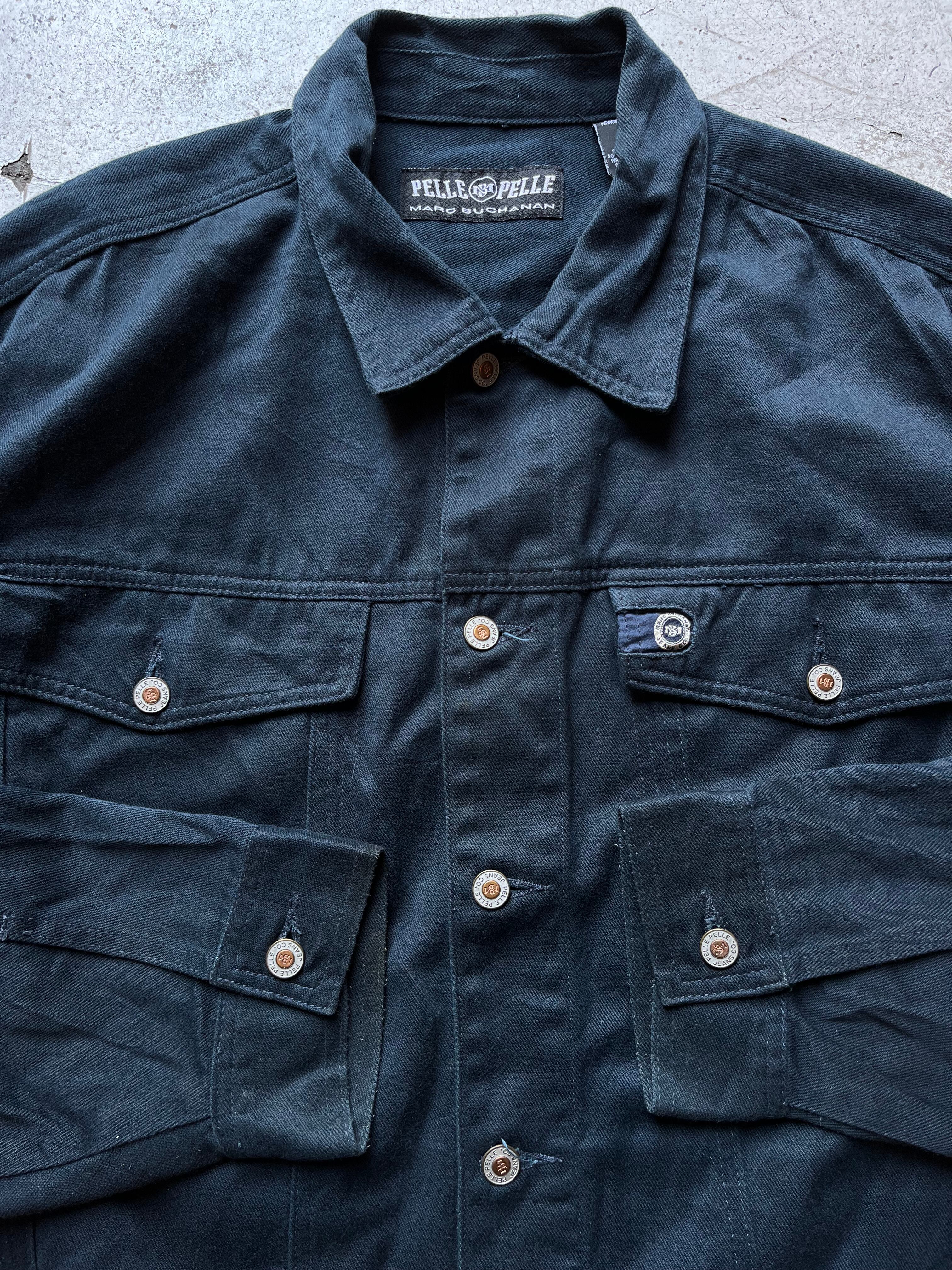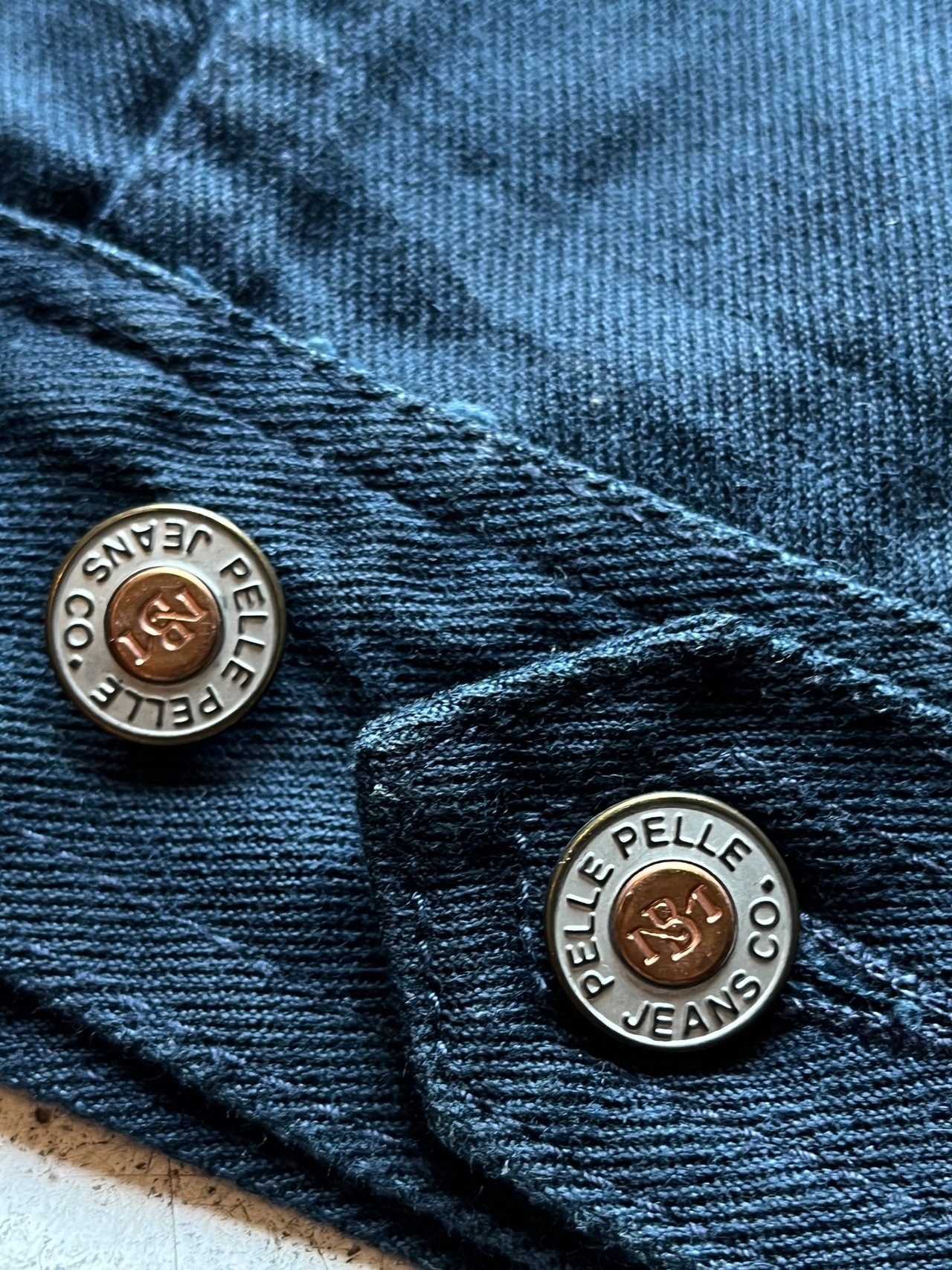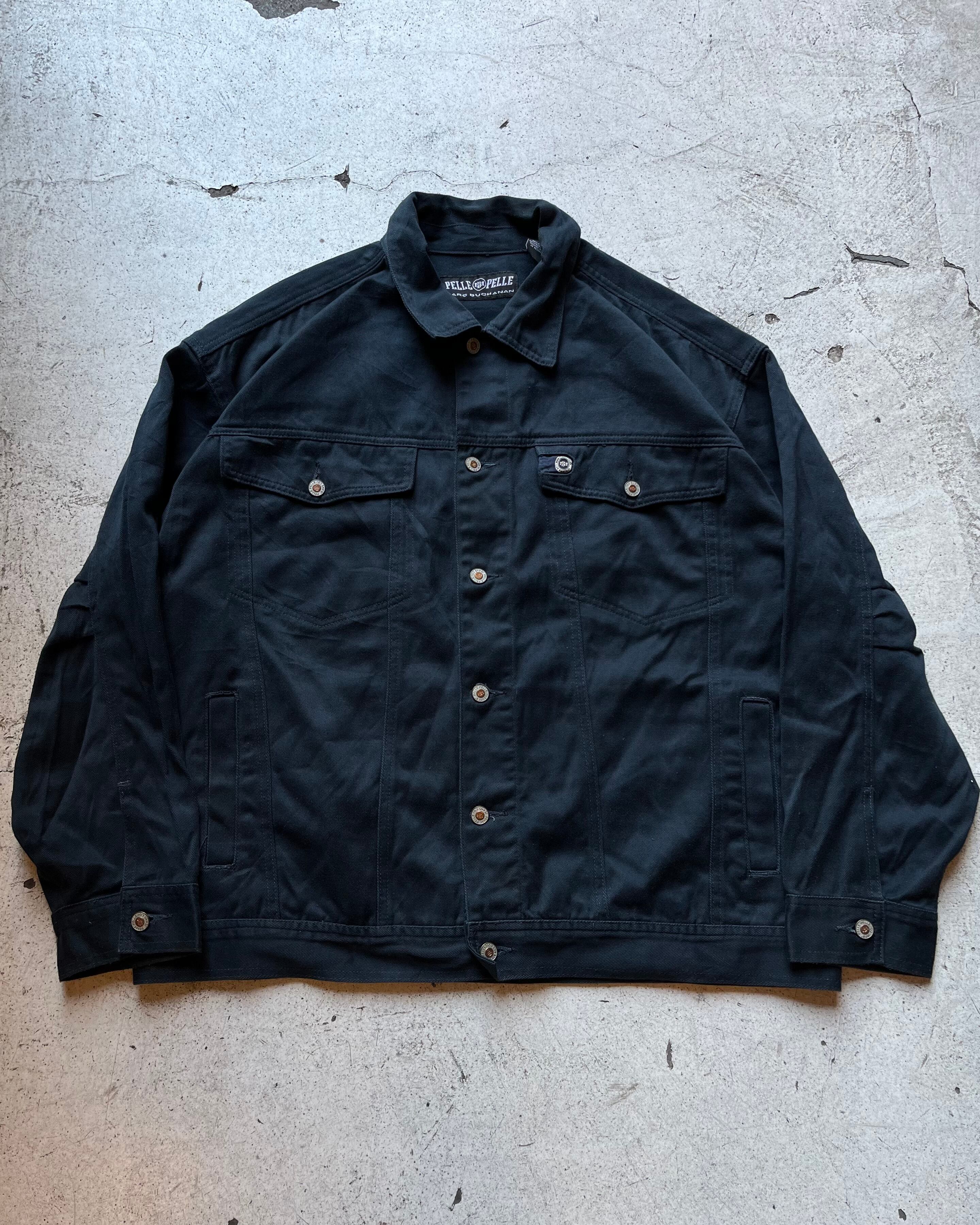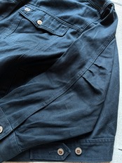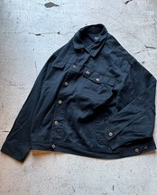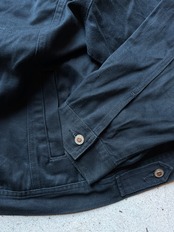 濃紺のトラッカージャケット、デニム生地よりも柔らかで着用しやすい一枚です。
