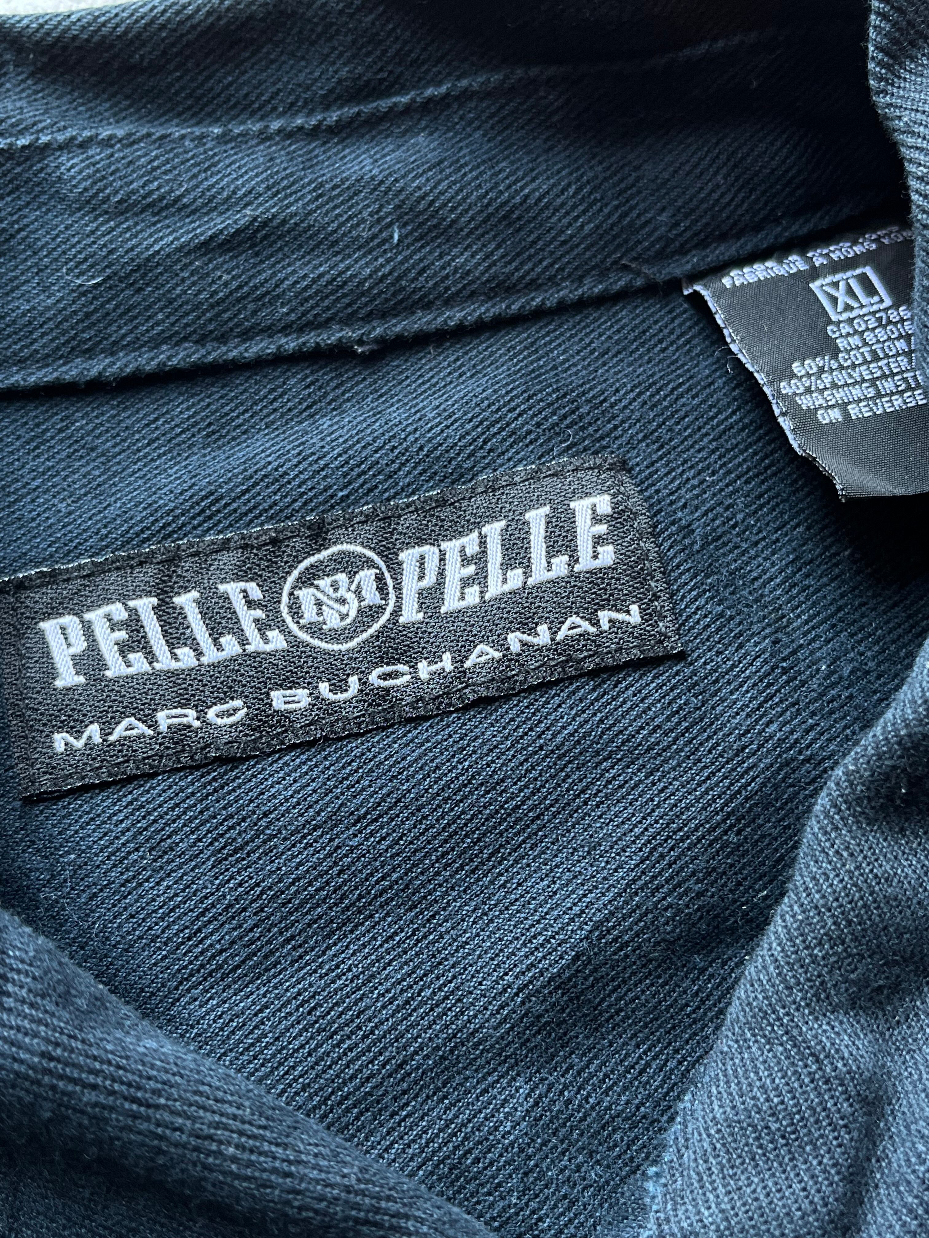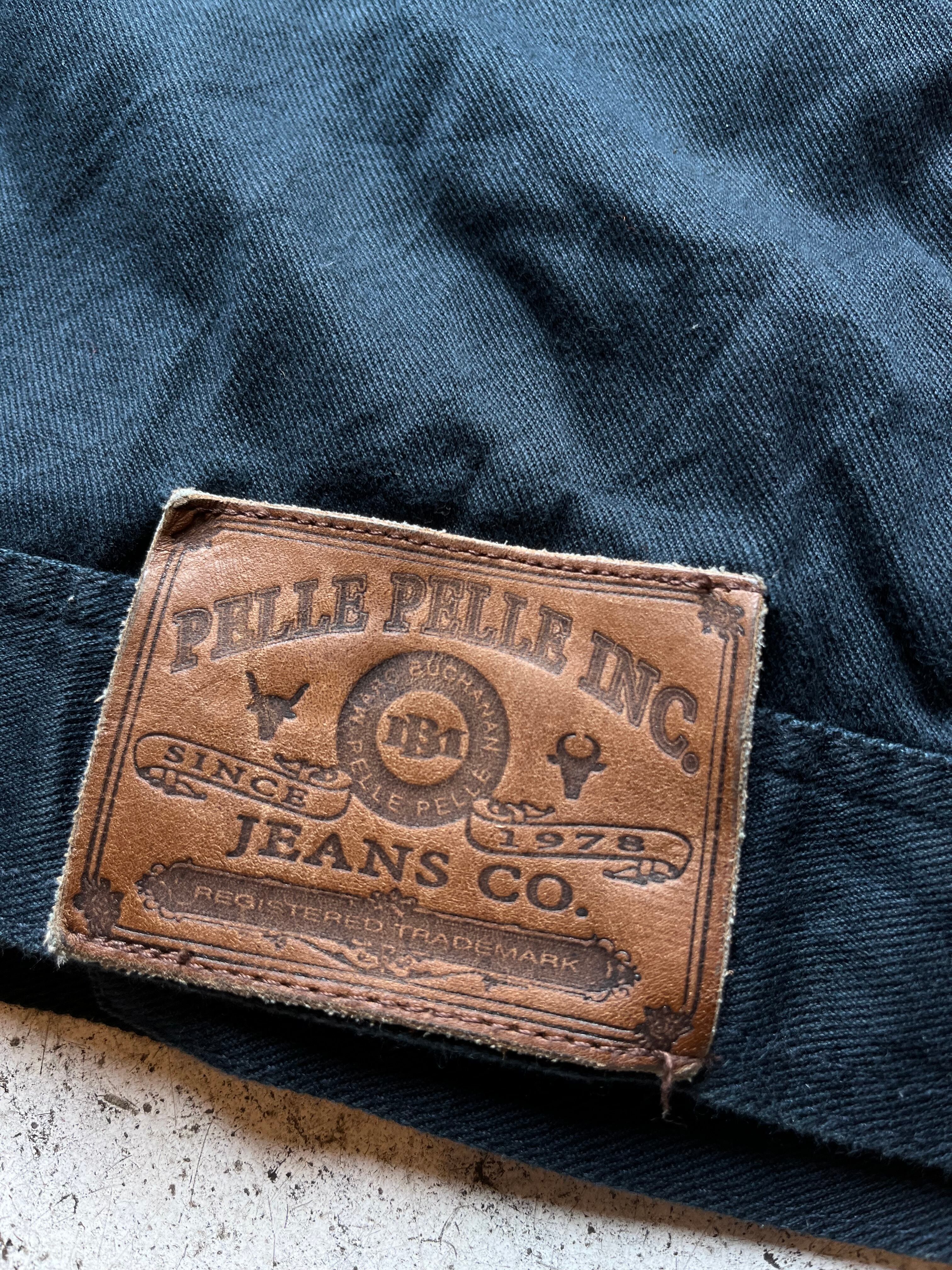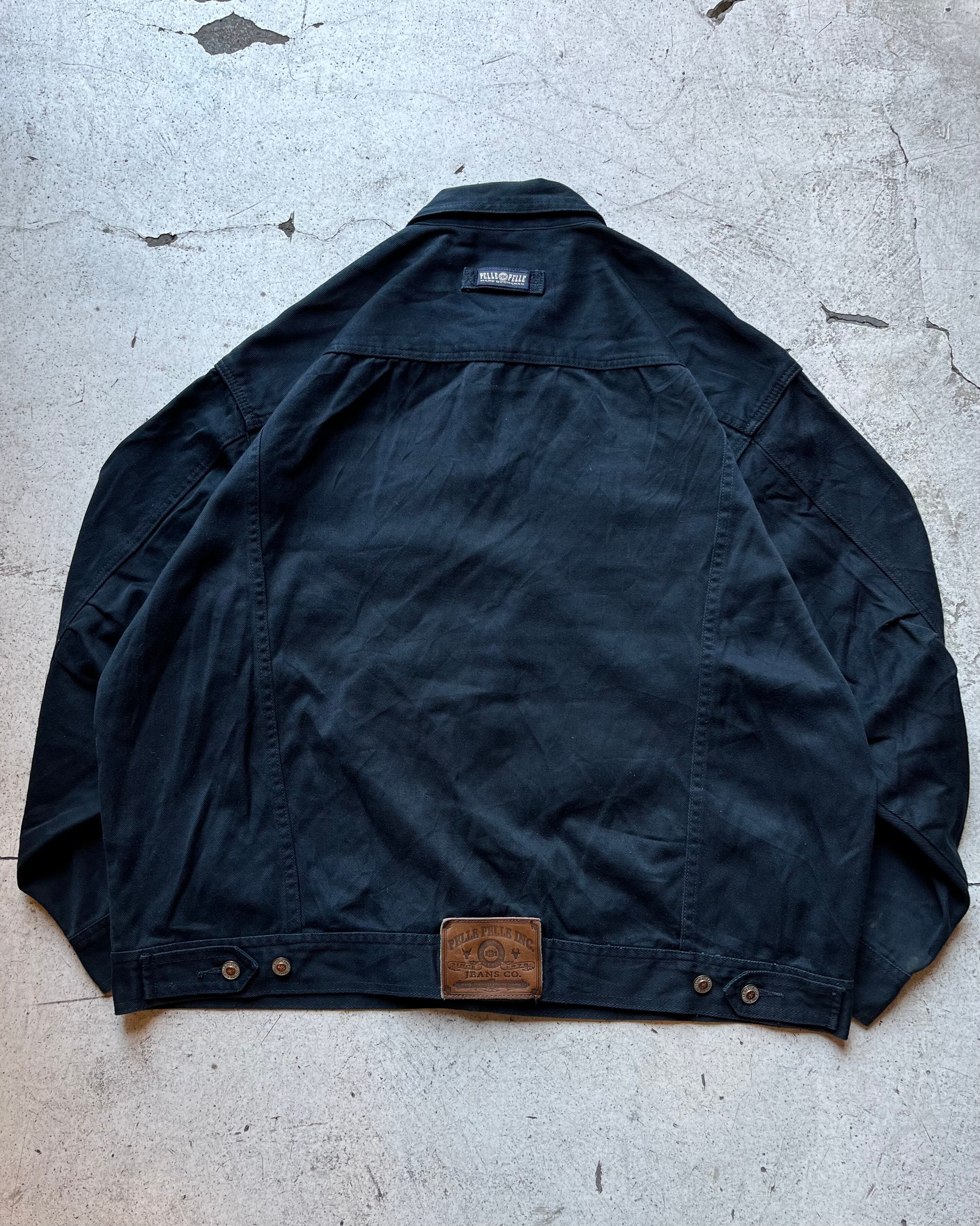 濃紺のトラッカージャケット、デニム生地よりも柔らかで着用しやすい一枚です。