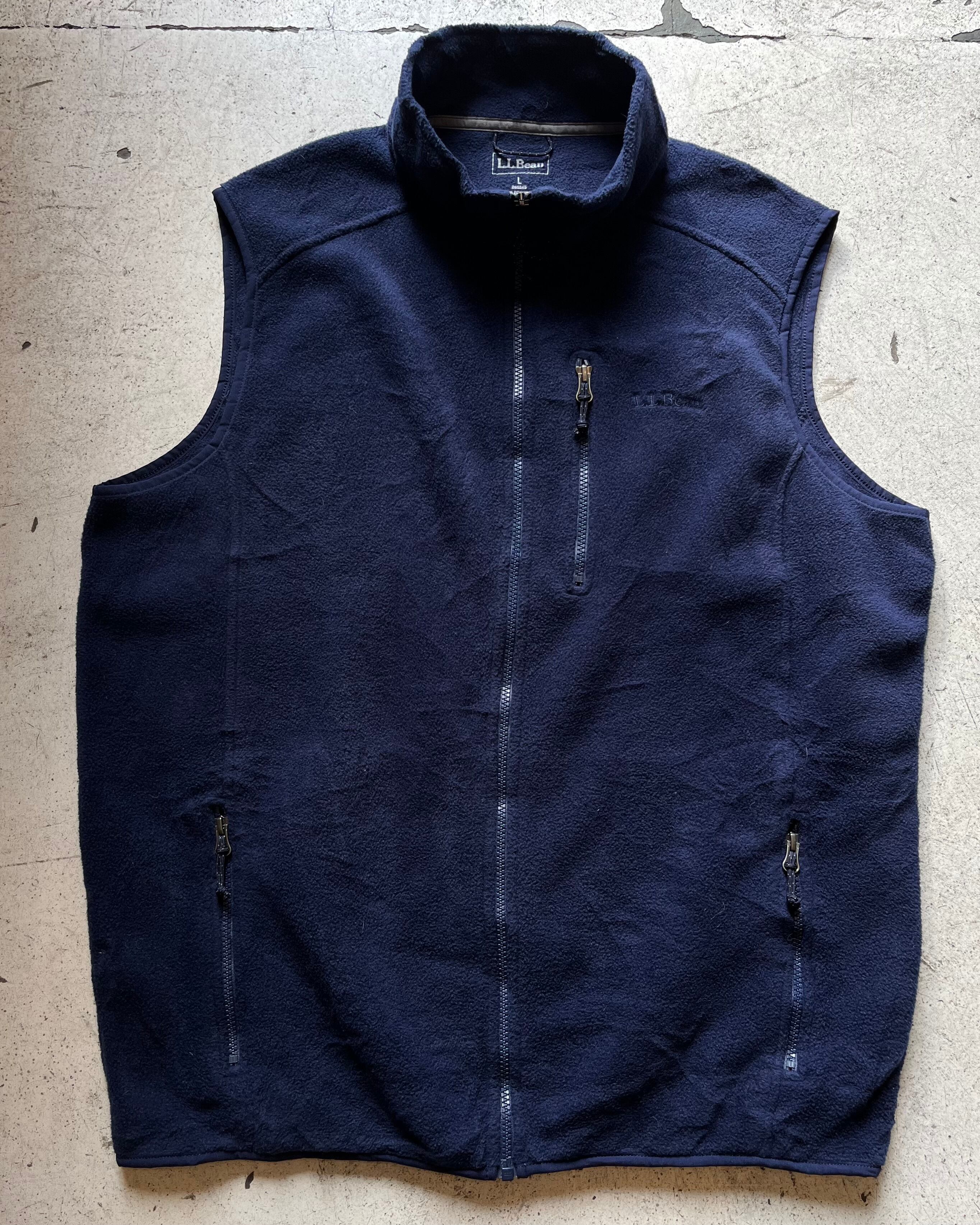 汎用性高いネイビーのフリースベスト。